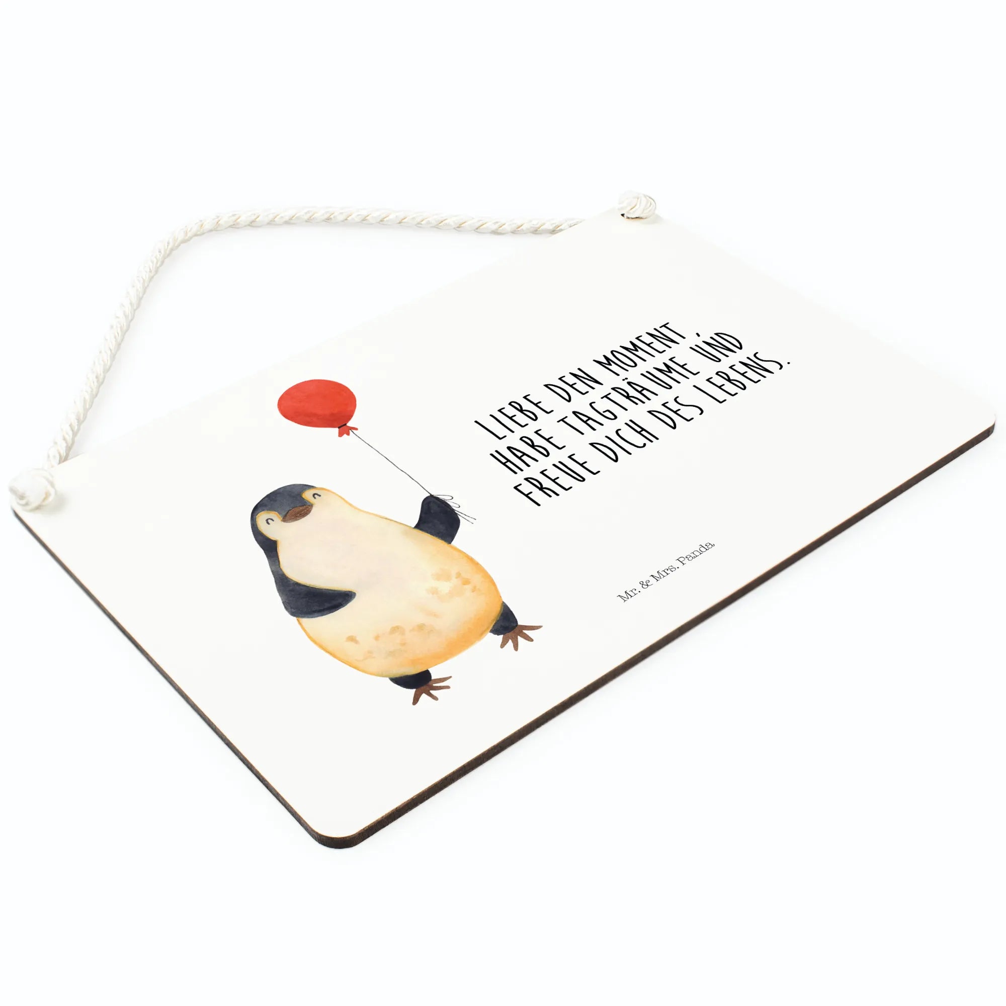 Das Deko Schild "Pinguin mit Luftballon" aus der Pinguin-Kollektion von Mr. & Mrs. Panda ist das perfekte Geschenk für alle, die sich ein Stück Lebensfreude ins Zuhause holen möchten. Mit einem süßen Pinguin, der fröhlich einen bunten Luftballon in der Hand hält, zaubert dieses Schild jedem ein Lächeln ins Gesicht.