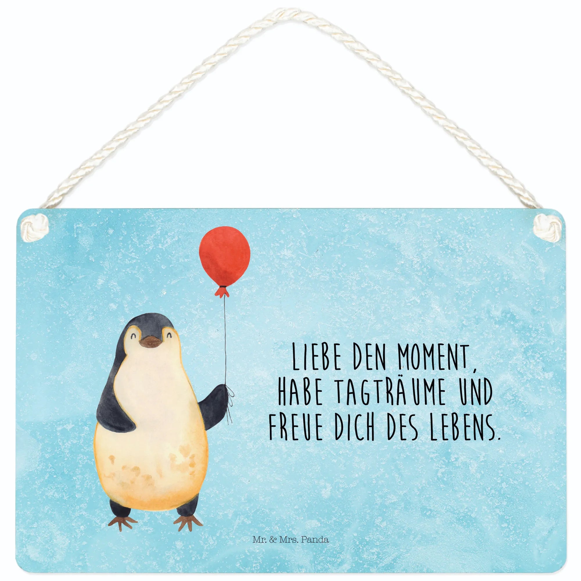 Deko Schild Pinguin Luftballon - mit Spruch - Eisblau