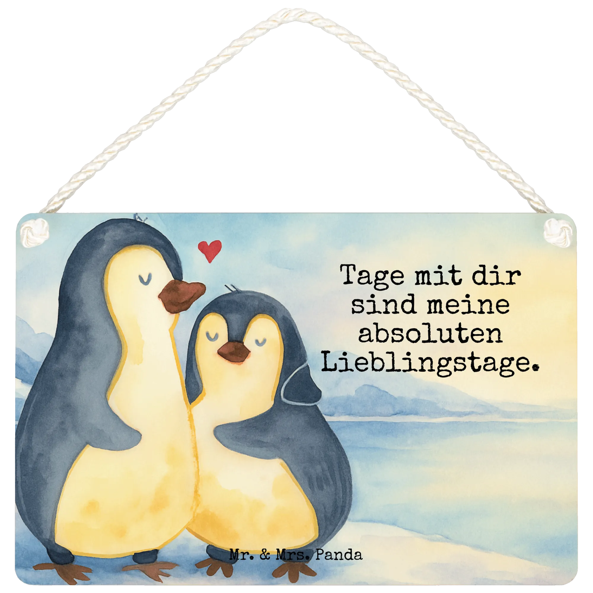 Deko Schild Pinguin umarmen Design - DIN A5 - mit Spruch
