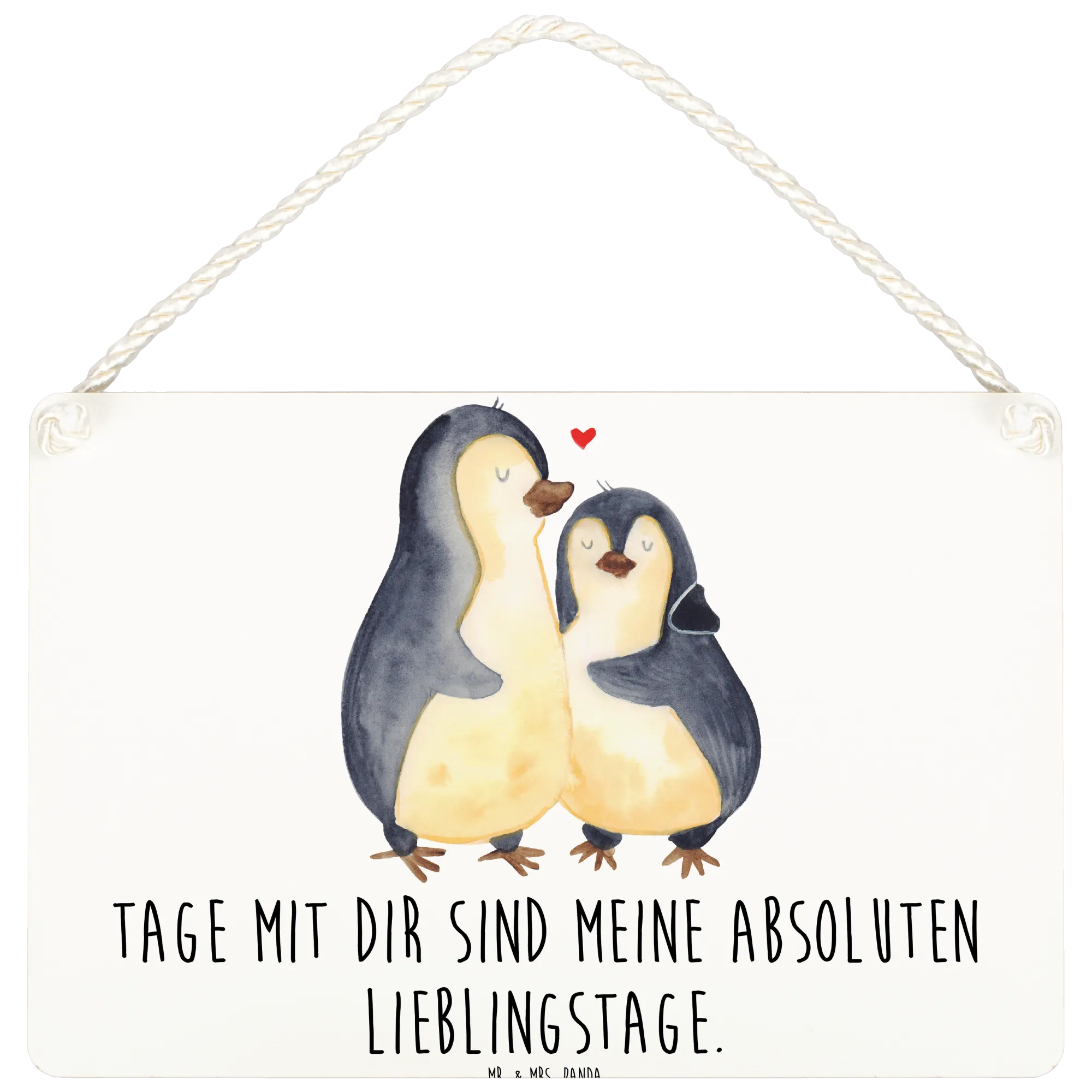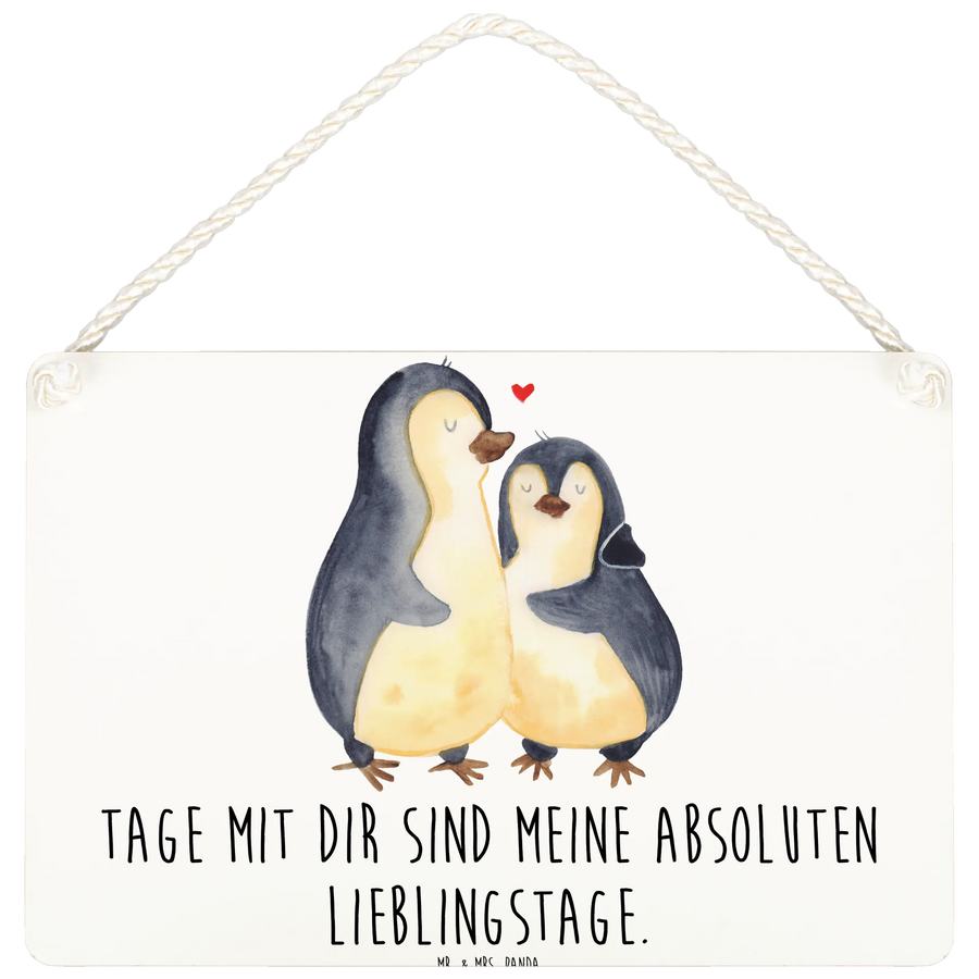 Das Schild zeigt einen Pinguin, der liebevoll seine Flosse um einen anderen Pinguin legt und symbolisiert damit Zuneigung, Verbundenheit und die besonderen Momente, die man mit seinen Liebsten teilt. Die Worte "Tage mit dir sind meine absoluten Lieblingstage" fangen die Essenz von Beziehung und Nähe perfekt ein.