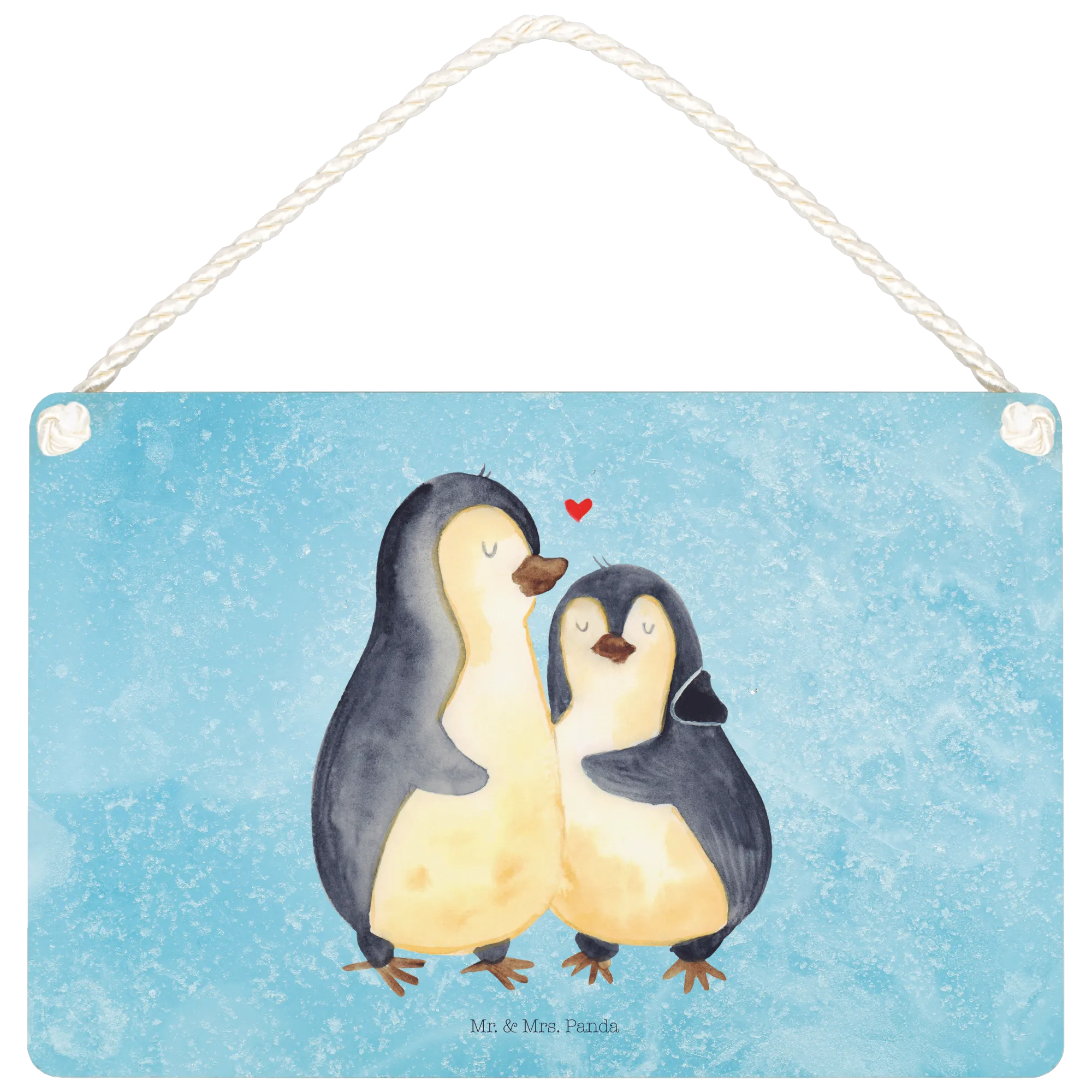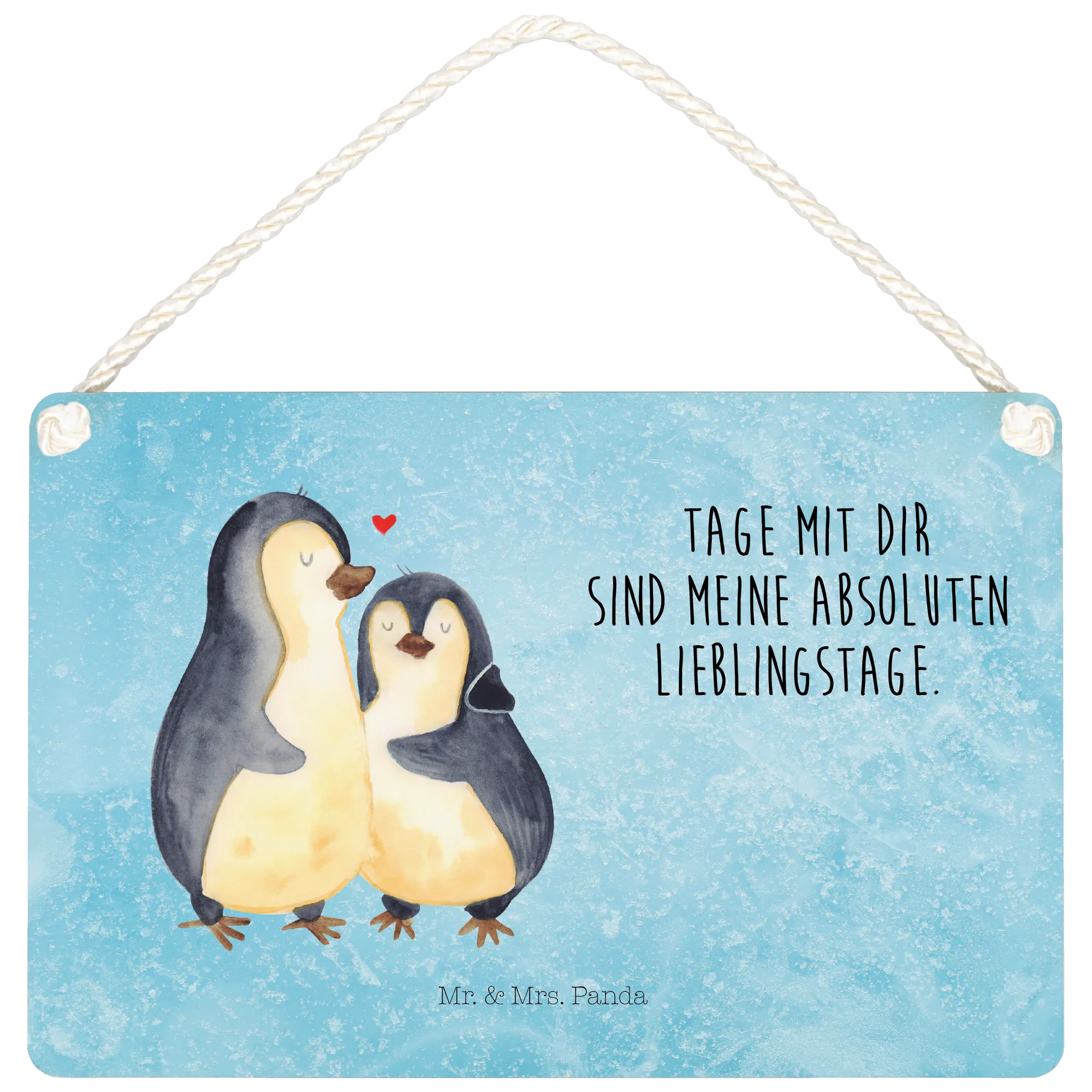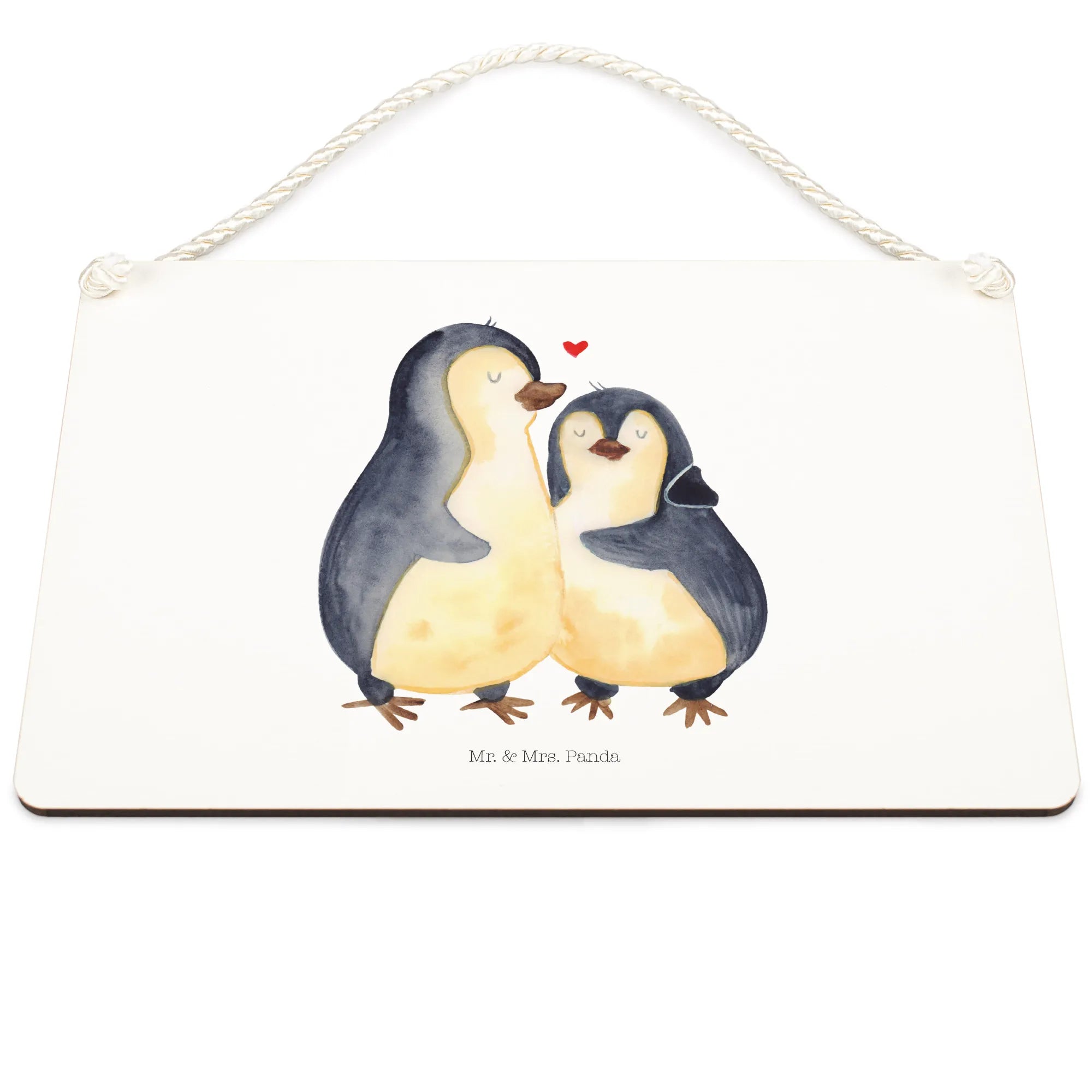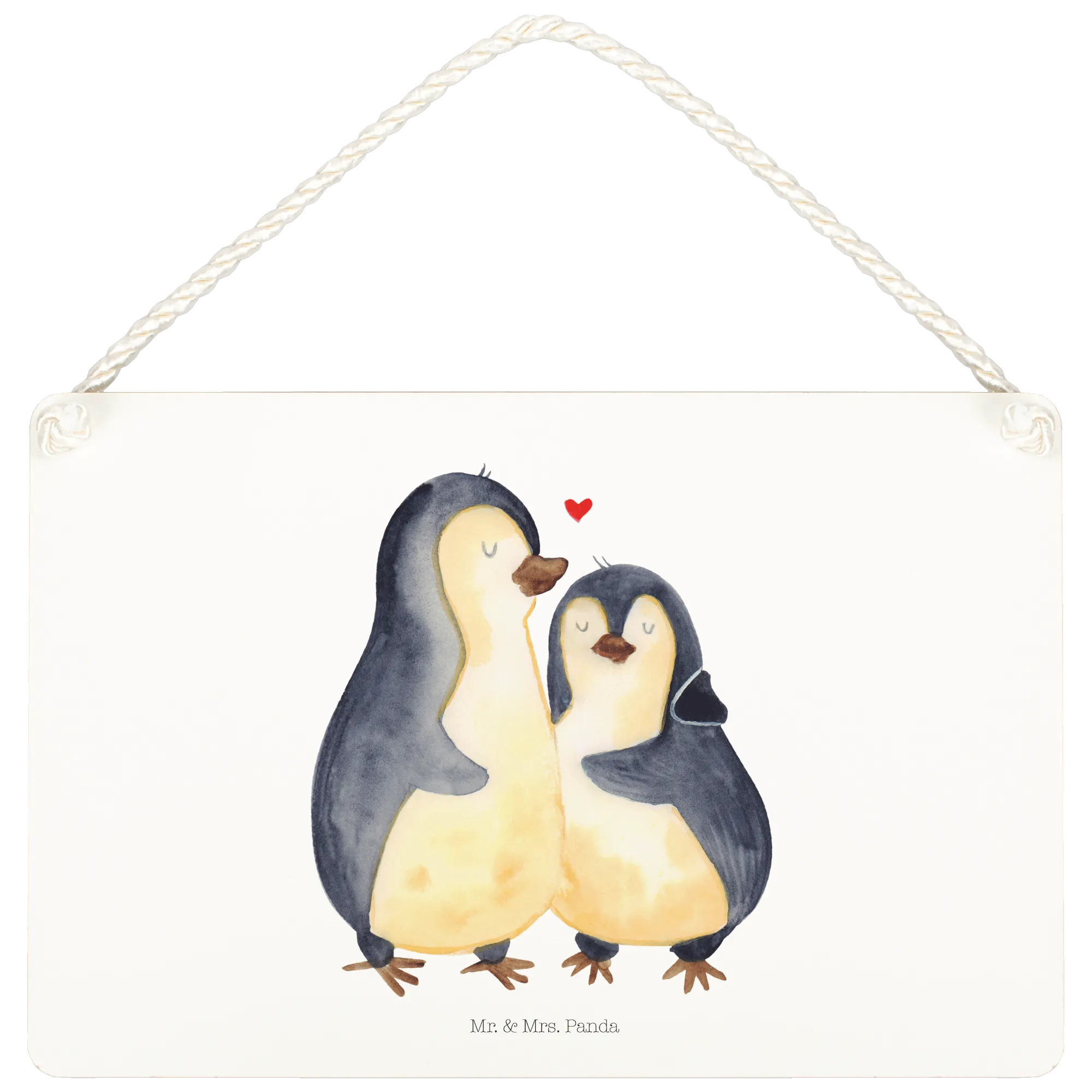 Entdecke unser zauberhaftes Deko Schild mit dem niedlichen Motiv des umarmenden Pinguins aus der Pinguin-Kollektion von Mr. & Mrs. Panda.