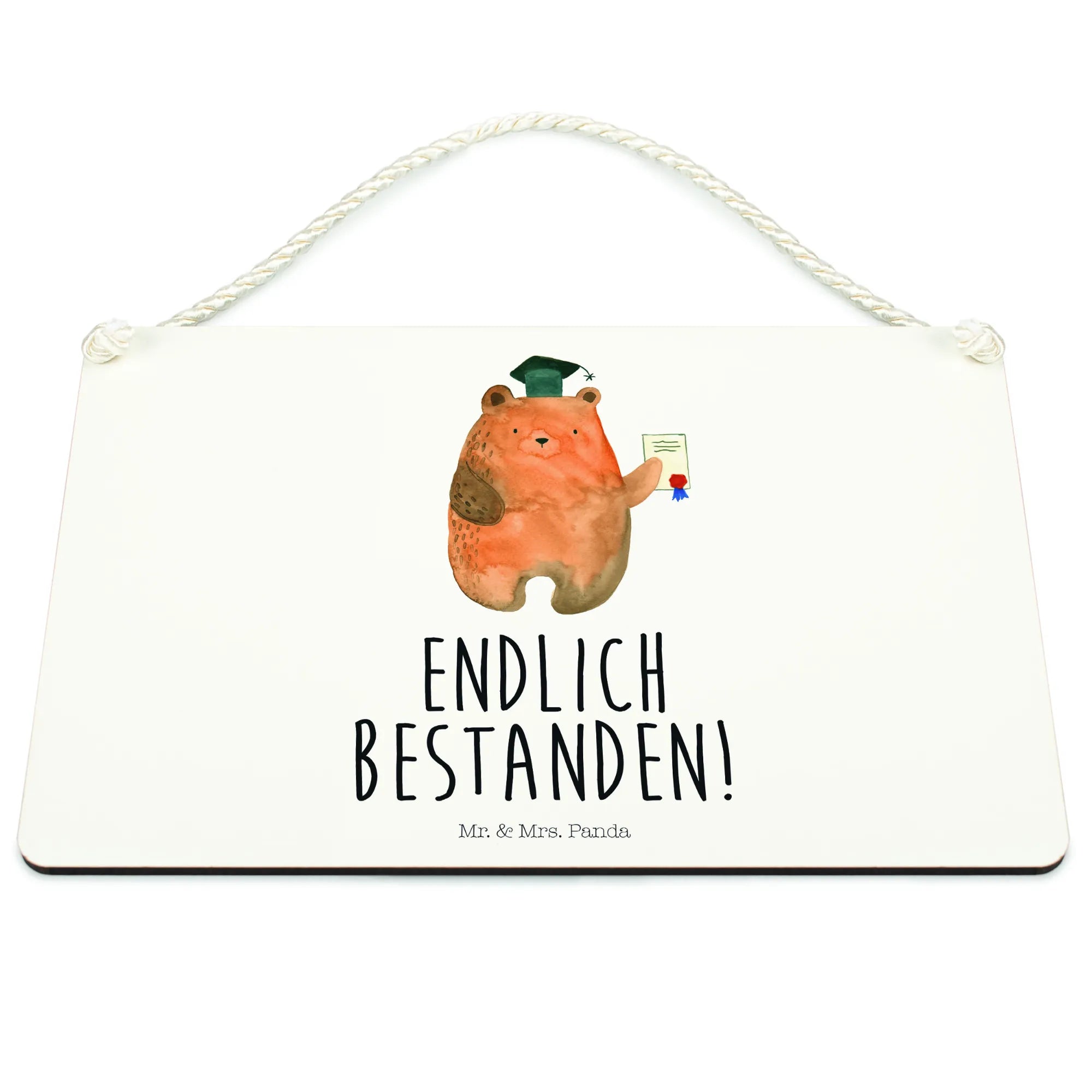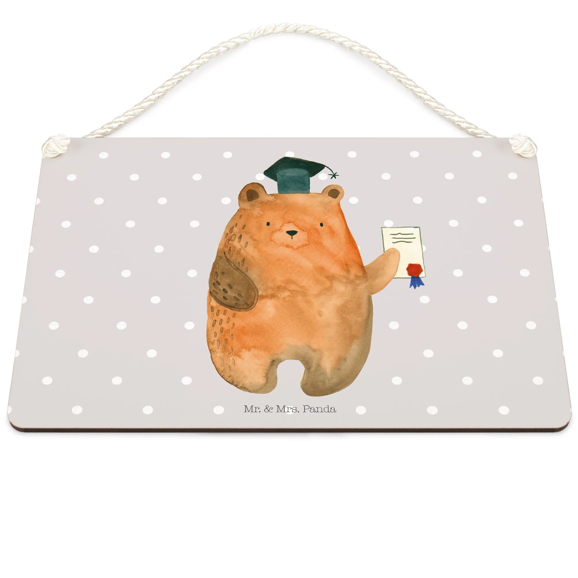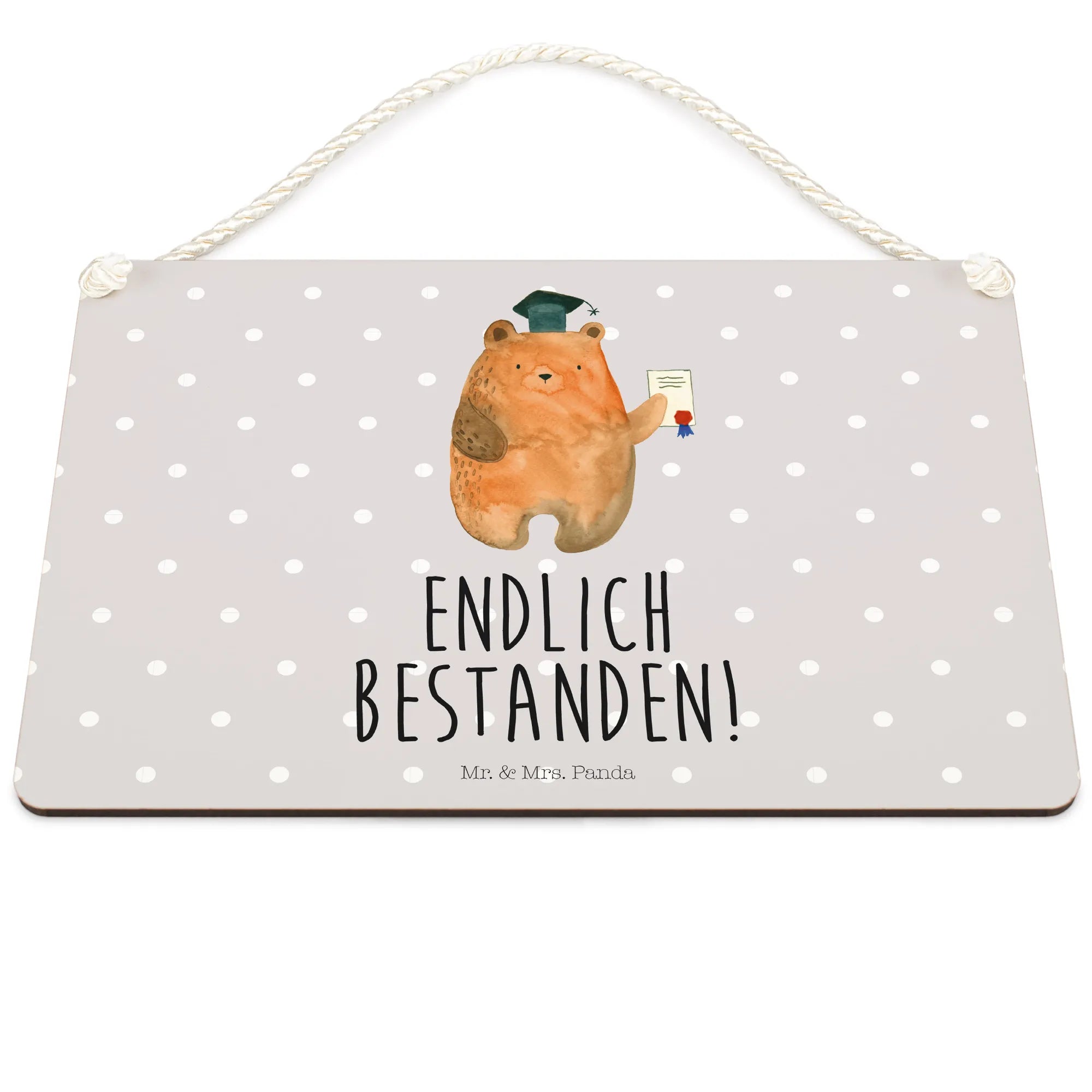 Deko Schild, Prüfungsbär von Mr. & Mrs. Panda wird garantiert der Hit bei jeder Feier! Gedruckt in frischem Pastellgrau passt es in jedes Zuhause und verleiht deinen Wänden einen Hauch von Niedlichkeit und Freude.