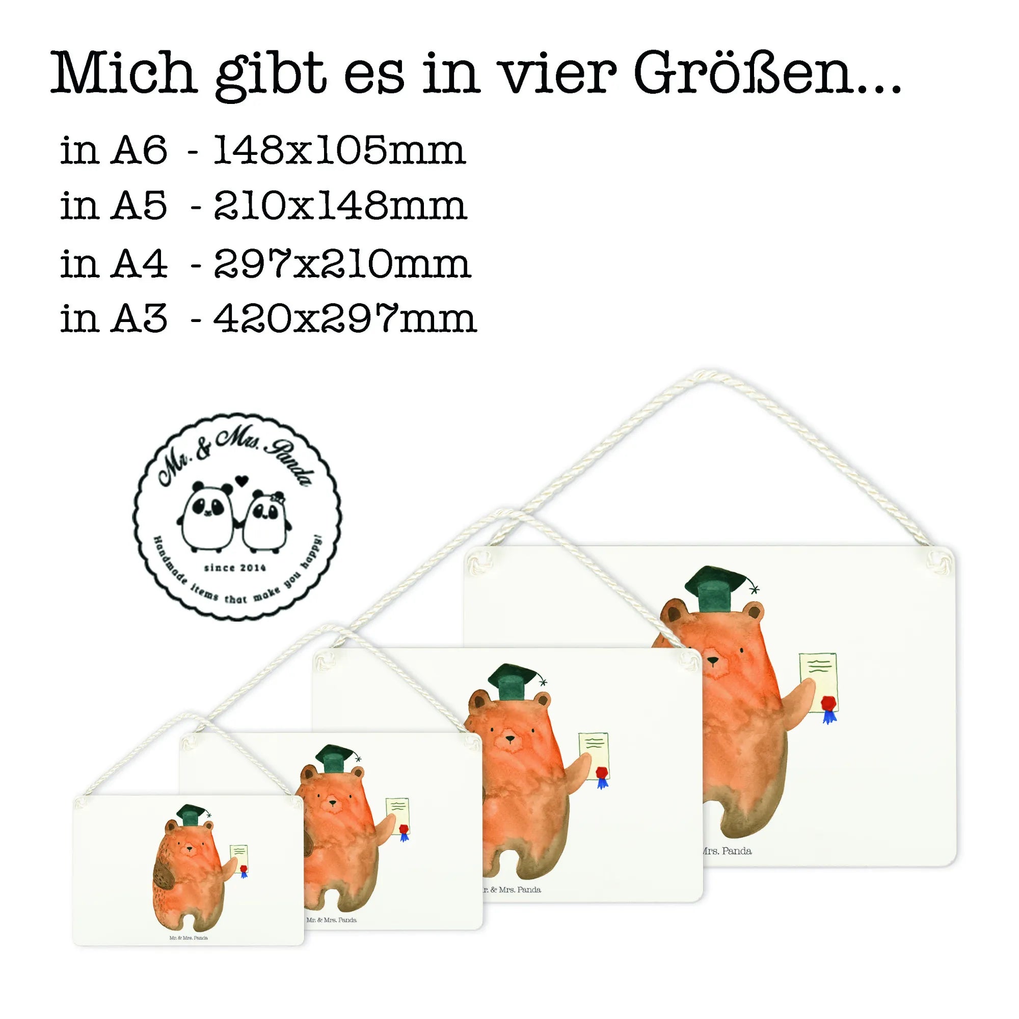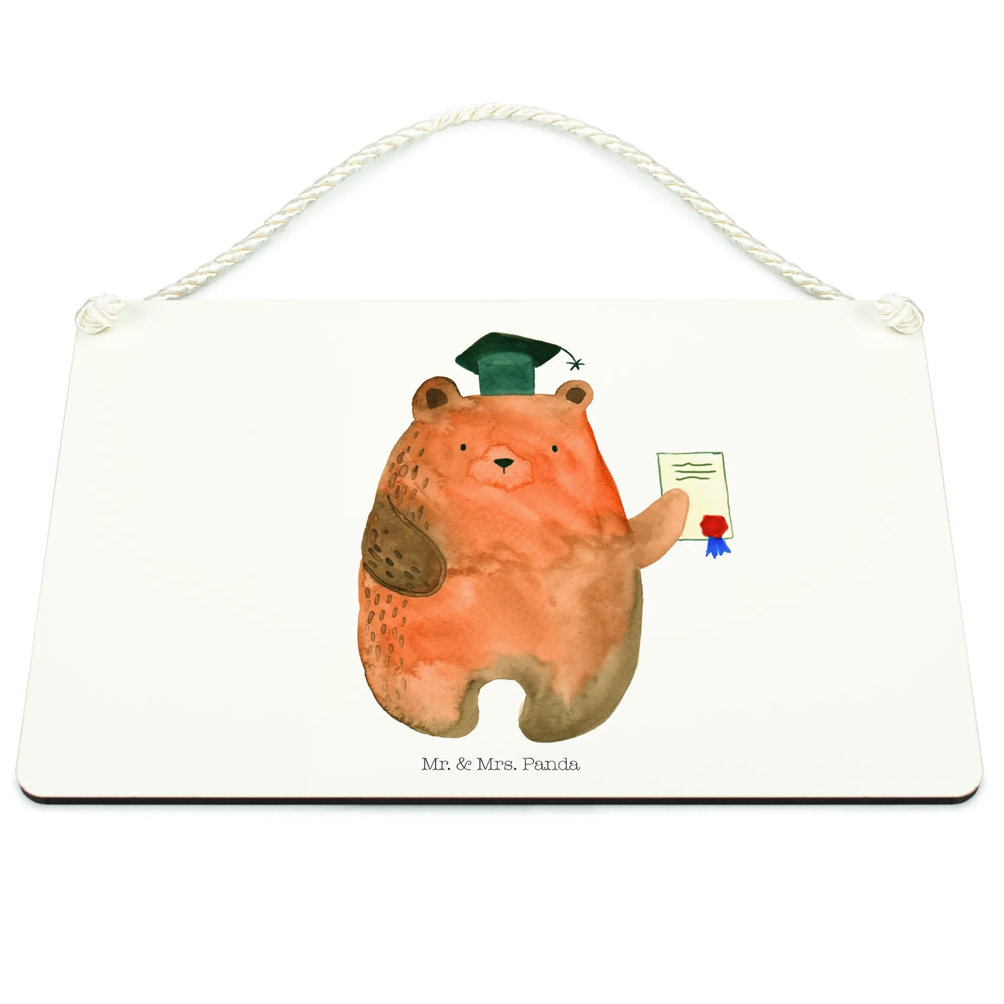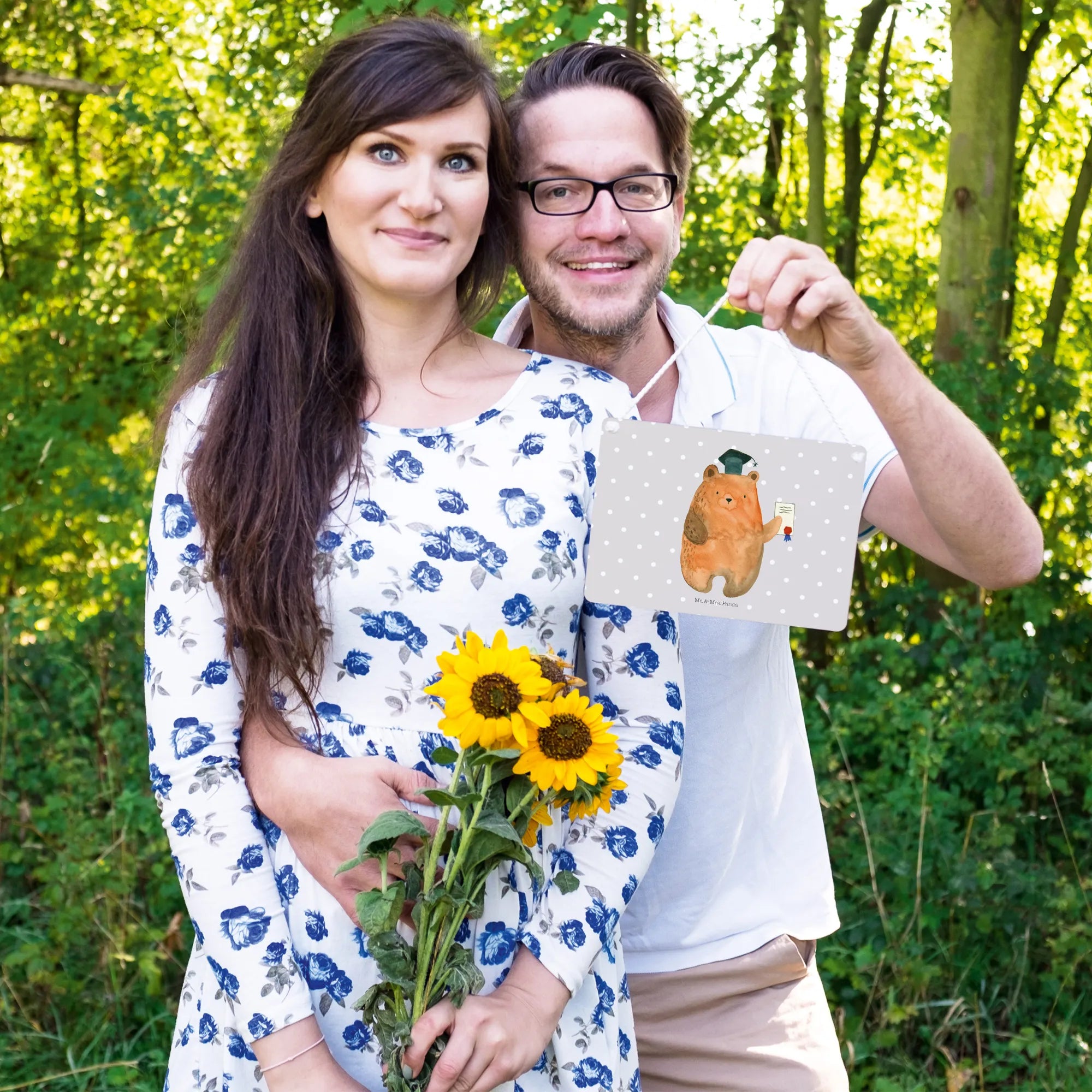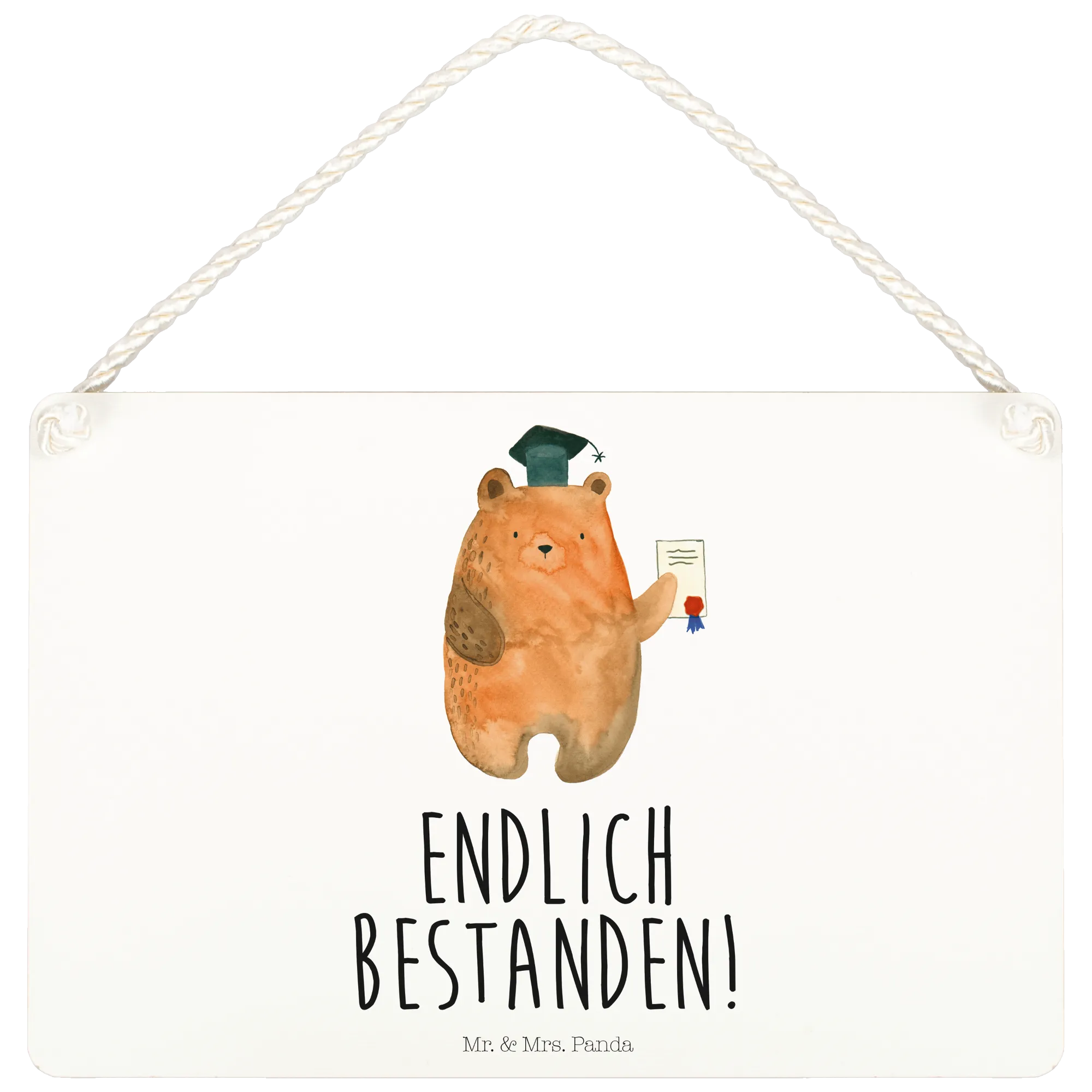 Deko Schild, Prüfungsbär von Mr. & Mrs. Panda wird garantiert der Hit bei jeder Feier! Gedruckt in frischem Pastellgrau passt es in jedes Zuhause und verleiht deinen Wänden einen Hauch von Niedlichkeit und Freude.