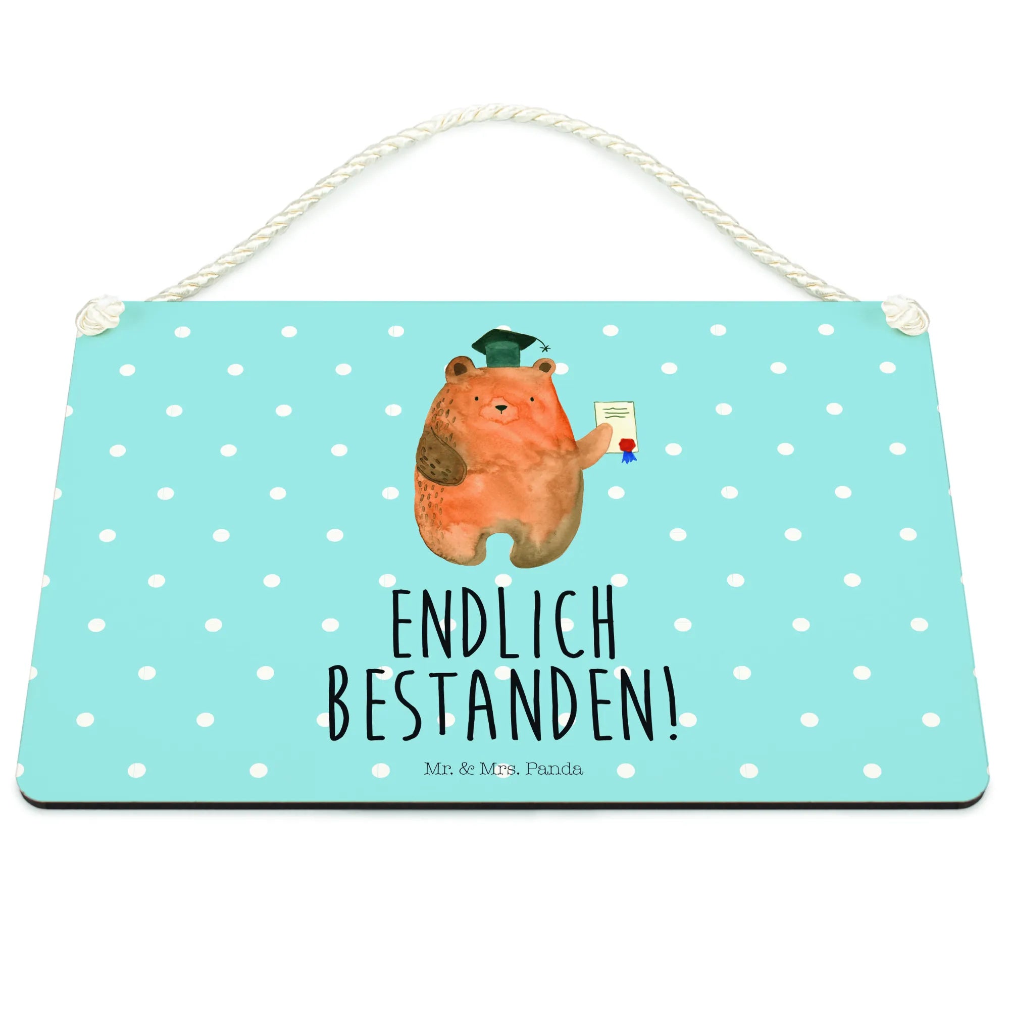 Du möchtest einem lieben Menschen gratulieren? Dieses Deko Schild ist das ideale Geschenk zur bestandenen Prüfung! Überrasche deine Freunde, die gerade ihr Abitur hinter sich gebracht haben, oder jemanden, der seine Berufsausbildung erfolgreich abgeschlossen hat. Die Kombination aus dem süßen Prüfungsbären und dem positiven Spruch macht das Geschenk unvergesslich.
