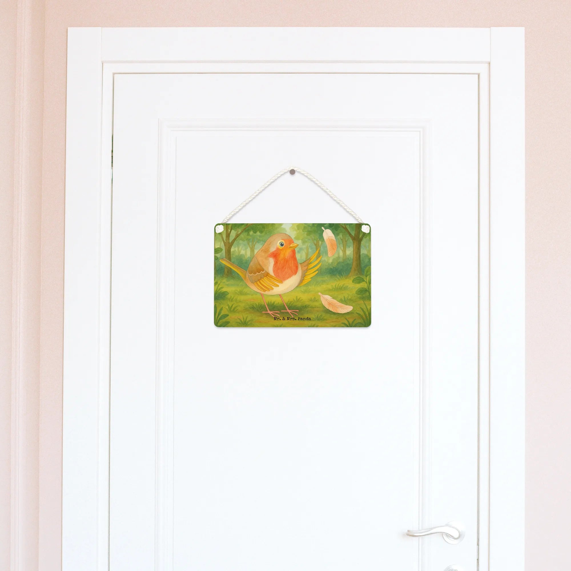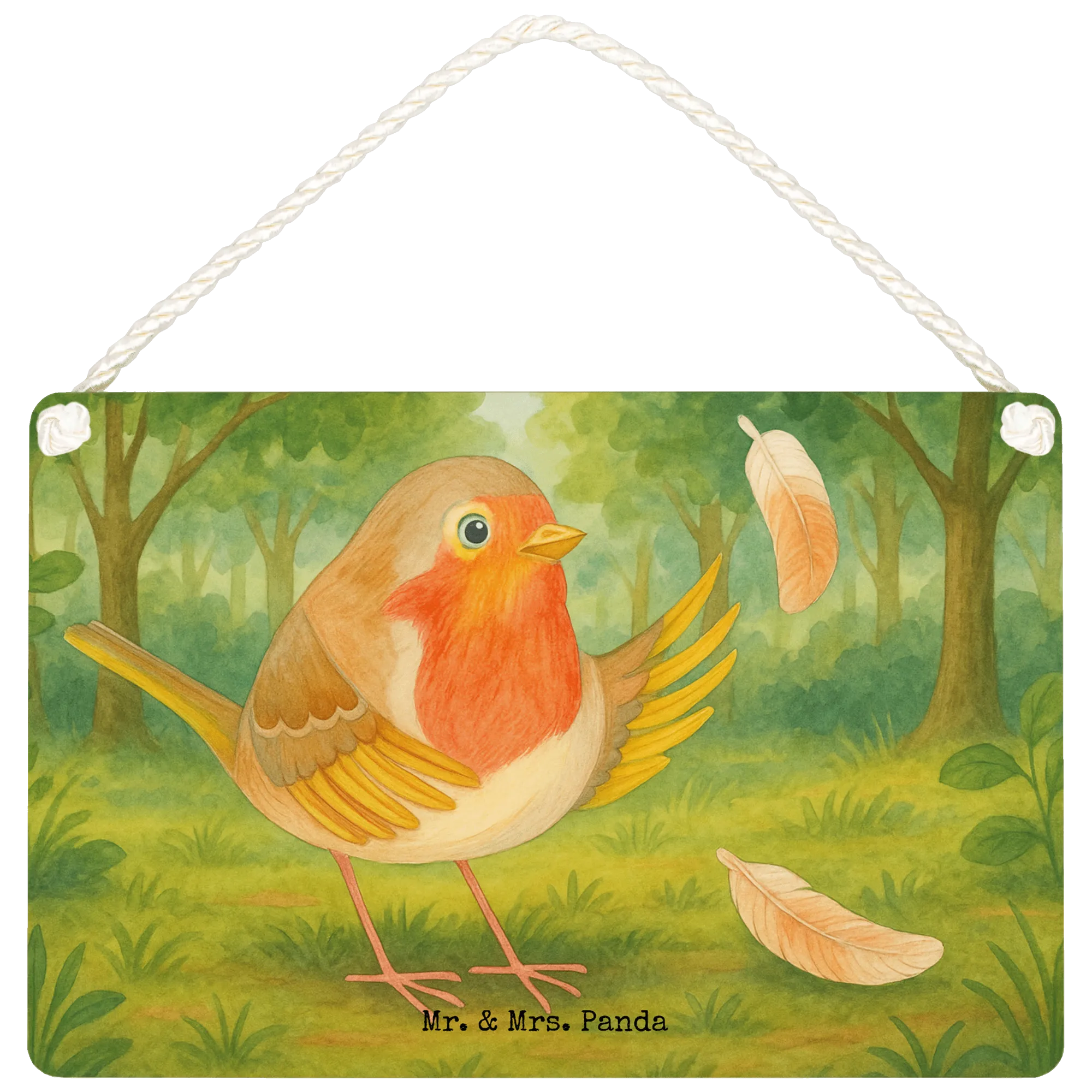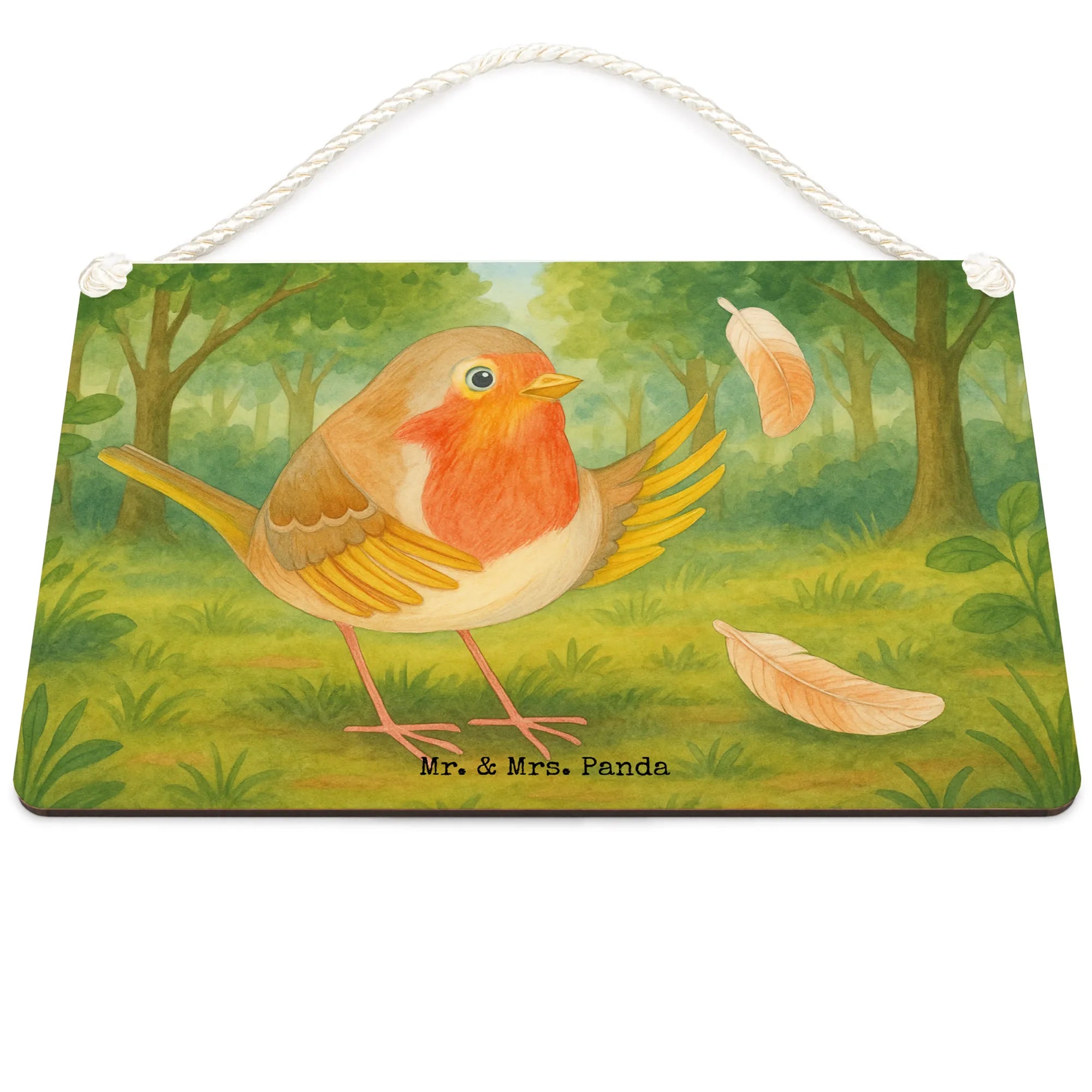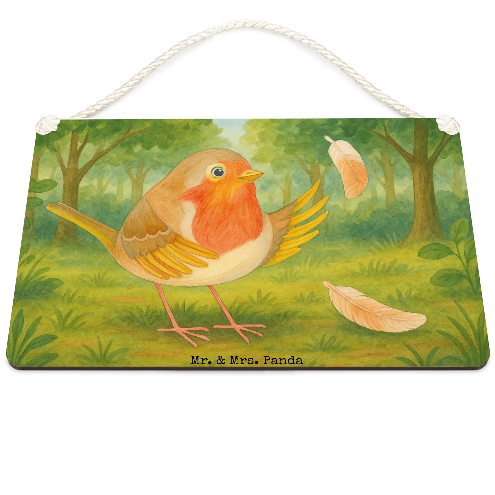 Deko Schild Rotkehlchen Federn Design - DIN A6 - mit Spruch