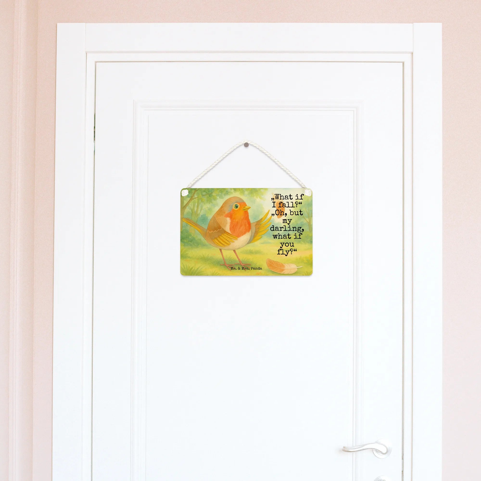 Motivations-Motiv Rotkehlchen mit dem Spruch 'What if I fall? Oh, but my darling, what if you fly?'