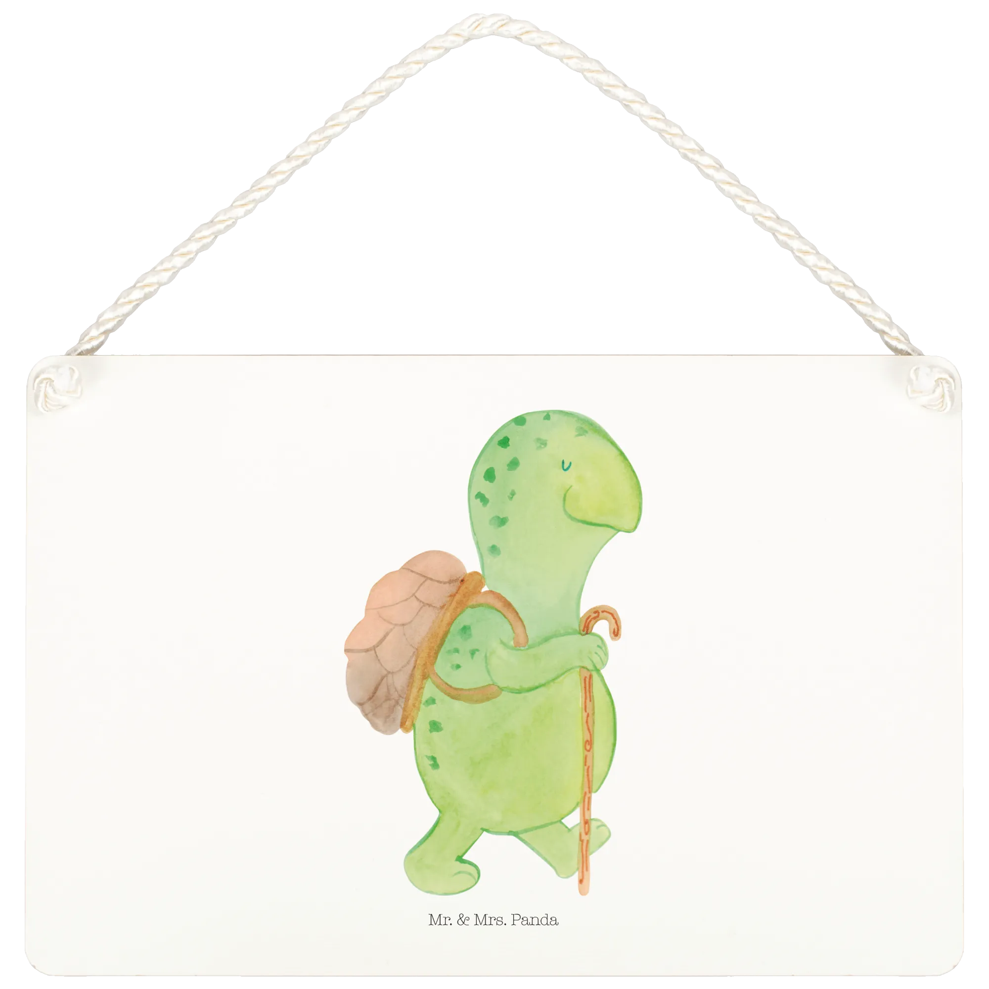 Deko Schild Schildkröte Wanderer - DIN A5 - mit Spruch - Weiß