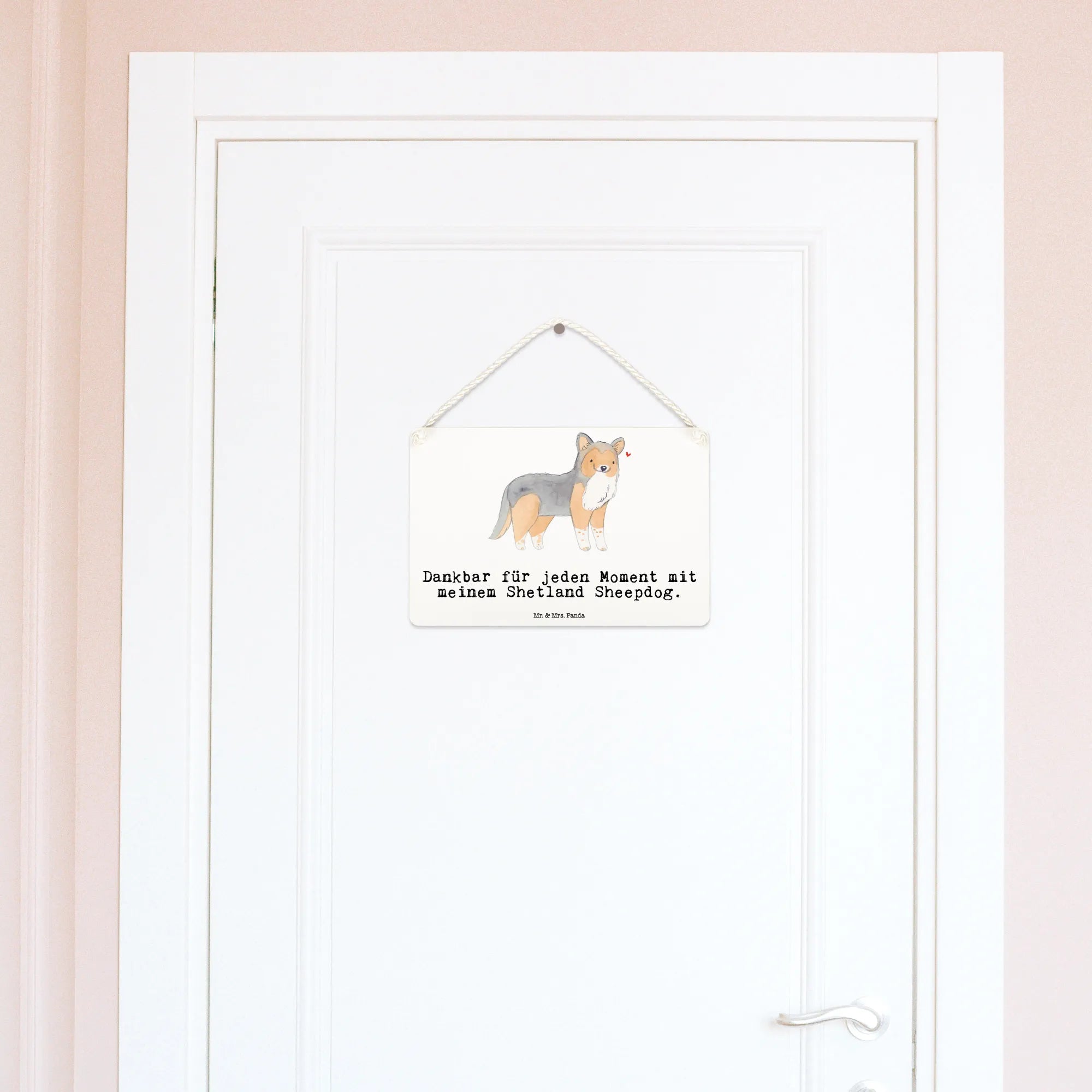 Das wunderschöne Deko Schild "Dankbar für jeden Moment mit meinem Shetland Sheepdog" von Mr. & Mrs. Panda ist das perfekte Geschenk für all jene, die einen Shetland Sheepdog ihr Eigen nennen. Mit einem charmanten Motiv eines Shelties, der seine flauschige Mähne stolz zur Schau trägt und mit einem freundlichen Lächeln die Herzen der Menschen erobert, bringt dieses Schild Wärme und Liebe in jedes Zuhause.