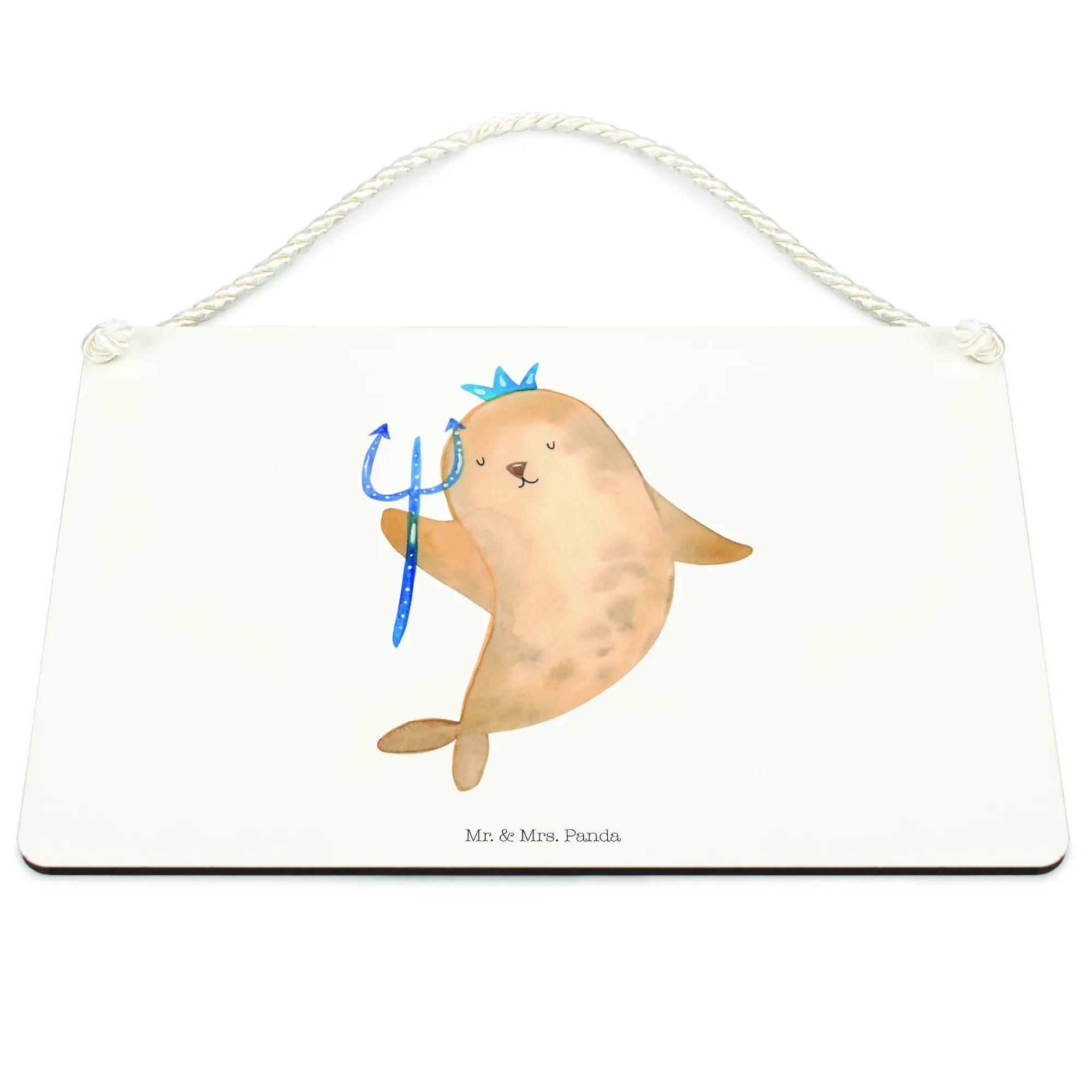 Du suchst nach dem perfekten Geschenk für einen Wassermann? Dann ist unser Deko Schild mit dem süßen Wassermann Motiv genau das richtige für dich! Dieses Schild ist nicht nur eine wunderschöne Wanddeko, sondern auch eine charmante Dekoration für die Tür. Handgezeichnet von Mrs. Panda, zeigt es eine lustige Robbe, die mit einer Krone und einem Zepter spielt - das passt perfekt zum spontanen und grandiosen Wesen eines Wassermanns!