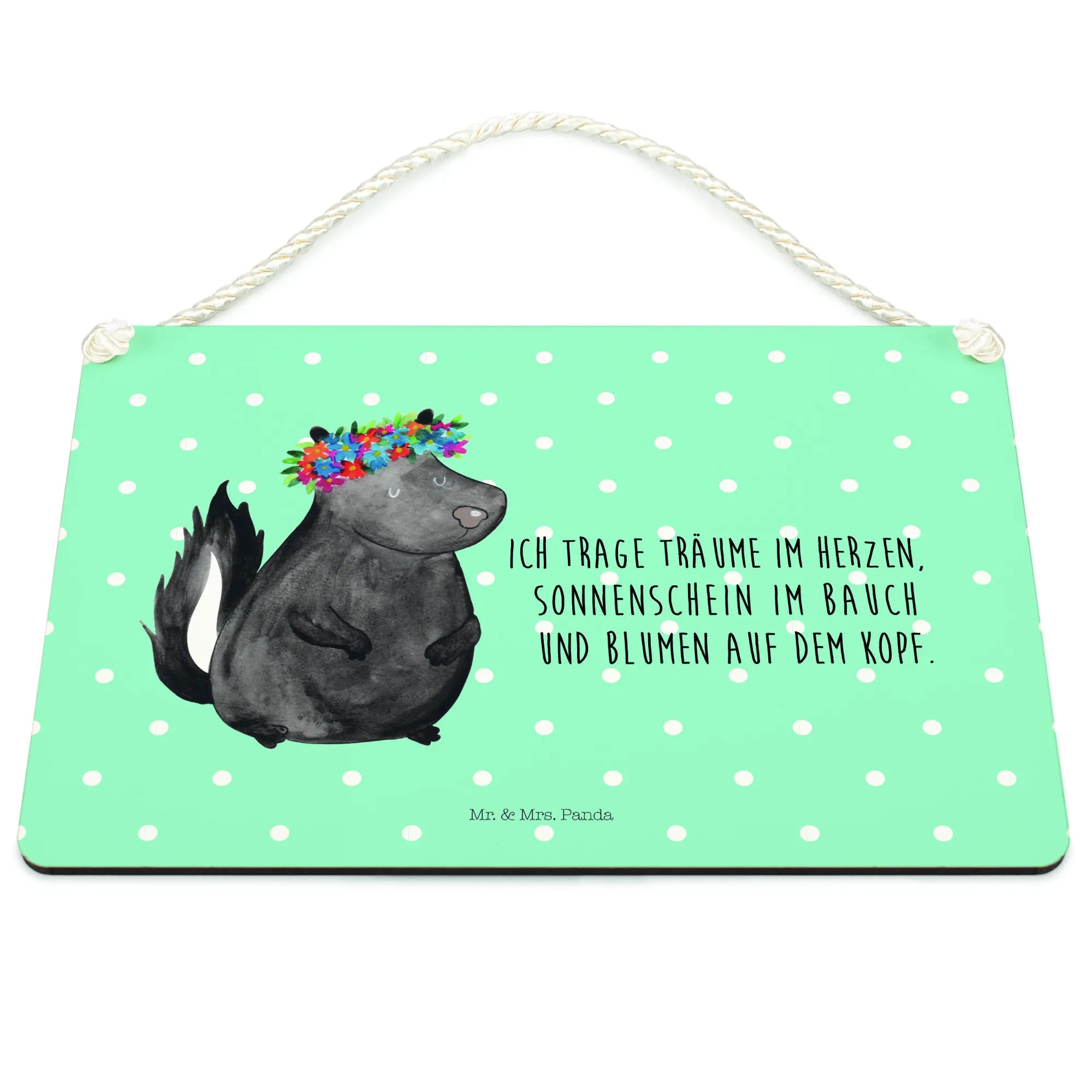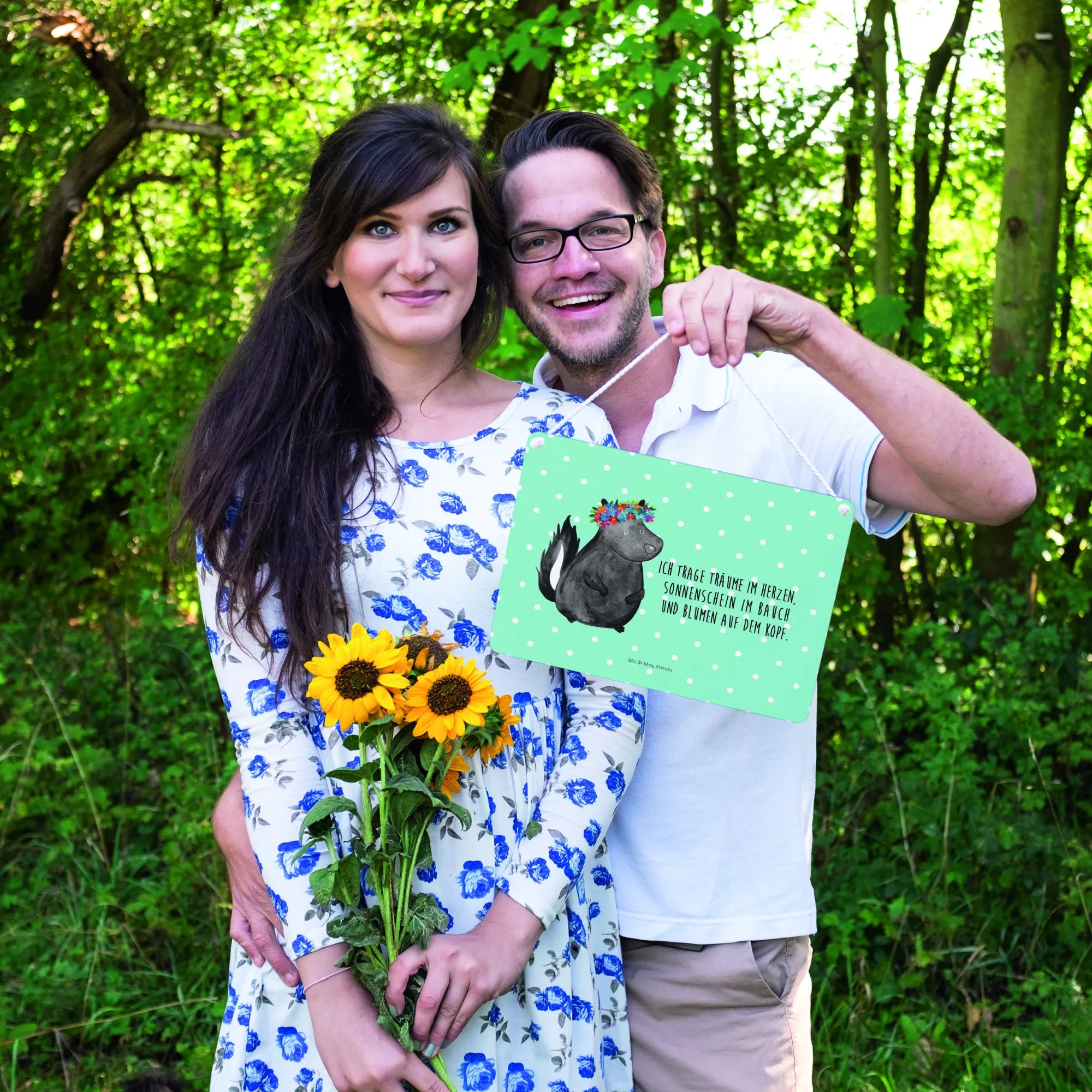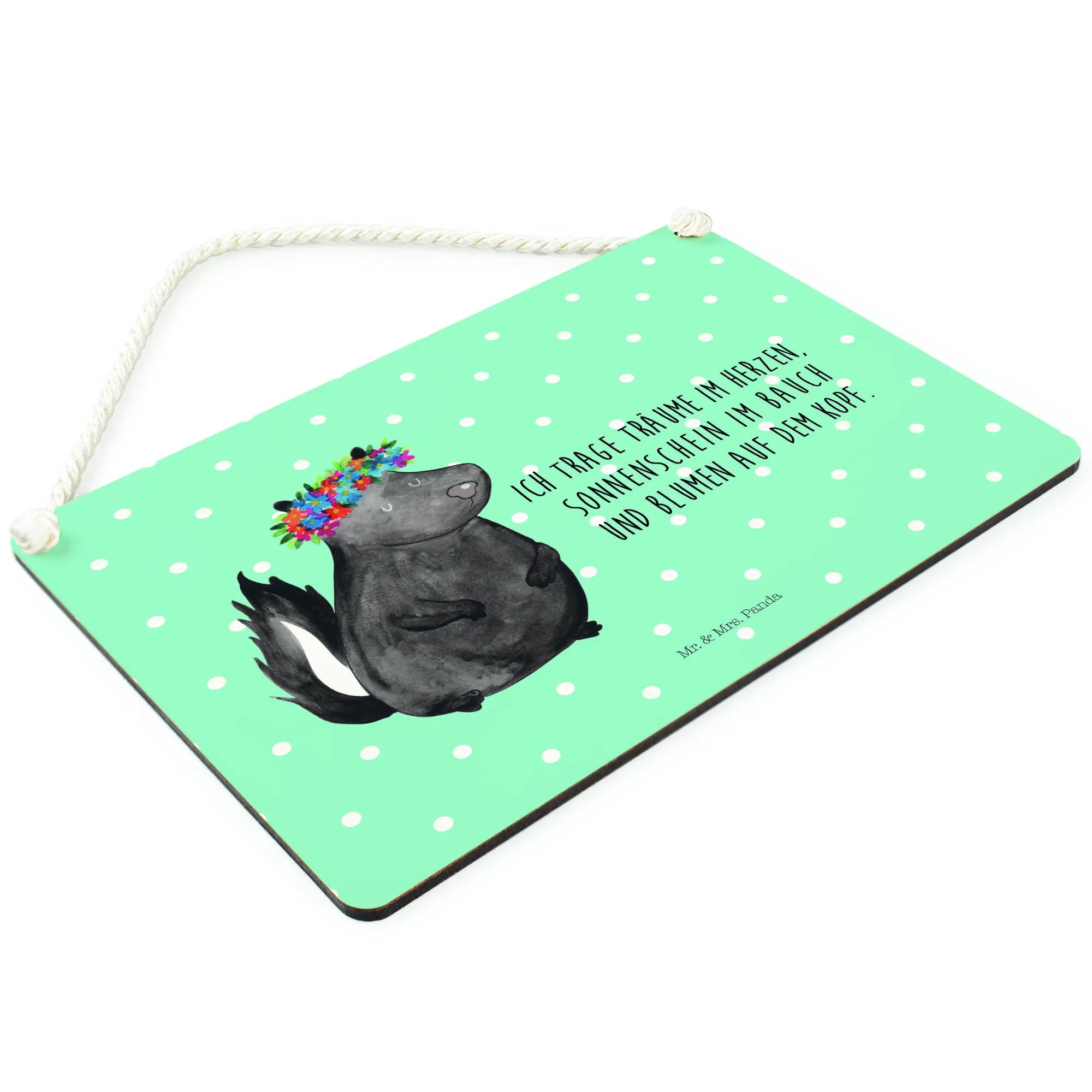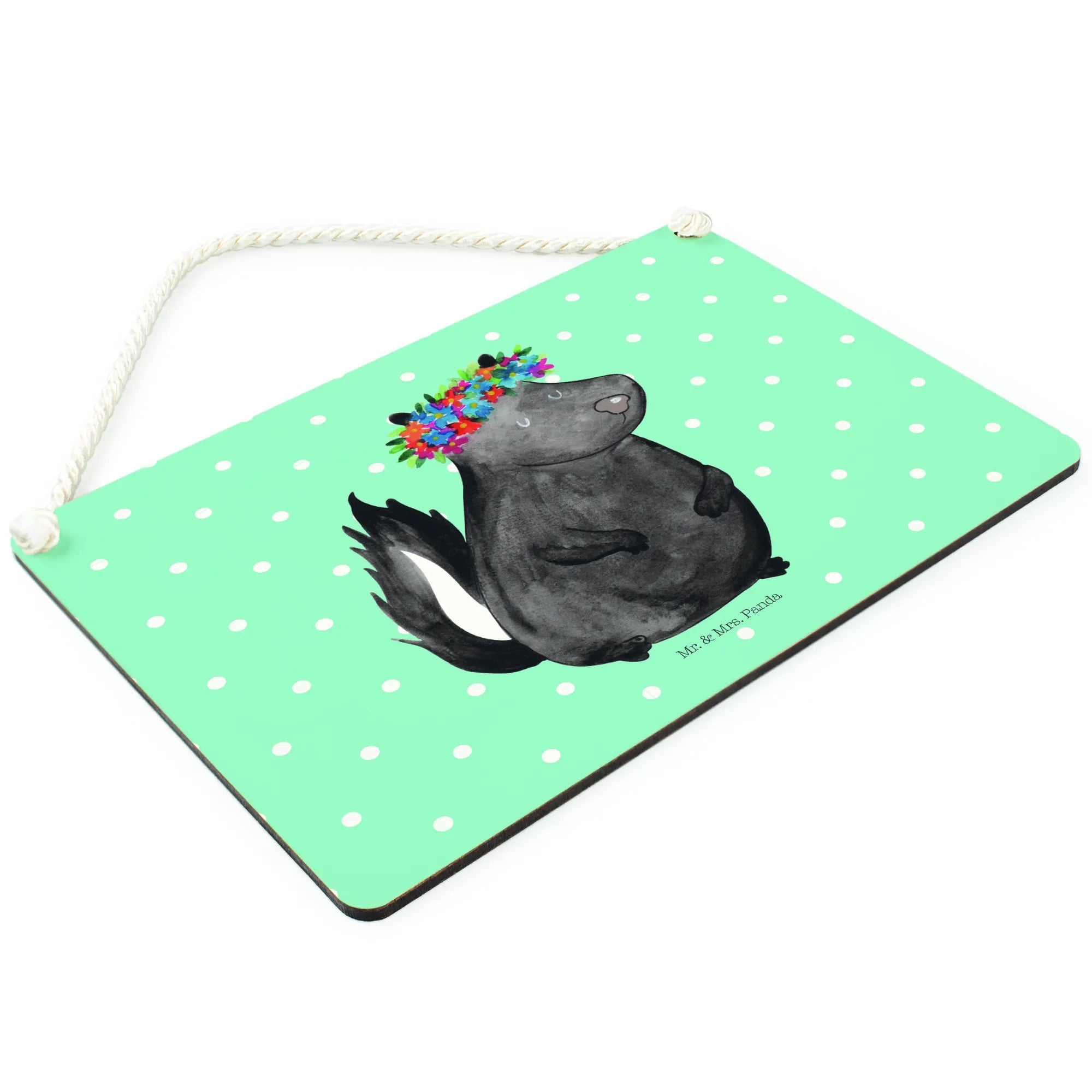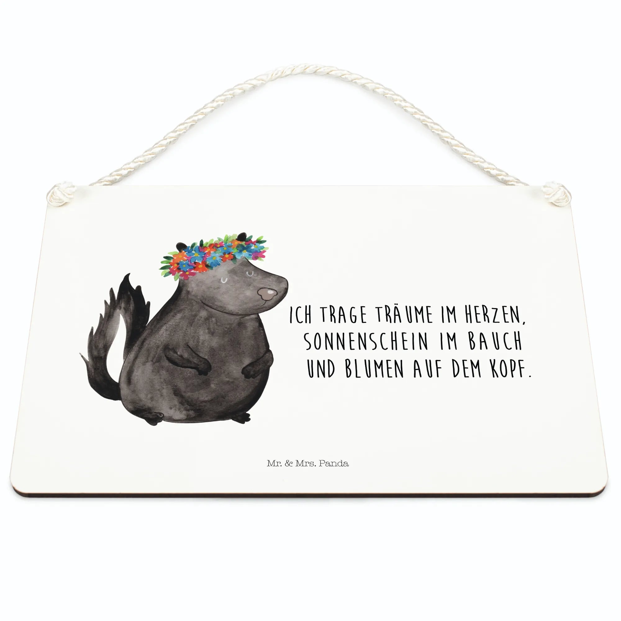 Suchst du nach einem ganz besonderen Geschenk, das Herzen erwärmt und Freude bringt? Dann ist das Deko Schild 'Stinktier Blumenmädchen' aus der Stinktier - Kollektion von Mr. & Mrs. Panda genau das Richtige für dich und deine Lieben!