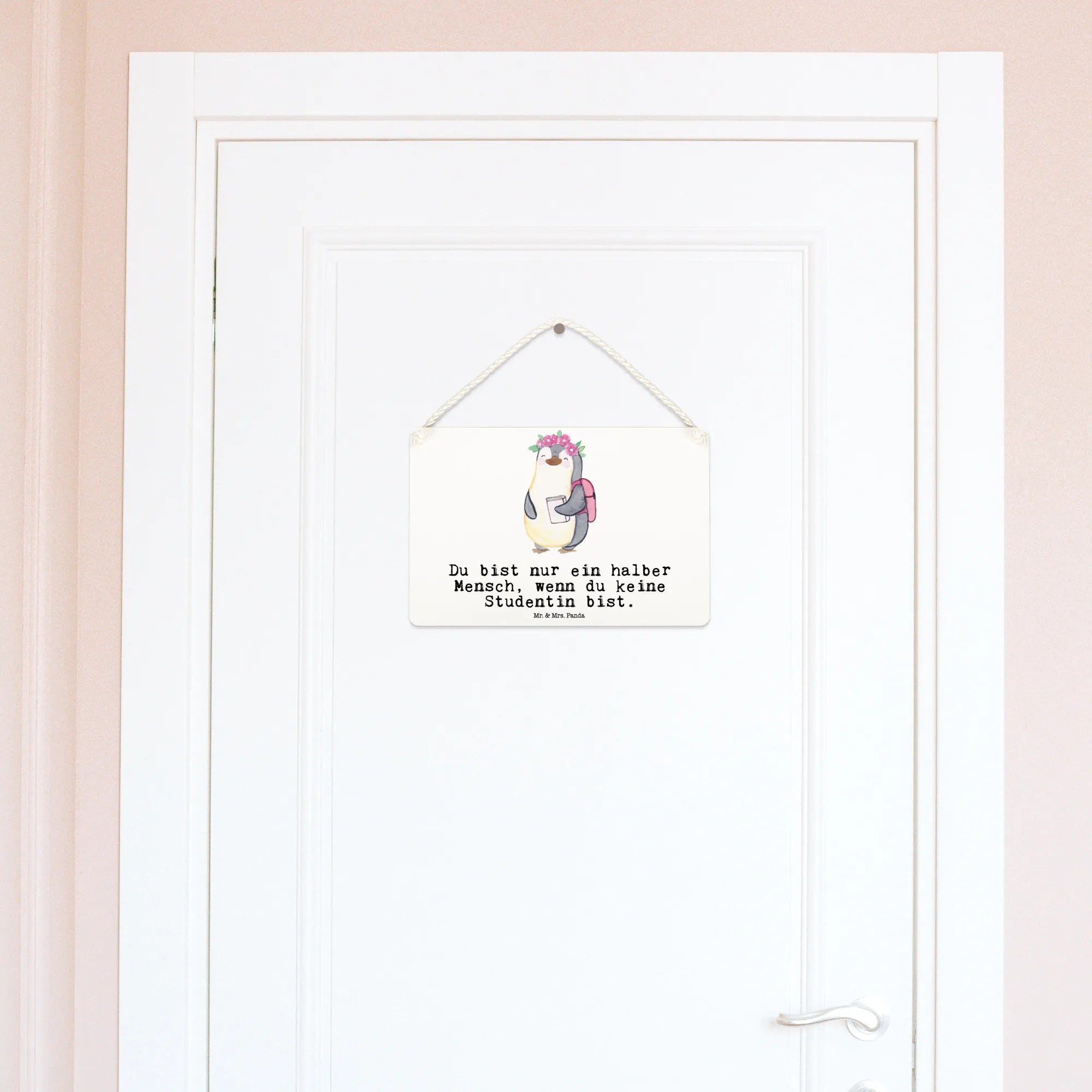 Entdecke unser wunderschönes Deko Schild 'Studentin mit Herz' aus der bezaubernden Berufe Kollektion von Mr. & Mrs. Panda! Dieses liebevoll gestaltete Wunschmotiv zeigt einen süßen Pinguin, der mit einem Rucksack zur Uni unterwegs ist und den Slogan 'Du bist nur ein halber Mensch, wenn du keine Studentin bist.'