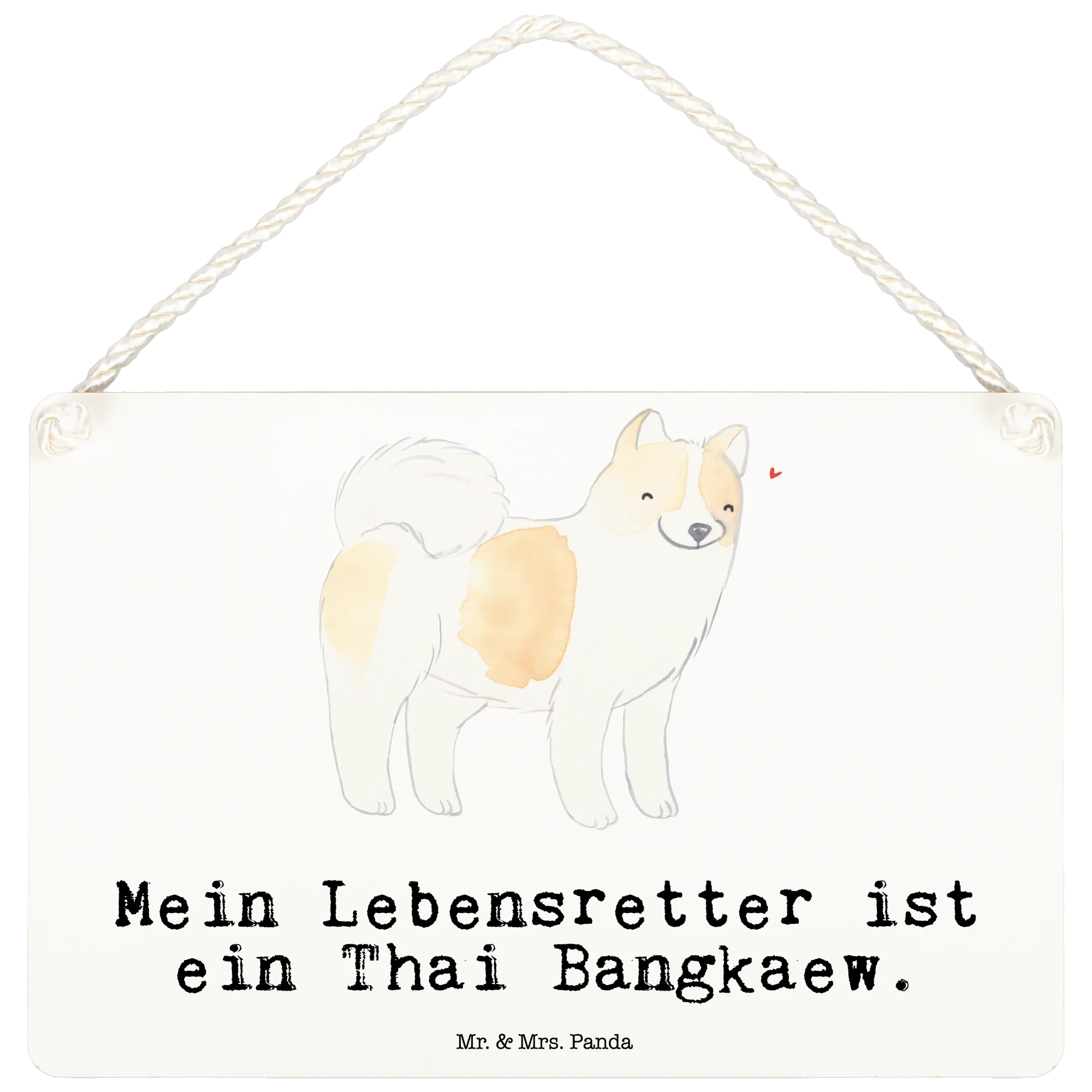 Der Slogan 'Mein Lebensretter ist ein Thai Bangkaew' spricht die Herzen der Hundebesitzer an und macht das Schild zum idealen Geschenk zu vielen Anlässen wie Geburtstagen, Einweihungen oder als Aufmerksamkeiten für Tierfreunde.