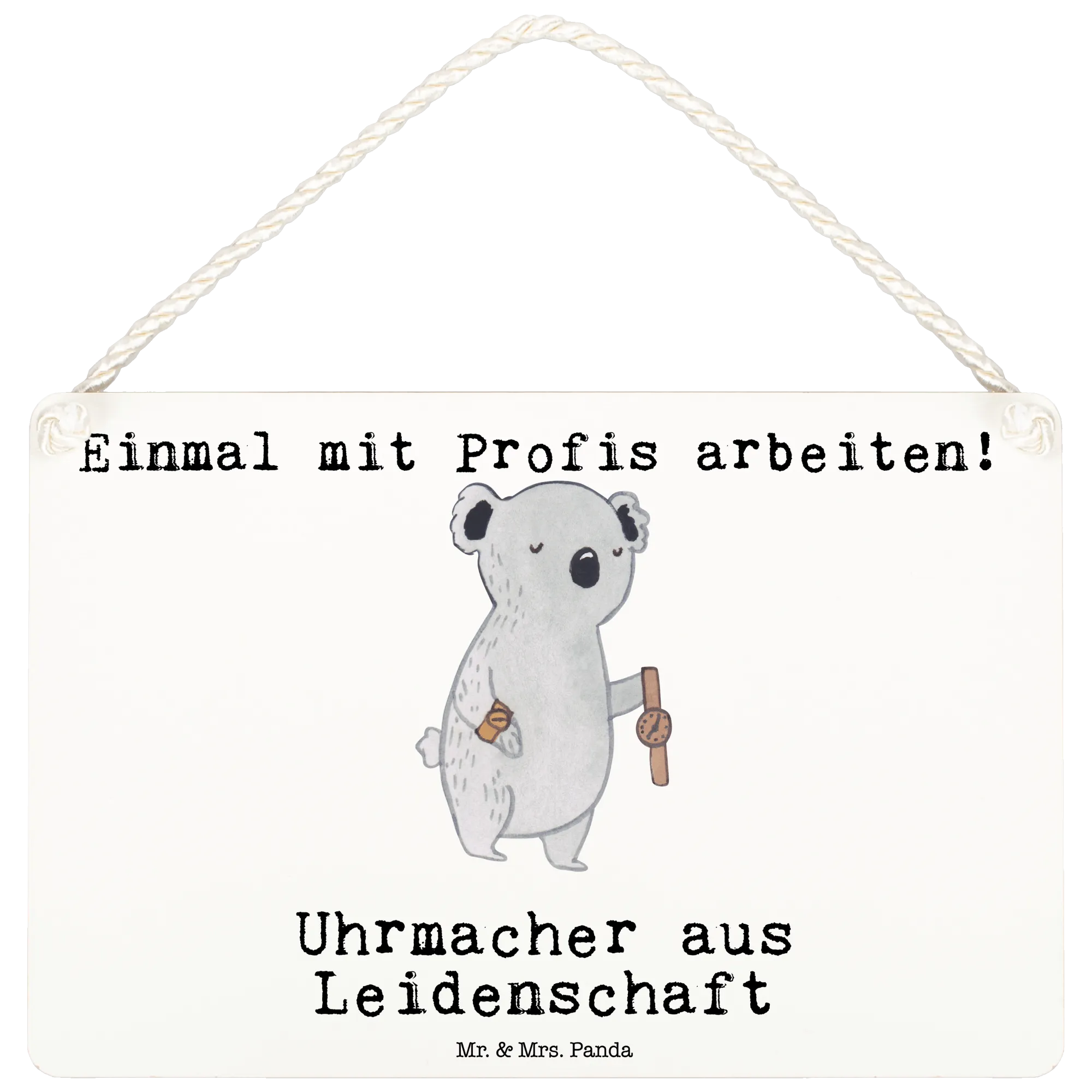 Entdecke unser wunderschönes Deko Schild 'Uhrmacher aus Leidenschaft' aus der kreativen Berufe Kollektion von Mr. & Mrs. Panda! 🐼✨ Das Schild besticht durch sein niedliches Design mit einem charmanten Koala, der stolz eine goldene Uhr präsentiert und damit die Leidenschaft der Uhrmacher verkörpert.