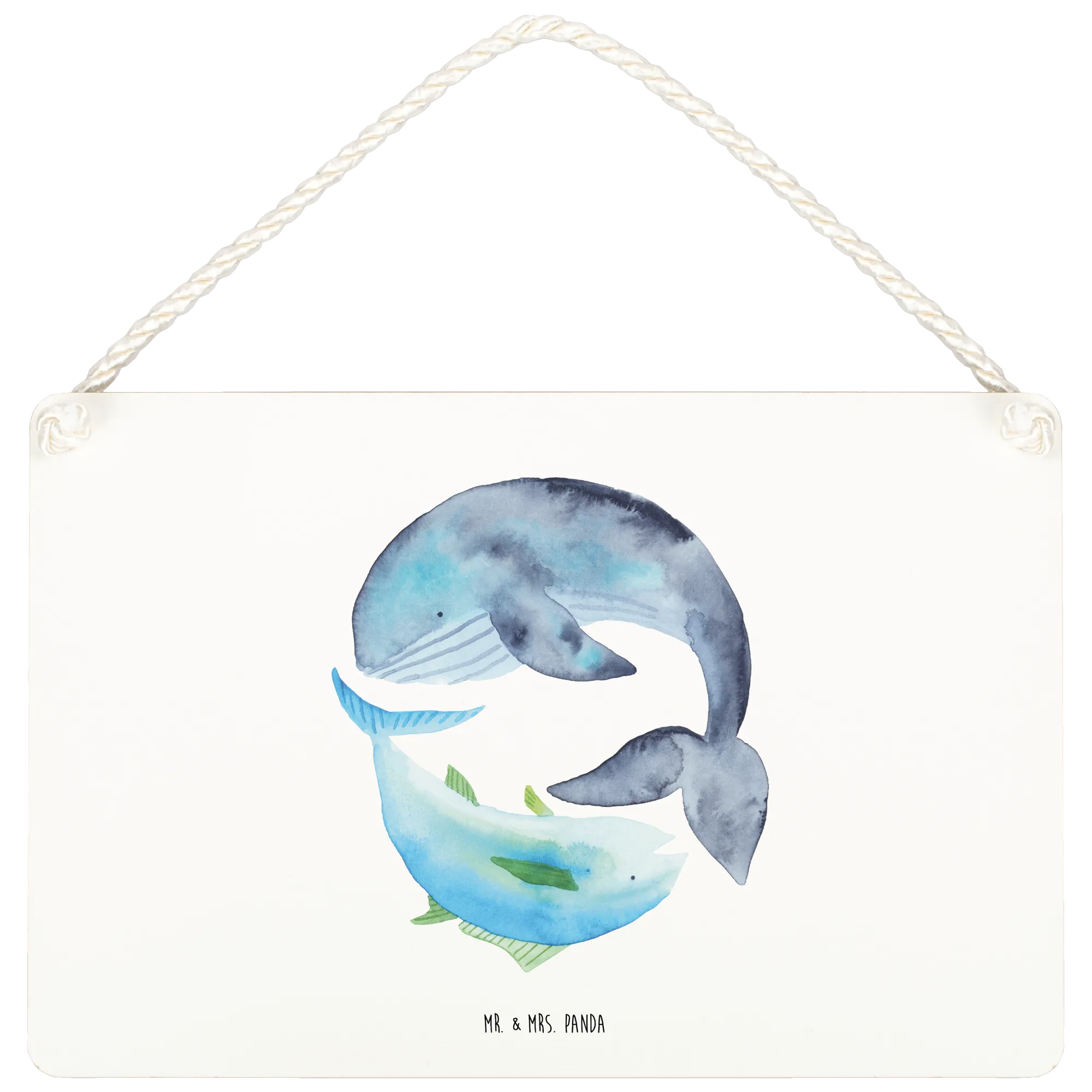 Entdecke unser wundervolles Deko Schild mit dem süßen Motiv von Walfisch und Thunfisch aus der beliebten Kollektion "Small World" von Mr. & Mrs. Panda. Dieses Schild ist nicht nur ein echter Hingucker, sondern auch eine fröhliche Dekoration für dein Zuhause!
