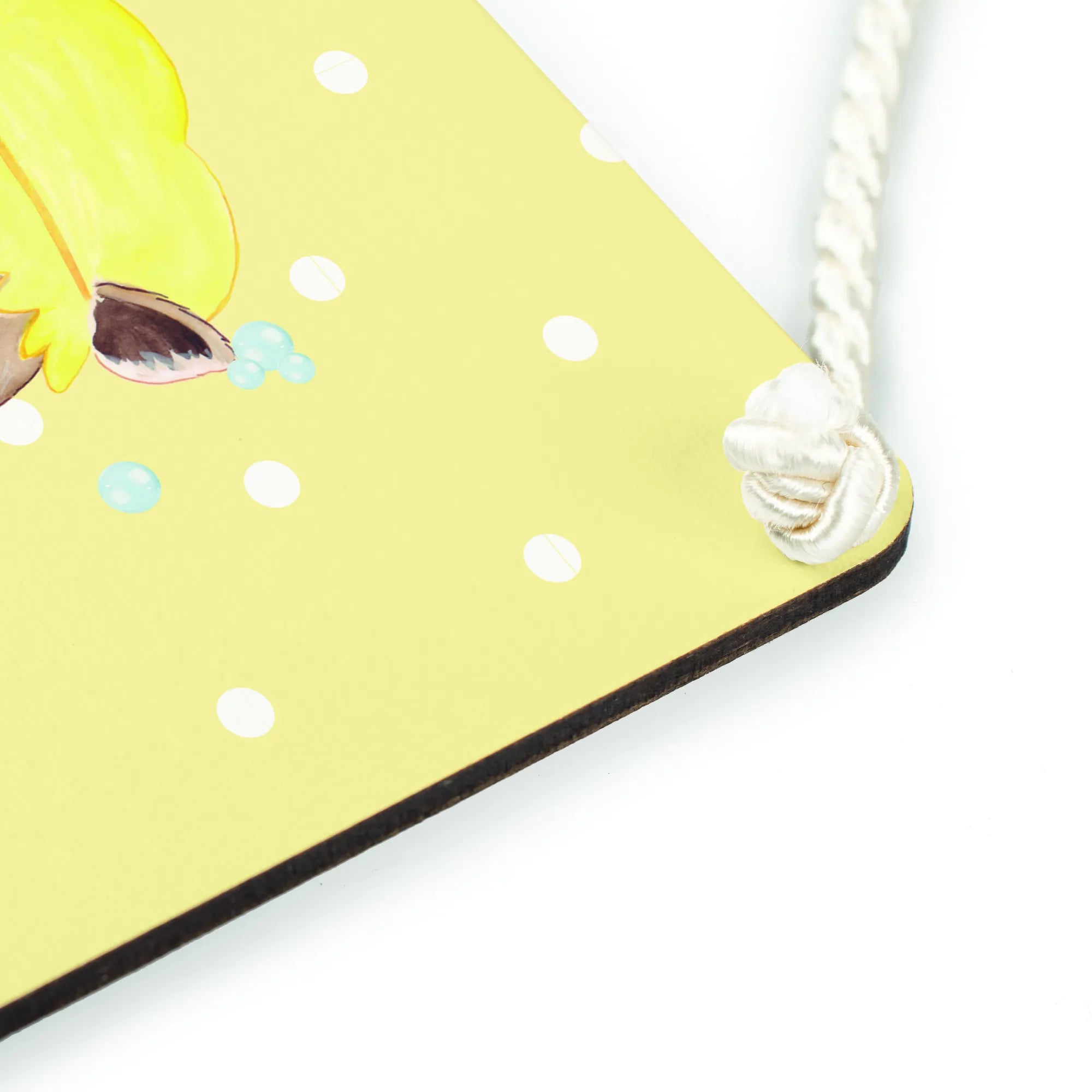 Das niedliche Design und die brillante Farbgebung, in einem pastelligen Gelb, machen das Schild zu einem perfekten Geschenk für Freunde, Familie oder dich selbst, um jeden Tag ein wenig mehr Freude zu verbreiten.
