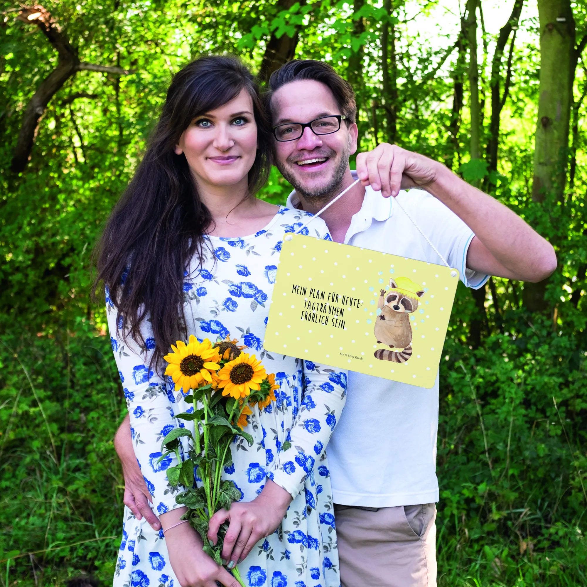 Entdecke unser bezauberndes Deko Schild mit dem niedlichen Waschbärenmotiv aus der Small World Kollektion von Mr. & Mrs. Panda! Dieses liebevoll gestaltete Schild mit dem Spruch "Mein Plan für heute: Tagträumen und fröhlich sein." wird dein Zuhause nicht nur verschönern, sondern auch jedem ein Lächeln ins Gesicht zaubern.