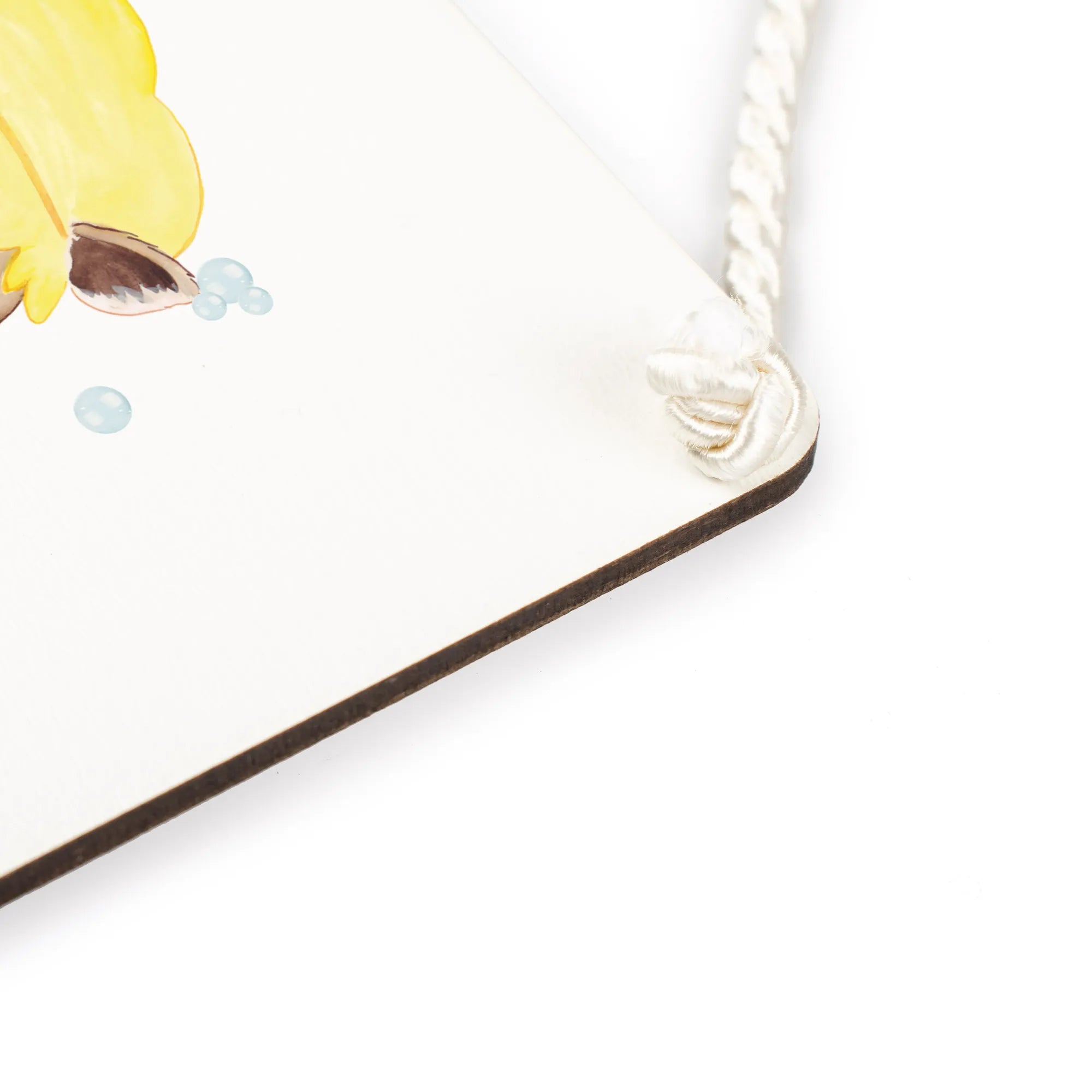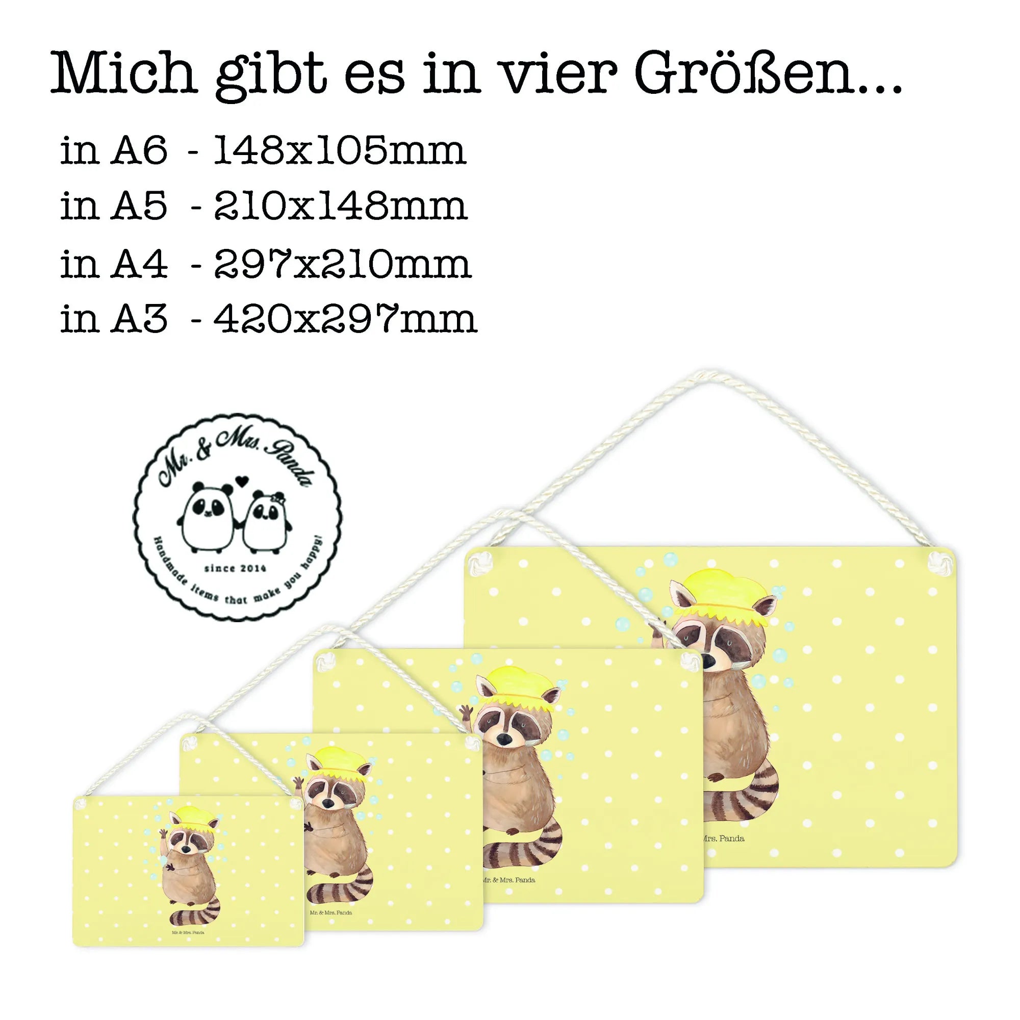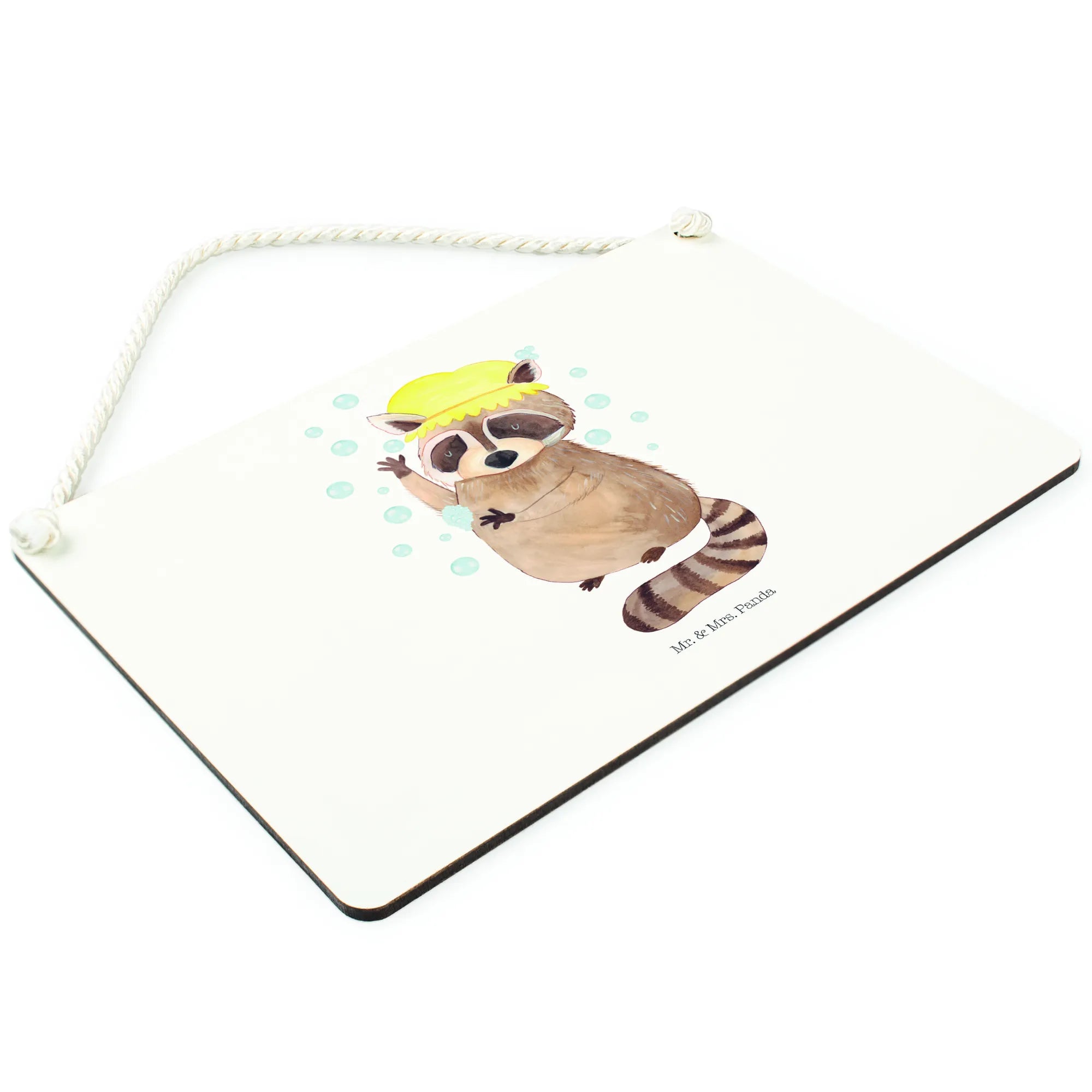 Dieses liebevoll gestaltete Schild bringt nicht nur Farbe in Dein Zuhause, sondern sorgt auch für gute Laune. Mit einem putzigen Waschbären, der genüsslich unter einer Dusche steht und seine Seifenblasen genießt, wird dieses Schild zum perfekten Blickfang in jedem Badezimmer oder an der Wand Deines Wohnbereichs.