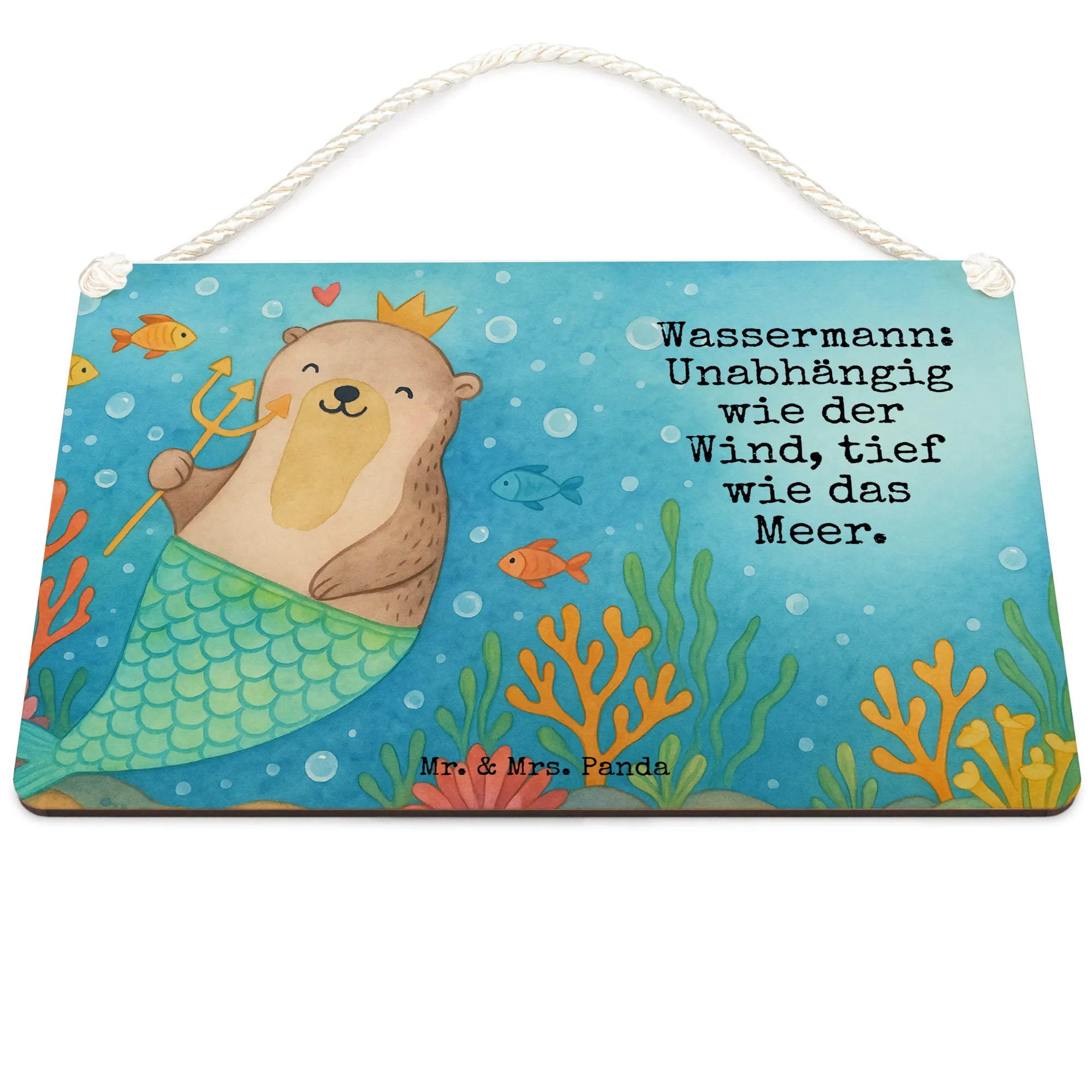 In der bezaubernden Darstellung unseres Wassermann-Motivs lebt die Freiheit eines Otters in harmonischer Verbindung mit der mystischen Tiefe des Meeres. Der Otter strahlt mit seiner goldenen Krone und freundlichen Augen Freude und Zuversicht aus, während der bunte Fischschwanz ihn ins Wasser eintaucht und die Vorstellungskraft beflügelt. Über ihm schwebt ein Herz, das die Liebe und Wertschätzung widerspiegelt, die wir für alle Wassermänner empfinden. Egal, ob als Geburtstagsgeschenk oder zur eigenen Verschönerung, dieses Design erweckt die Sehnsucht nach Erkundung und Unabhängigkeit. Wassermann: Unabhängig wie der Wind, tief wie das Meer.