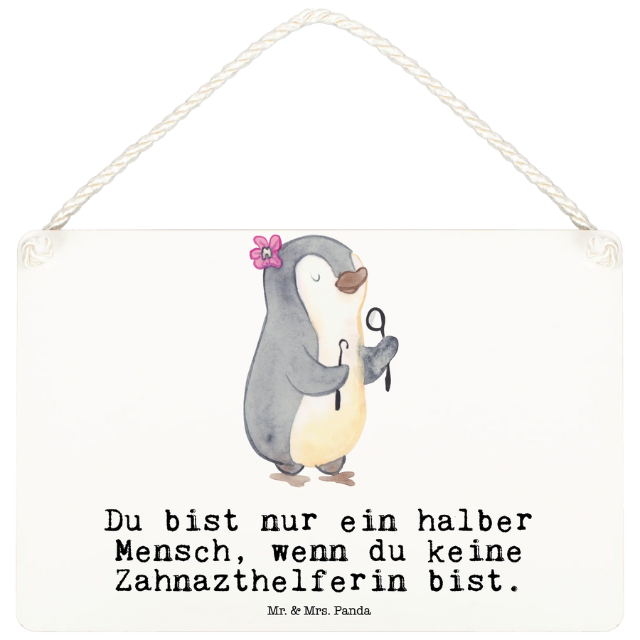 Du suchst ein originelles Geschenk für eine Zahnarzthelferin? Dann ist unser Deko Schild "Zahnarzthelferin mit Herz" genau das Richtige für dich! Dieses wunderschöne Holzschild aus der kreativen Berufe Kollektion von Mr. & Mrs. Panda ist perfekt, um deine Anerkennung für die engagierte Arbeit dieser wichtigen Berufsgruppe auszudrücken. Der süße Pinguin auf dem Schild ist nicht nur ein toller Zahnarzthelfer, sondern verkörpert auch den besonders liebevollen Charakter, der jeden Tag für das Wohl der Patienten sorgt. Mit dem humorvollen Spruch "Du bist nur ein halber Mensch, wenn du keine Zahnarzthelferin bist!" zaubert das Schild jedem Zahnarzthelfer ein Lächeln ins Gesicht.
