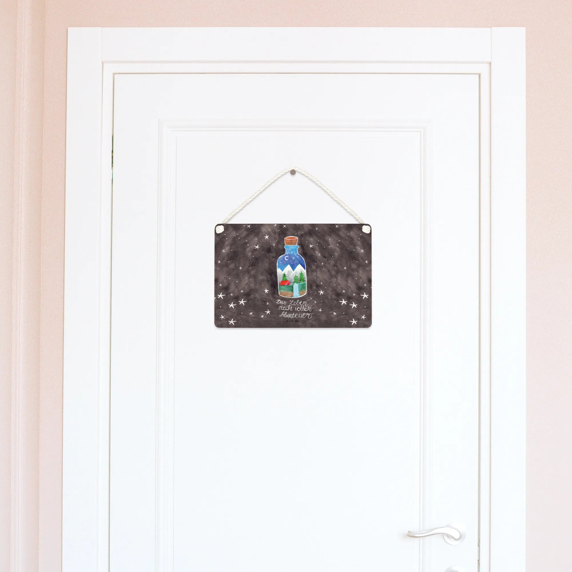 Das Deko Schild Flasche Abenteuer aus der Kollektion Wild & Free von Mr. & Mrs. Panda ist das perfekte Geschenk für alle Naturliebhaber und Outdoor-Fans! Mit seinem liebevoll gestalteten Design und dem fröhlichen Motto bringt es positive Vibes in jedes Zuhause.