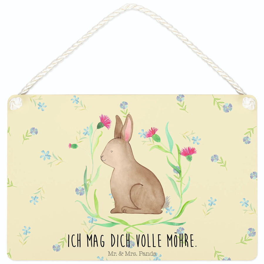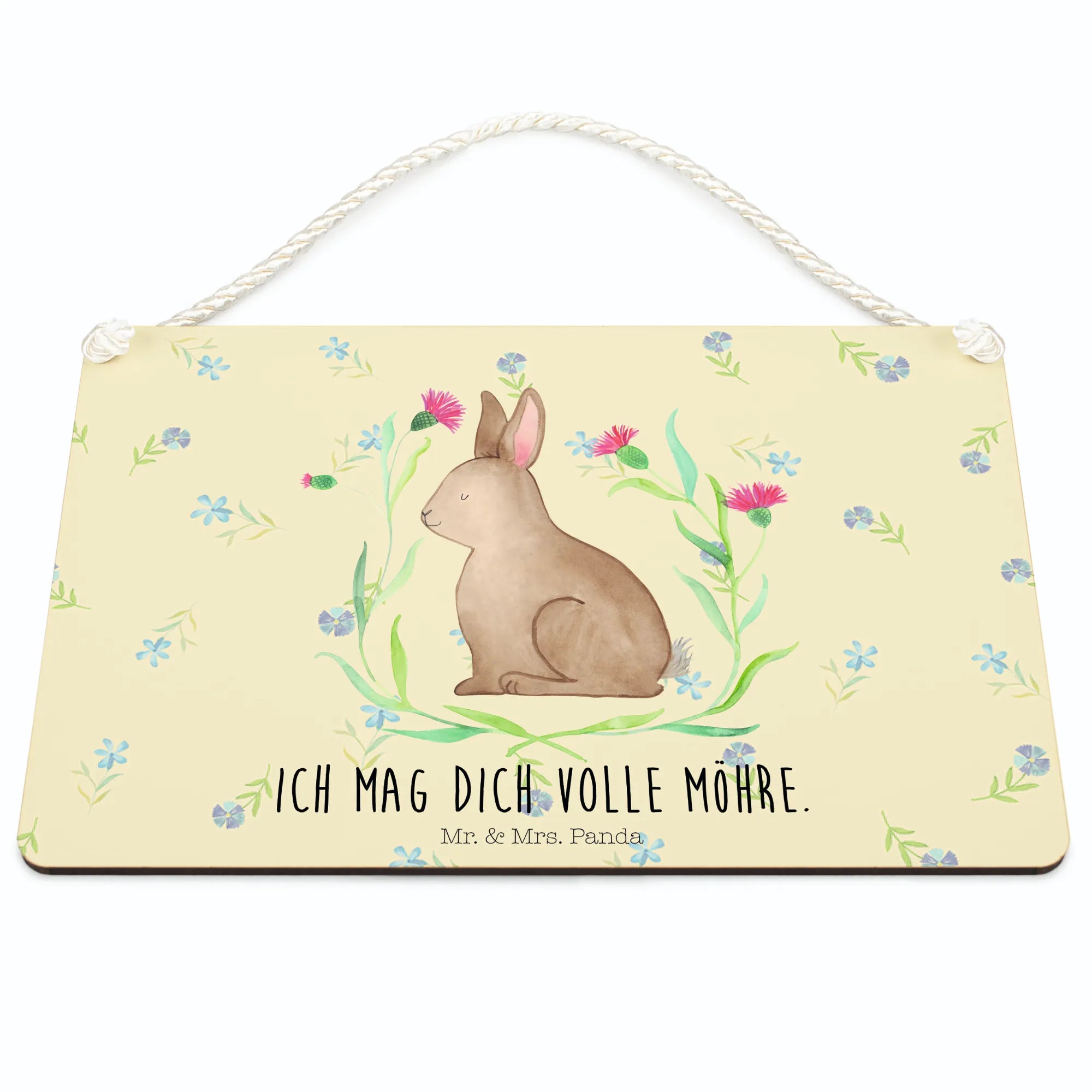 Vielseitig & langlebig: Das Schild kommt mit einer gedrehten Kordel zum Aufhängen und einer beschichteten Oberfläche, die den edlen Druck schützt. So bleibt dein Hase sitzend lange schön und macht in Küche, Flur, Wohnzimmer oder im Gartenbereich eine gute Figur.