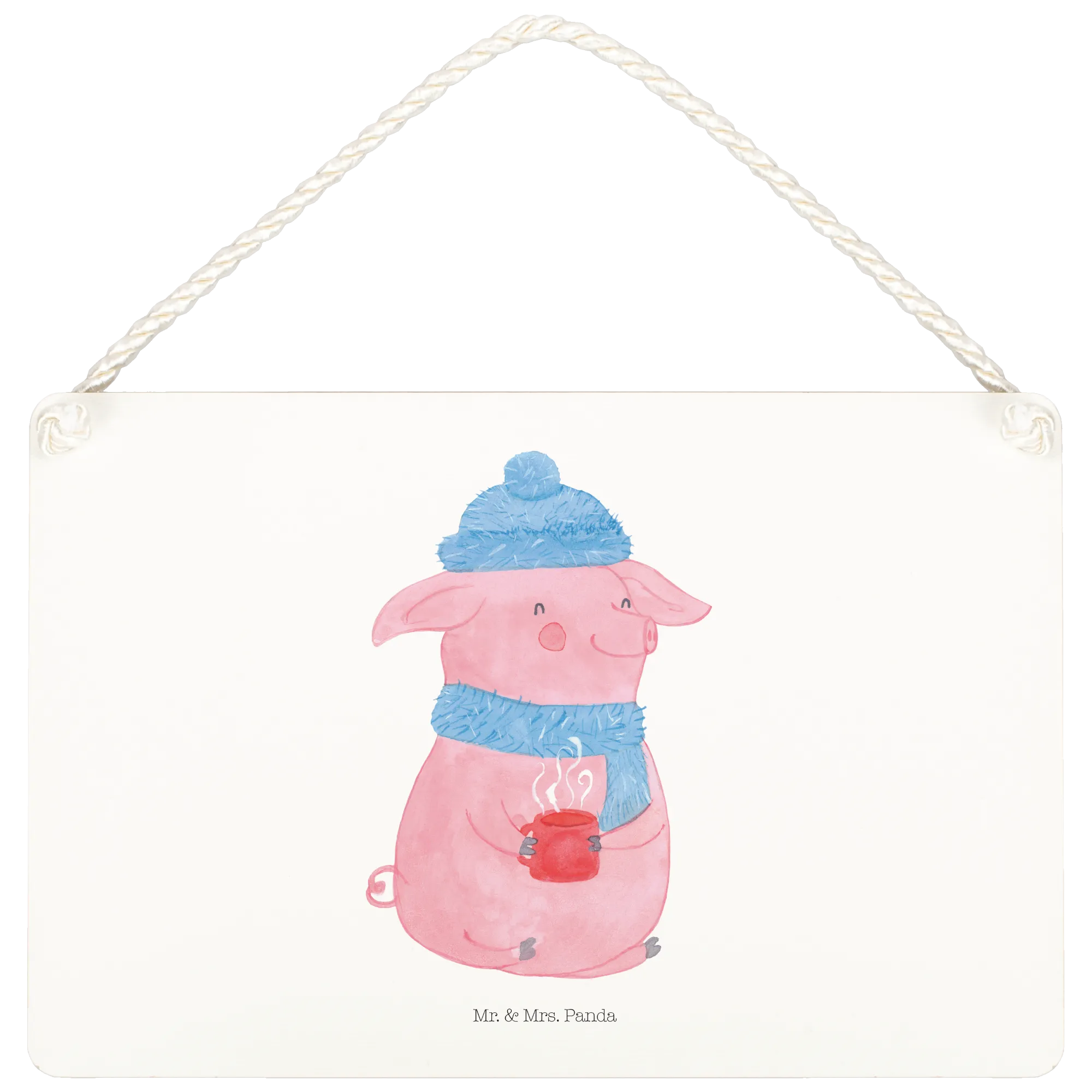 Das Deko Schild Lallelndes Glühschwein aus der zauberhaften Winter Kollektion von Mr. & Mrs. Panda ist das perfekte Geschenk für alle, die die frostigen Tage mit einem Lächeln begrüßen wollen. Mit seinem fröhlichen, anthropomorphen Schwein in winterlicher Kleidung bringt es Freude und eine gemütliche Atmosphäre in jedes Zuhause. Das rosa Schwein trägt eine niedliche blaue Mütze und einen Schal und hält eine dampfende Tasse Glühwein – ideal für die kalte Jahreszeit!