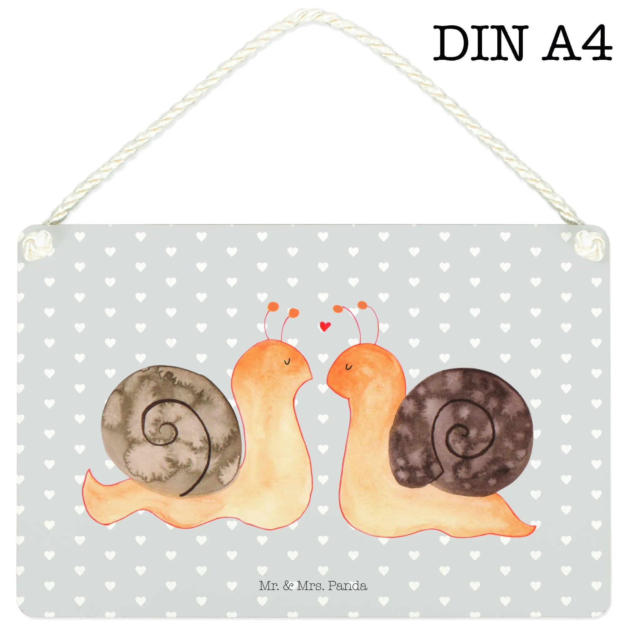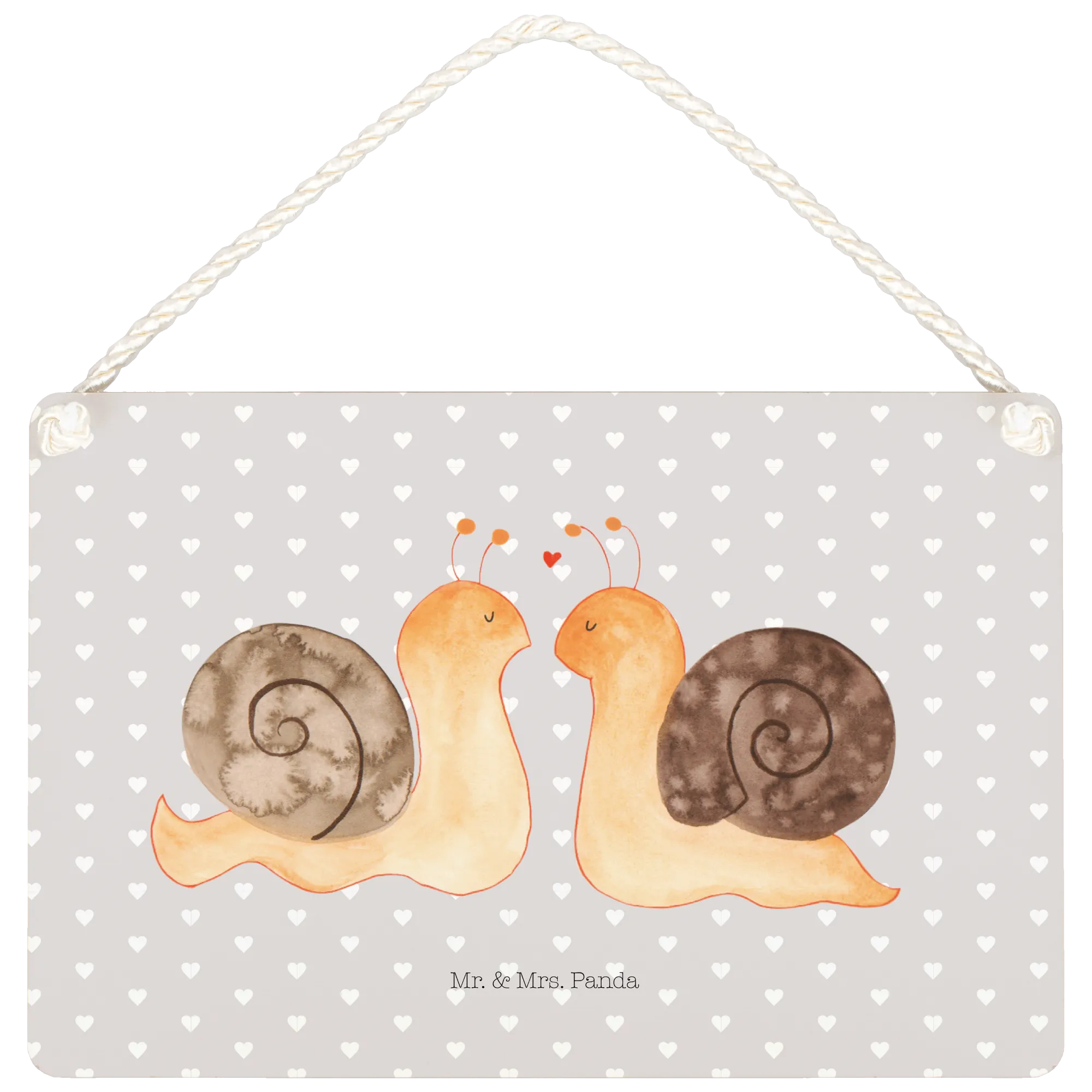 Mit seinem charmanten Motiv von niedlichen Schnecken, die sich verliebt gegenüberstehen und von kleinen roten Herzen umgeben sind, verbreitet es pure Liebesromantik. Die detailreiche Darstellung der Schnecken mit ihren spiralförmigen Schalen verleiht dem Schild einen verspielten und liebevollen Charakter, der garantiert jedes Herz höher schlagen lässt.