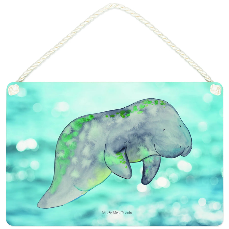 Entdecke das zauberhafte Deko Schild "Seekuh chillt" von Mr. & Mrs. Panda! Mit einem charmanten Motiv einer entspannten Seekuh, die in sanften blauen und grünen Aquarellfarben dargestellt ist, bringt dieses Schild eine fröhliche Meeresstimmung in dein Zuhause.