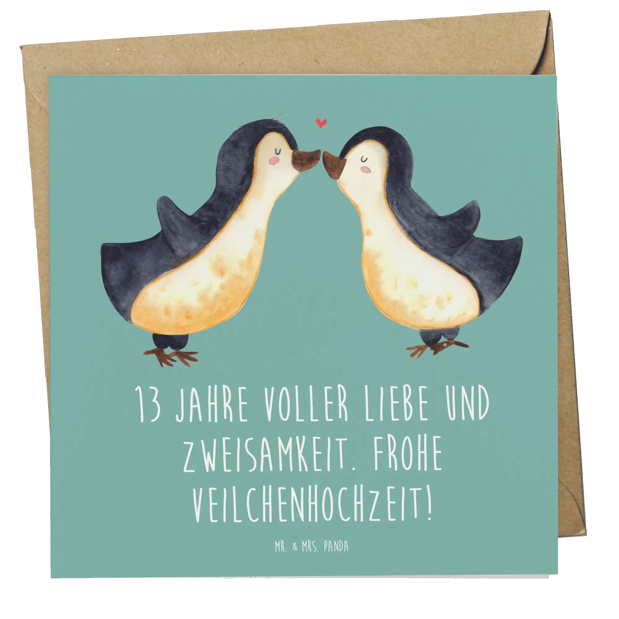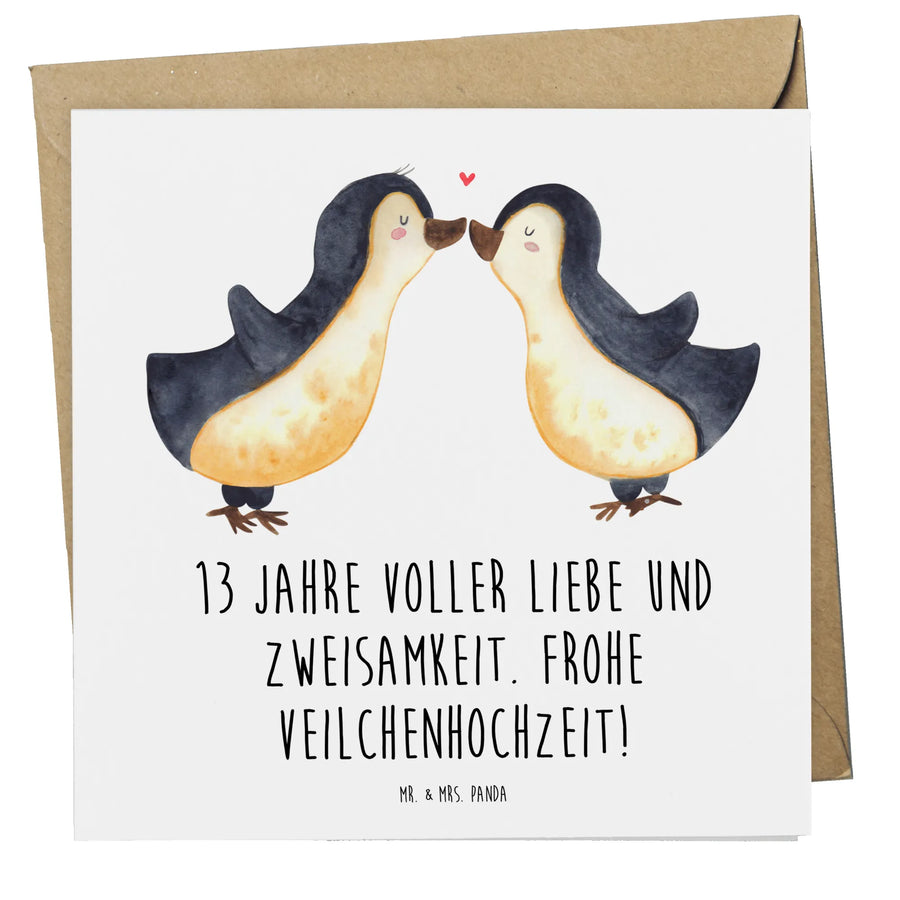 Die Hochzeit Kollektion von Mr. & Mrs. Panda umfasst nicht nur diese Karte, sondern auch viele weitere kreative Designs, die für jede Feierlichkeit rund um Heiratsanträge, Trauungen und Jahrestage perfekt geeignet sind. Lass dich von der Vielfalt der Motive und Sprüche inspirieren und finde für jeden besonderen Moment das passende Accessoire. Mit dieser stilvollen Karte zauberst du garantiert ein Lächeln auf das Gesicht des glücklichen Paares! Feiere die Liebe in all ihren Facetten, und mache den 13. Hochzeitstag zu einem unvergesslichen Erlebnis. Schenke Freude und erinnere daran, wie wertvoll die Zeit zu zweit ist.