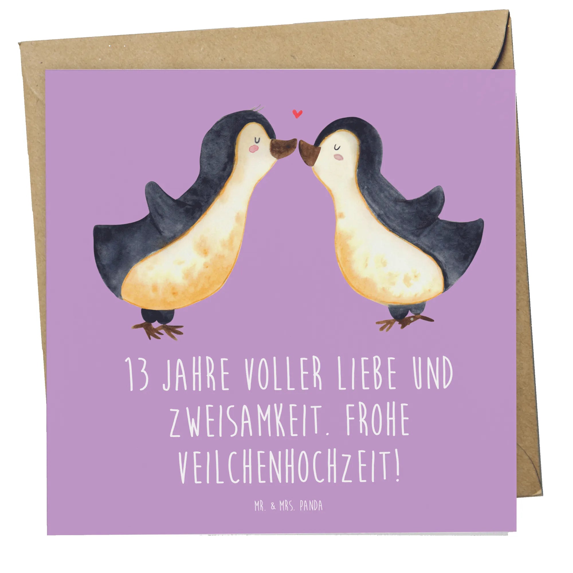 Entdecke die zauberhafte Hochzeitskollektion bei Mr. & Mrs. Panda und finde das perfekte Accessoire, das von den kleinen Freuden und besonderen Momenten des Lebens zeugt. Diese Karte zum 13. Hochzeitstag Veilchenhochzeit ist definitiv ein kleiner Liebesbeweis und ein fester Teil süßer Erinnerungen für jedes frisch verheiratete Paar. Lass dich von den einzigartigen Motiven und Sprüchen verzaubern und gestalte individuelle Grüße für die besonderen Menschen in deinem Leben.