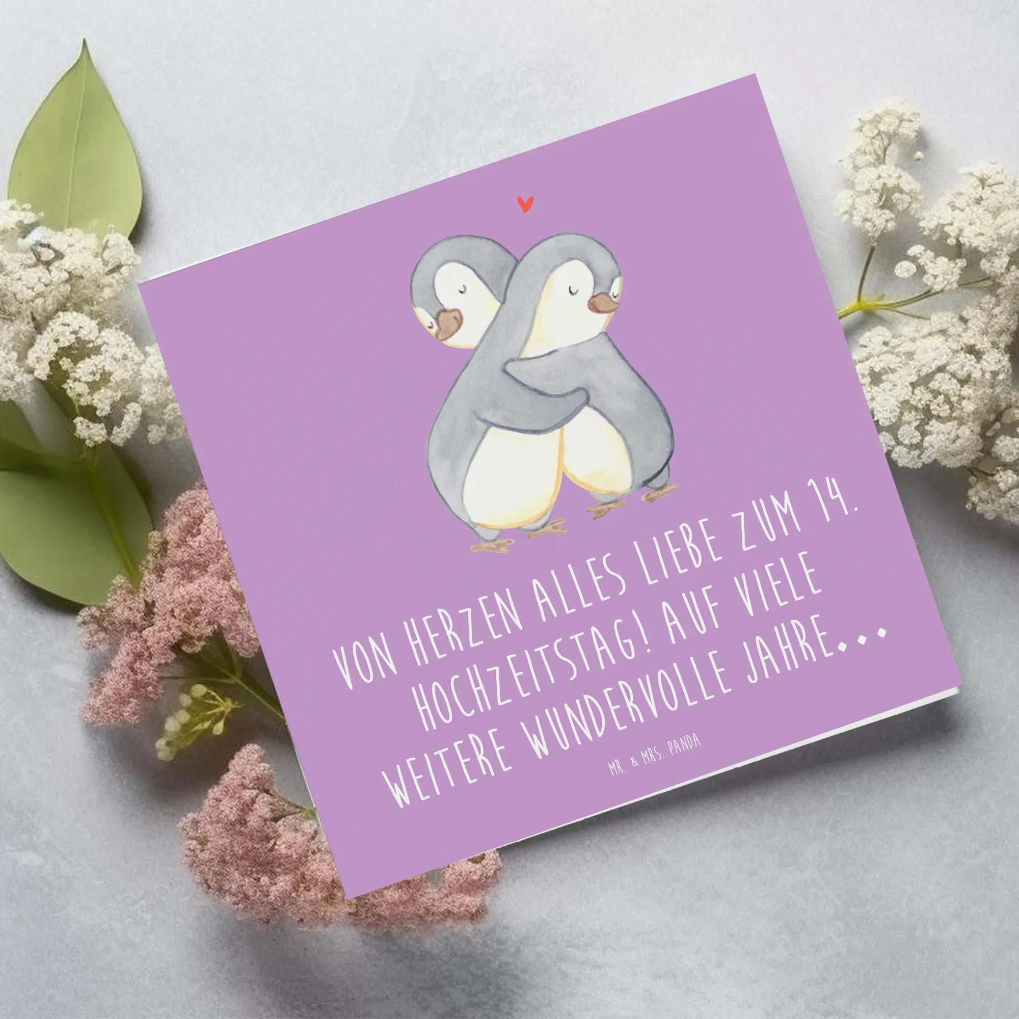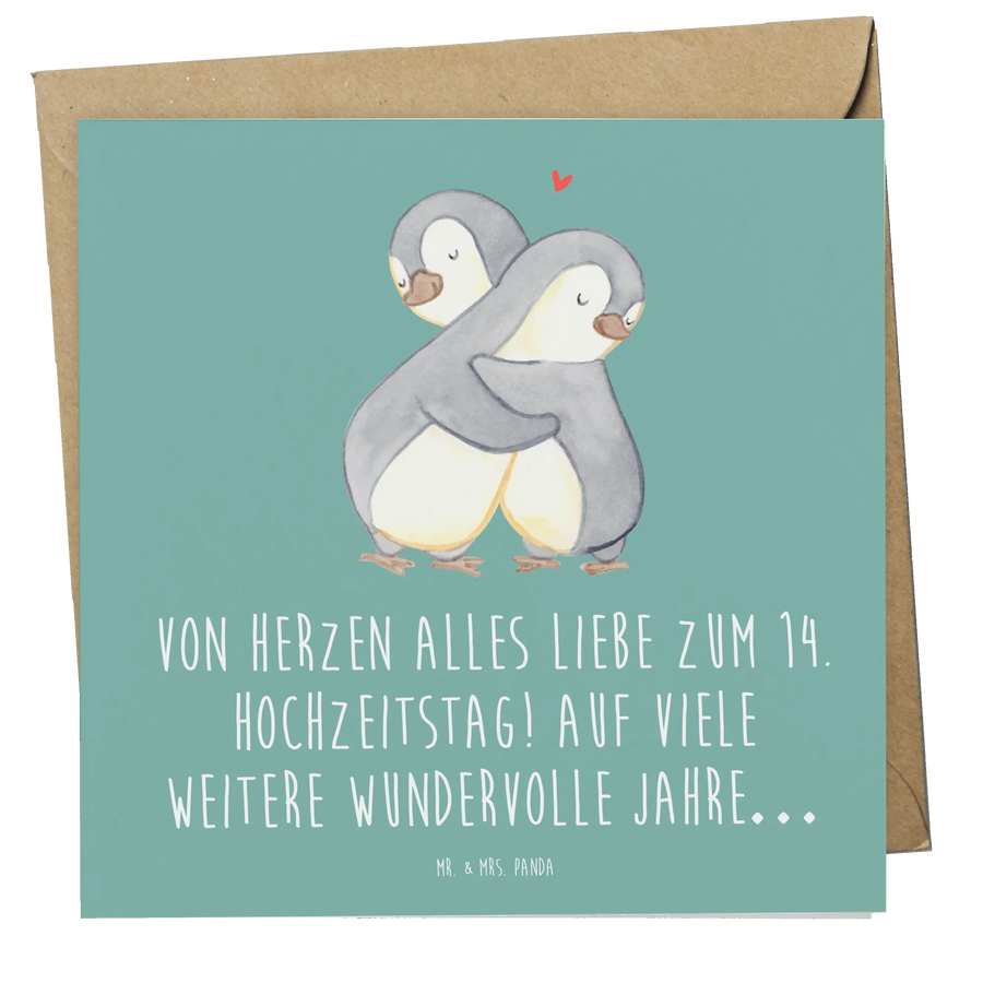 Wenn Du auf der Suche nach einem einzigartigen Geschenk bist, um Deine tiefen Gefühle auszudrücken oder einfach nur »Danke« zu sagen, die 14. Hochzeitstagskarte von Mr. & Mrs. Panda ist die ideale Wahl.