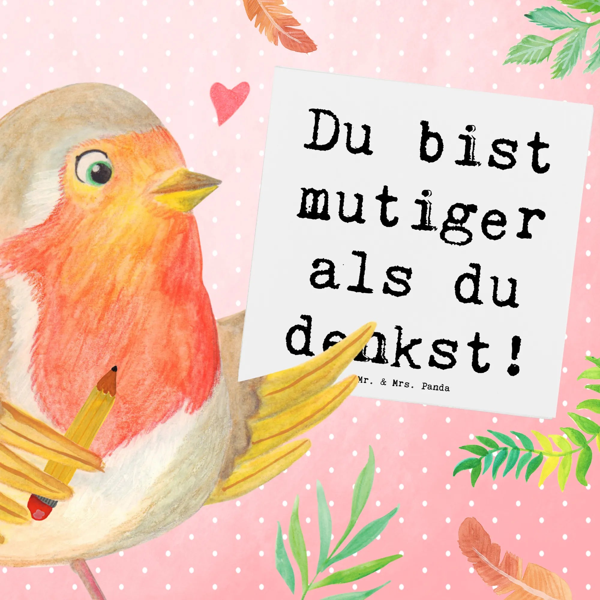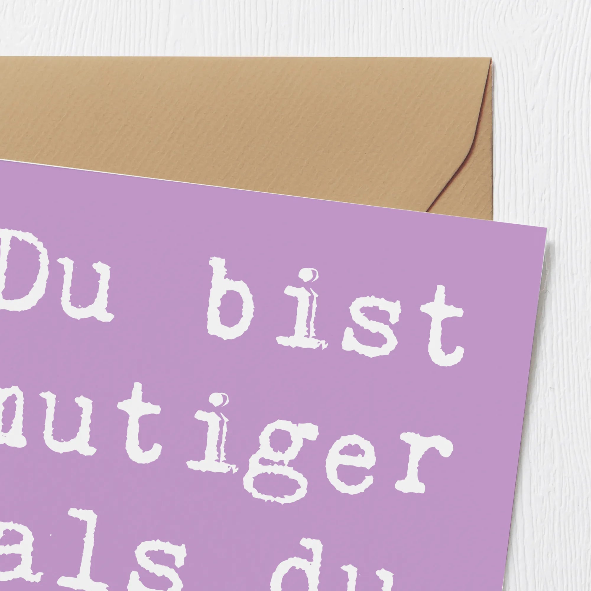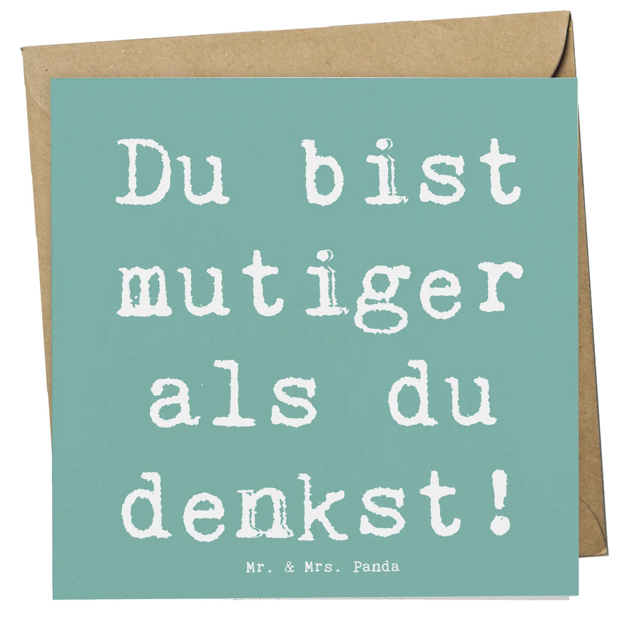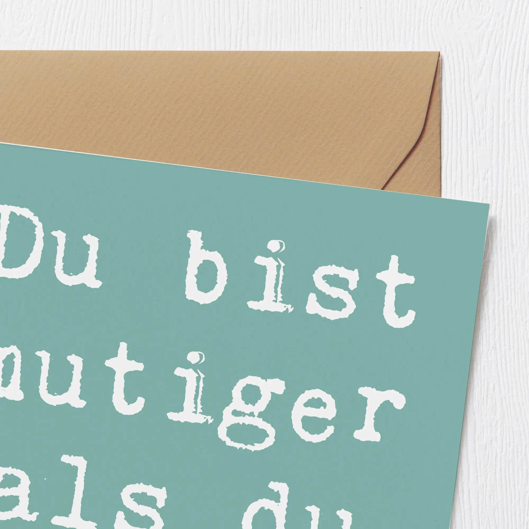 Der aufmerksame Spruch "Du bist mutiger als du denkst!" wird das Herz des Empfängers berühren und ihm Mut machen, neue Herausforderungen anzunehmen. Hergestellt aus hochwertigem 300-Gramm-Karton, bietet diese Karte eine edle Haptik und einen hohen Qualitätsanspruch. Die hochglänzend veredelte Vorderseite in Kombination mit der matten Innenseite zur einfachen Beschriftung sorgt dafür, dass du die Karte ganz individuell gestalten kannst.