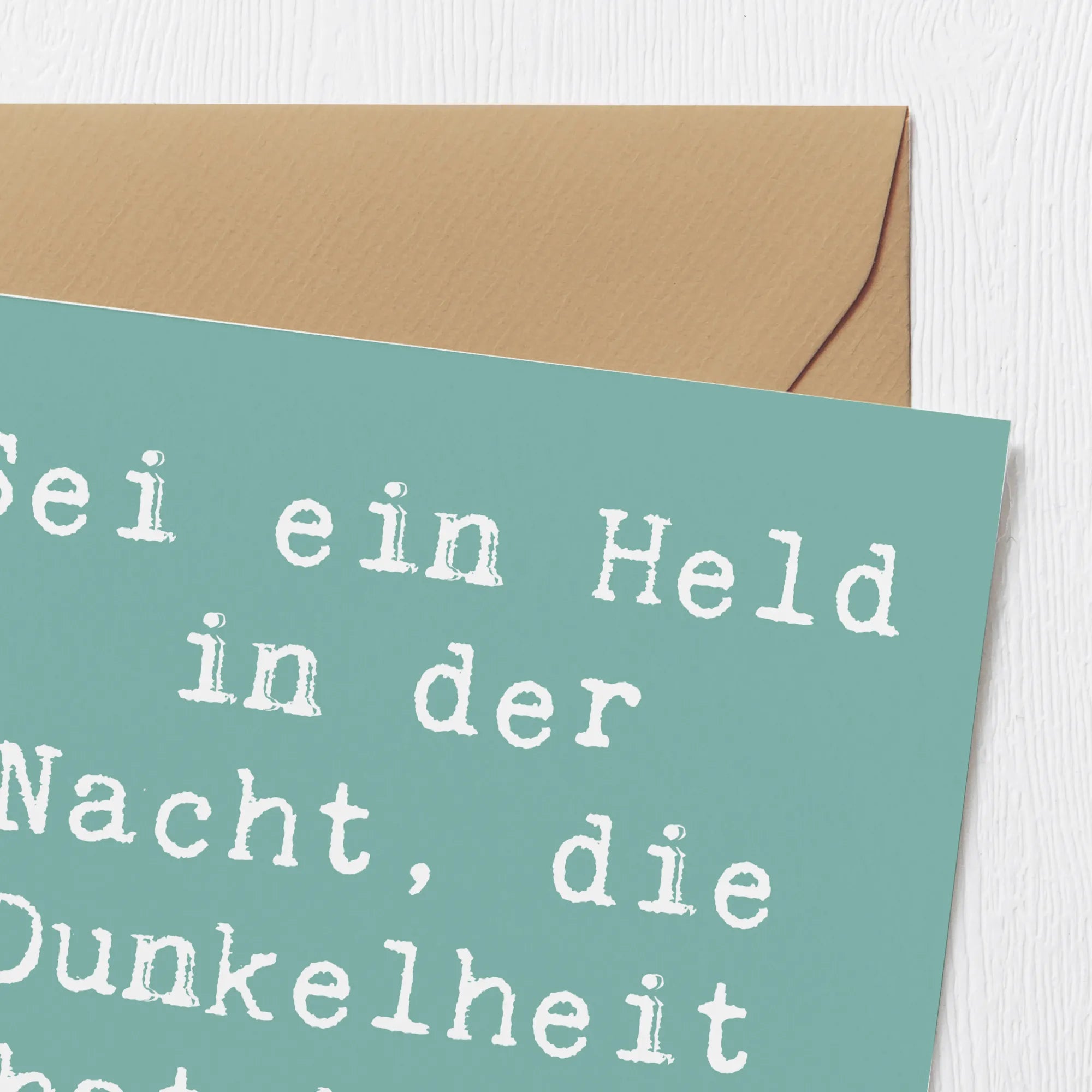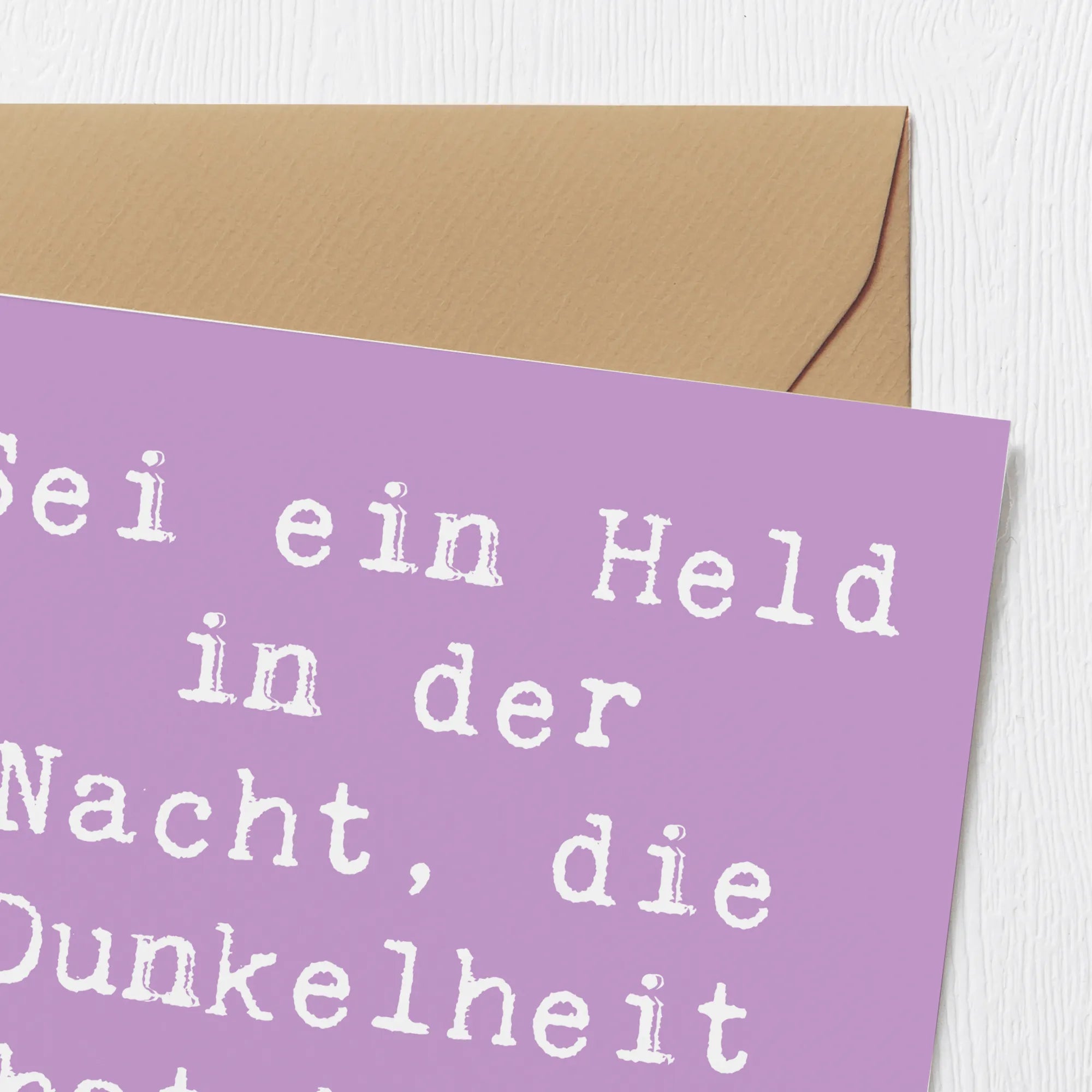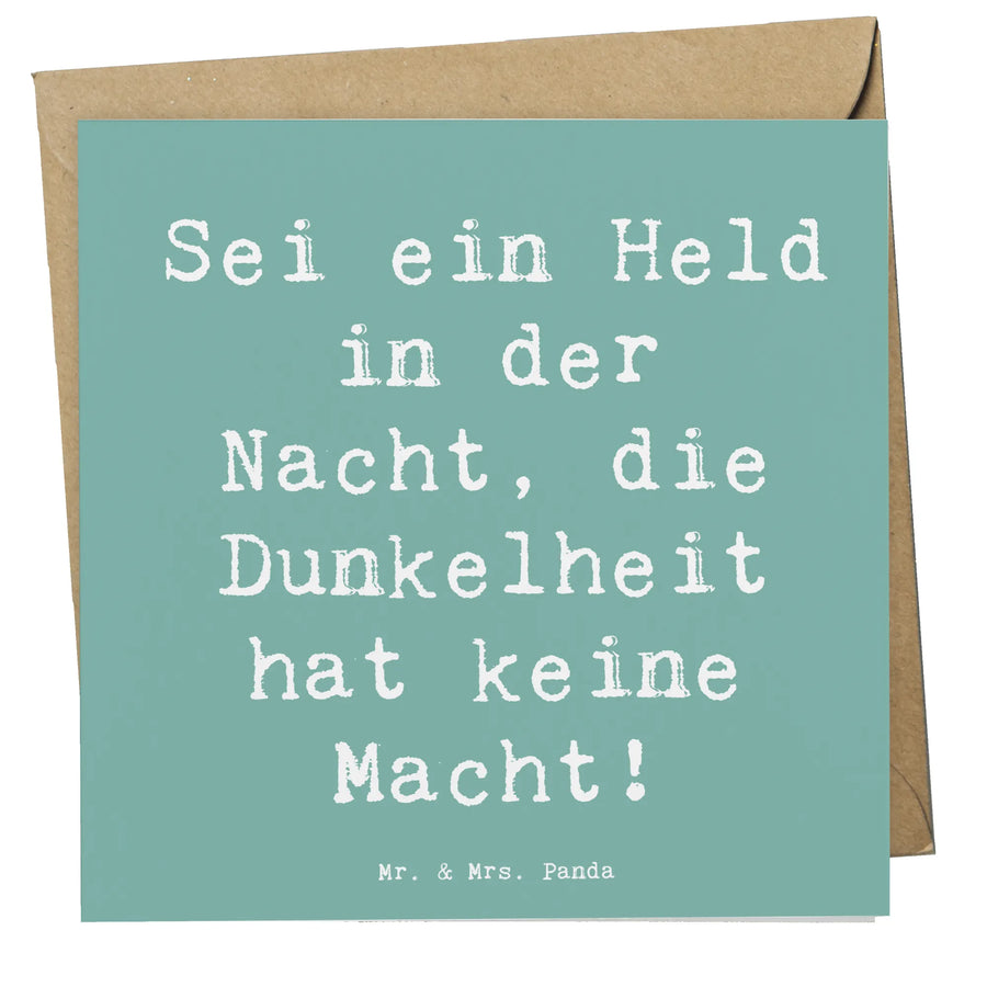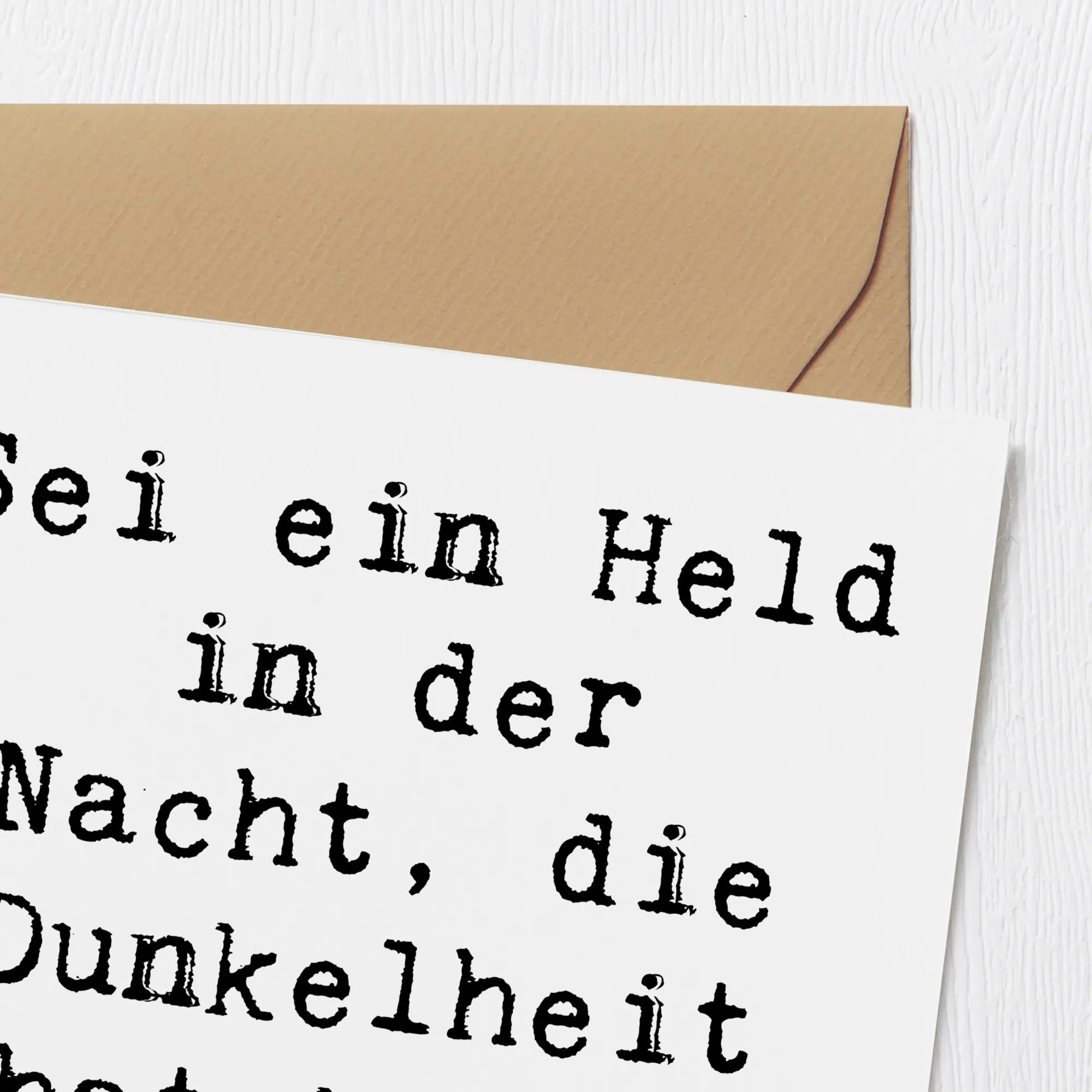 Mit dem Slogan "Sei ein Held in der Nacht, die Dunkelheit hat keine Macht!" begleitet diese Karte den Empfänger und ermutigt ihn, seine Angst zu überwinden. Hergestellt aus hochwertigem 300 Gramm Karton, bietet sie nicht nur eine wunderschöne Optik, sondern auch eine matte Innenseite, auf der individuelle Grüße und Botschaften Platz finden.