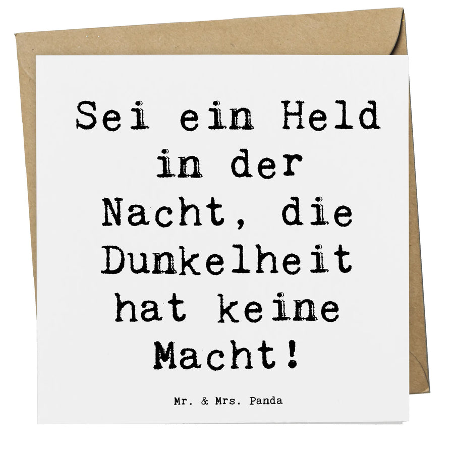 Mit dem Slogan "Sei ein Held in der Nacht, die Dunkelheit hat keine Macht!" begleitet diese Karte den Empfänger und ermutigt ihn, seine Angst zu überwinden. Hergestellt aus hochwertigem 300 Gramm Karton, bietet sie nicht nur eine wunderschöne Optik, sondern auch eine matte Innenseite, auf der individuelle Grüße und Botschaften Platz finden.