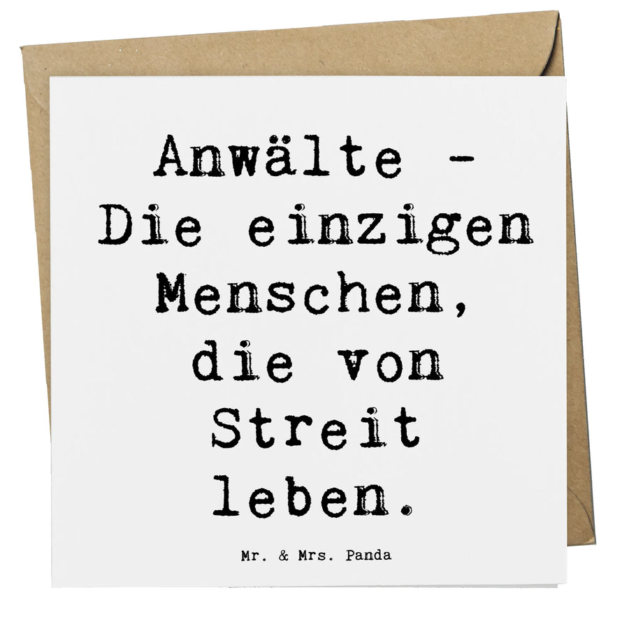 Die edlen Motive und der liebevoll gewählte Spruch "Anwälte - Die einzigen Menschen, die von Streit leben." bringen einen Hauch von Humor in die ernste Welt der Juristerei. Die Karte hat eine Größe von 140 mm x 140 mm und ist aus hochwertigem Karton gefertigt, was sie zu einem echten Hingucker macht.