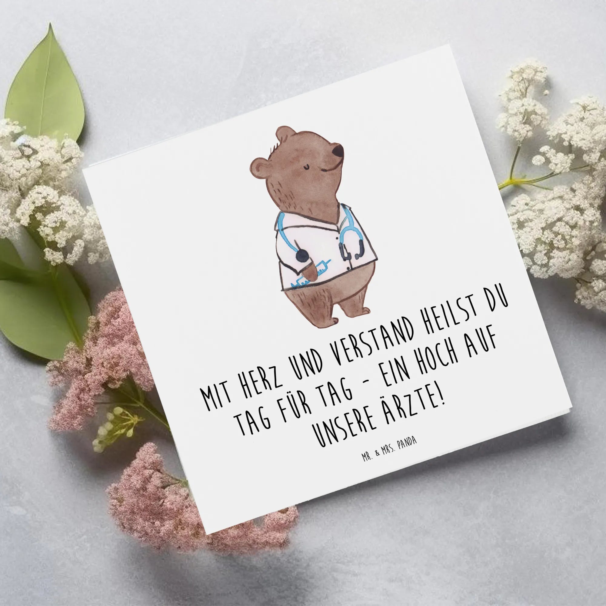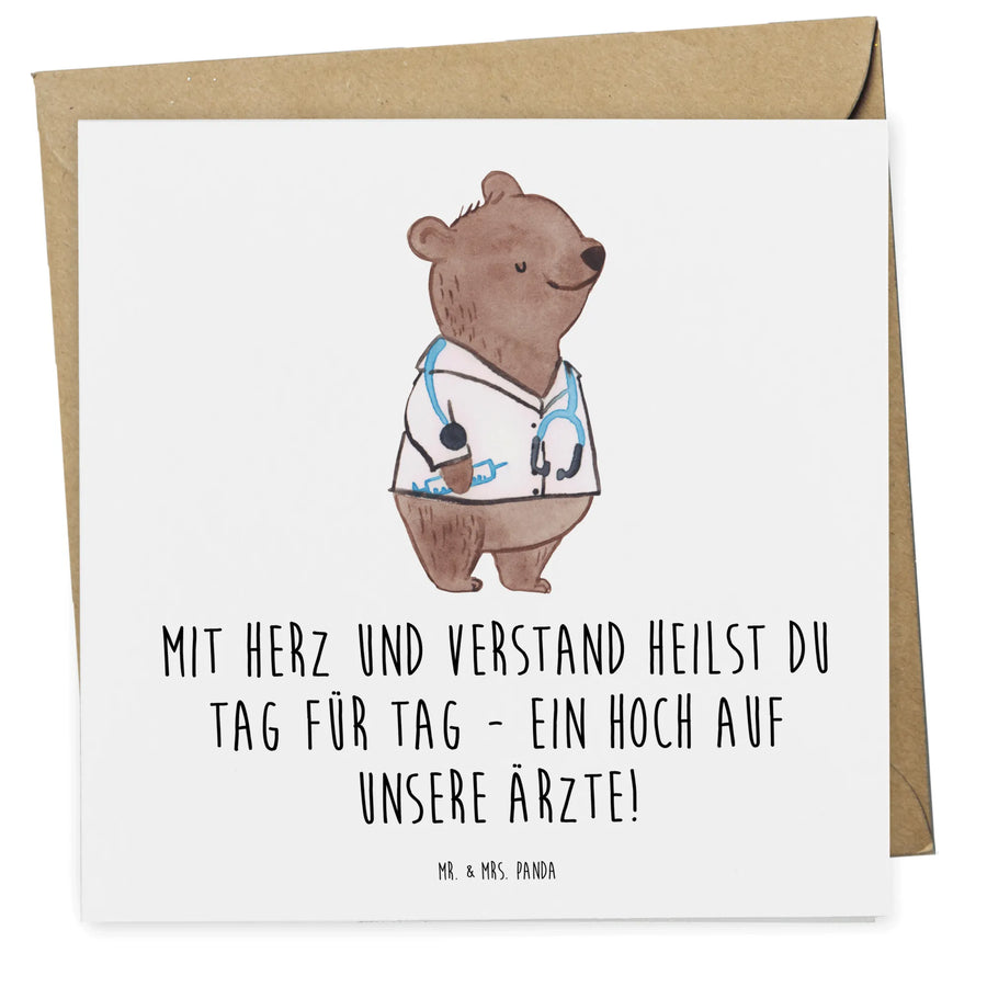 Die Deluxe Karte Arzt aus der Danke-Kollektion von Mr. & Mrs. Panda ist das perfekte Geschenk, um Wertschätzung und Dankbarkeit auf besondere Weise auszudrücken. Diese wunderschöne und hochwertige quadratische Karte misst 140 mm x 140 mm und wird aus edlem 300 Gramm Karton gefertigt, der durch seine matt glänzende Oberfläche besonders elegant wirkt.