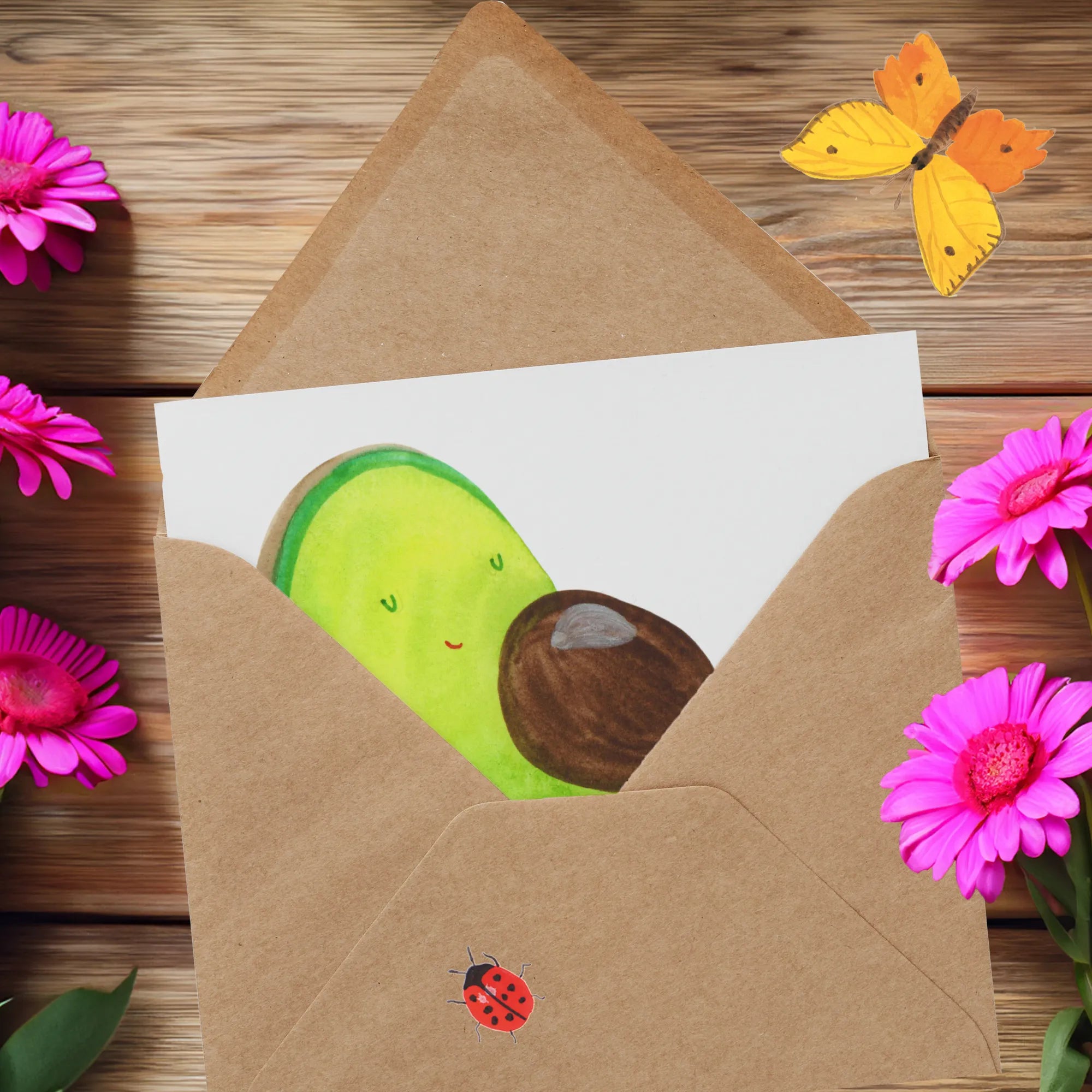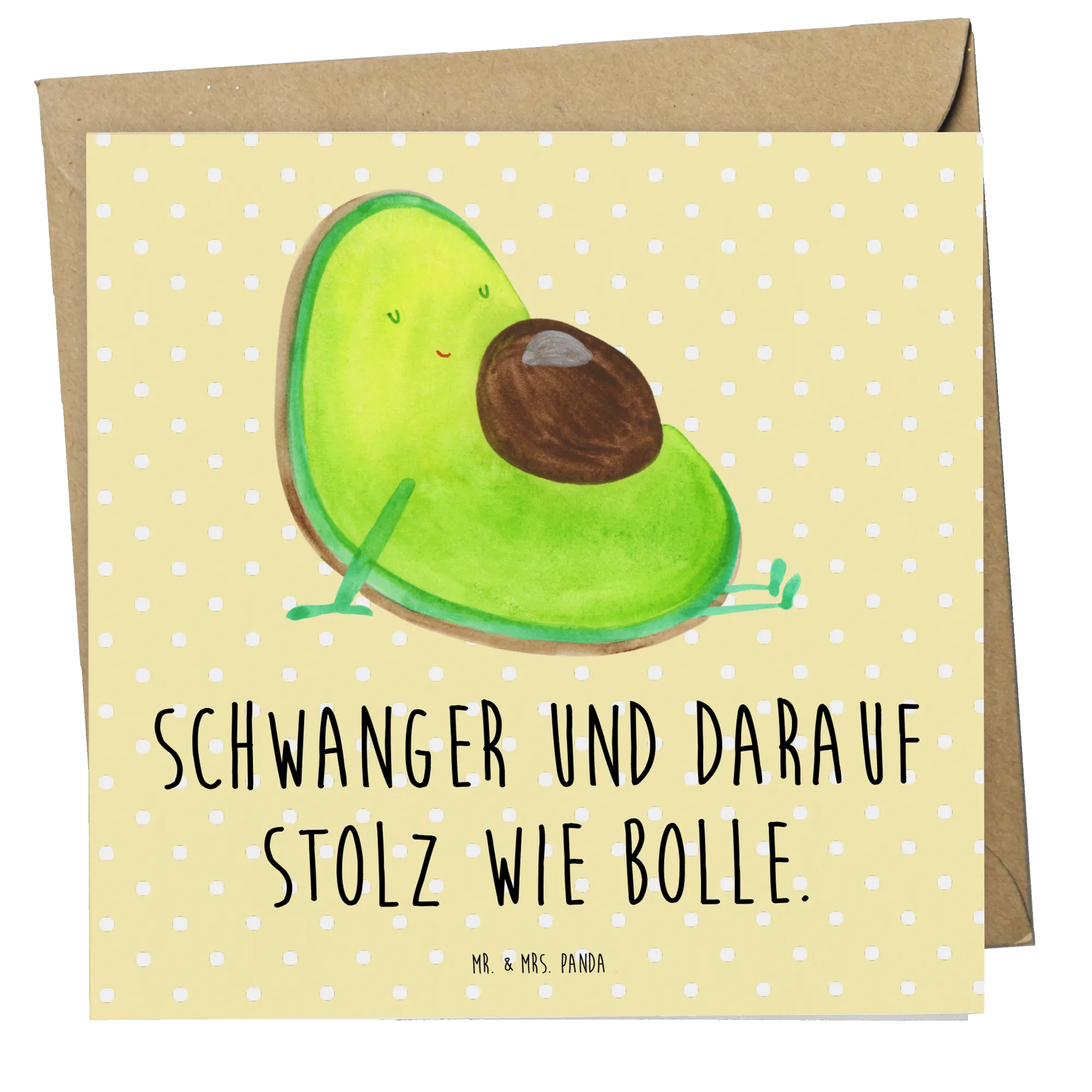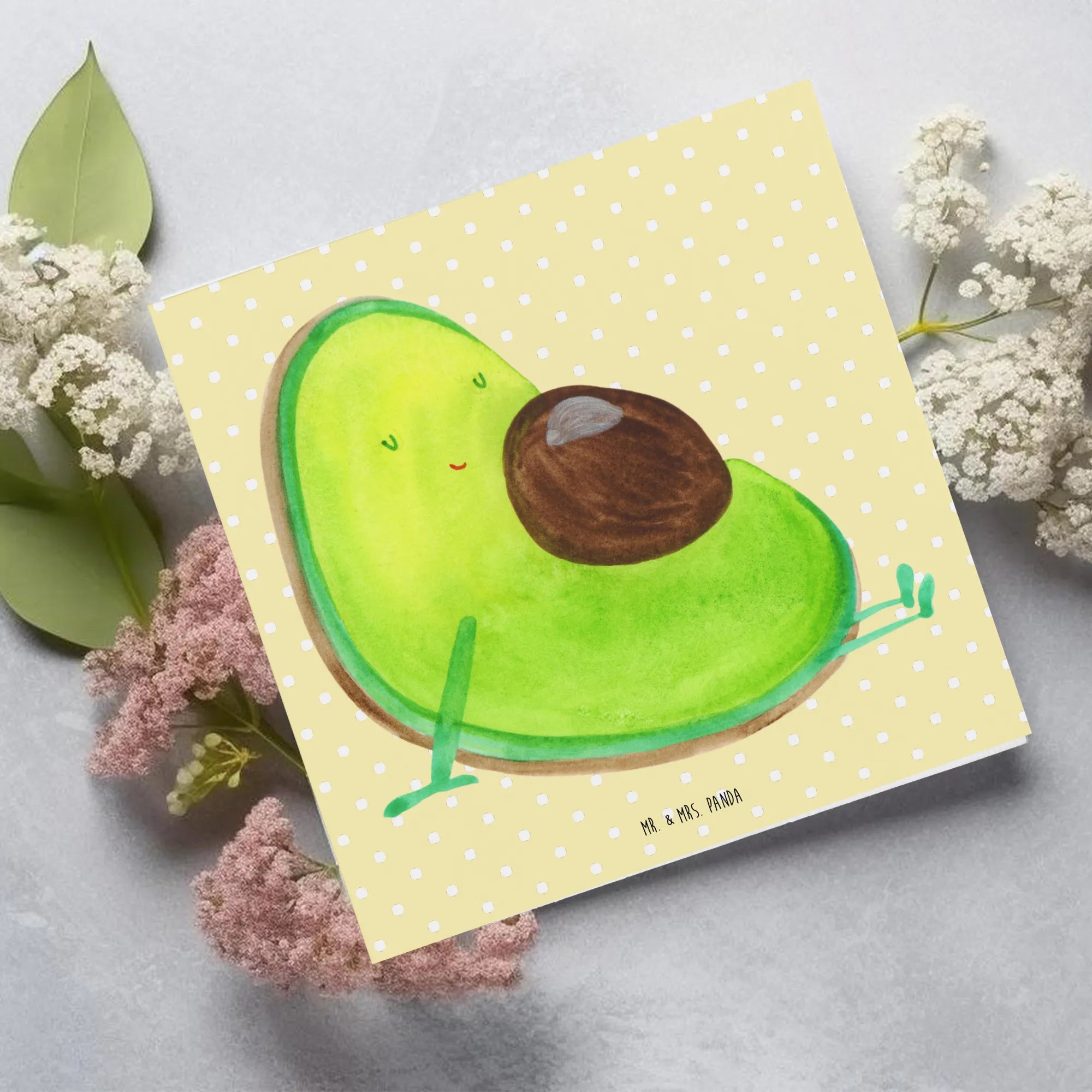 Dank des edlen Umschlags und der hochglänzend veredelten Vorderseite hebt sich diese Karte besonders hervor. Die Avocado Kollektion von Mr. & Mrs. Panda ist ein liebenswerter Ausdruck des Lebens, der Optimismus und Freude versprüht. Jeder Entwurf ist liebevoll von Hand gezeichnet und bringt das Wunder des Lebens auf charmante Weise zum Ausdruck.