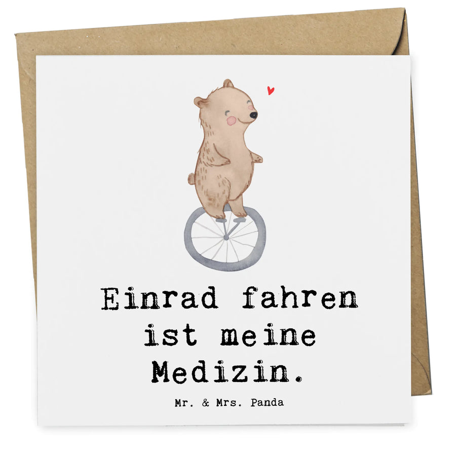 Verschenke ein Lächeln mit unserer liebevoll gestalteten Deluxe Karte von Mr. & Mrs. Panda. Der süße Bär auf dem Einrad und der freche Spruch „Einrad fahren ist meine Medizin.“ machen diese quadratische Grußkarte zu einem besonderen Geschenk für Einrad-Fans, Hobbysportler und alle, die Freude an originellen Motiven haben. 🐻🚴♀️