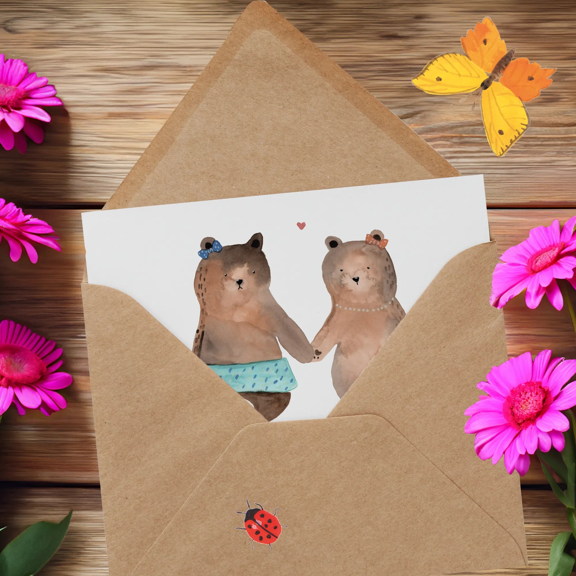 Mit einem Maß von 140 mm x 140 mm besticht diese hochwertige Klappkarte durch ihre edle Optik und hervorragende Haptik. Der hübsche Aufdruck zeigt zwei süße Bärenmädchen, die sich an den Händen halten – ein wunderschönes Motiv, das die Bedeutung von Freundschaft unterstreicht.
