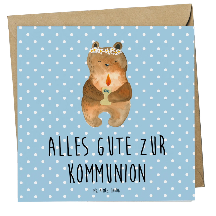 Die Kollektion "Bär" von Mr. & Mrs. Panda bietet die schönsten Tiermotive, die mit viel Liebe handgezeichnet wurden. Mit der "Kommunion-Bär"-Karte bringst du Freude und Segen in das Leben eines Kindes und schaffst ein wunderbares Erinnerungsstück.