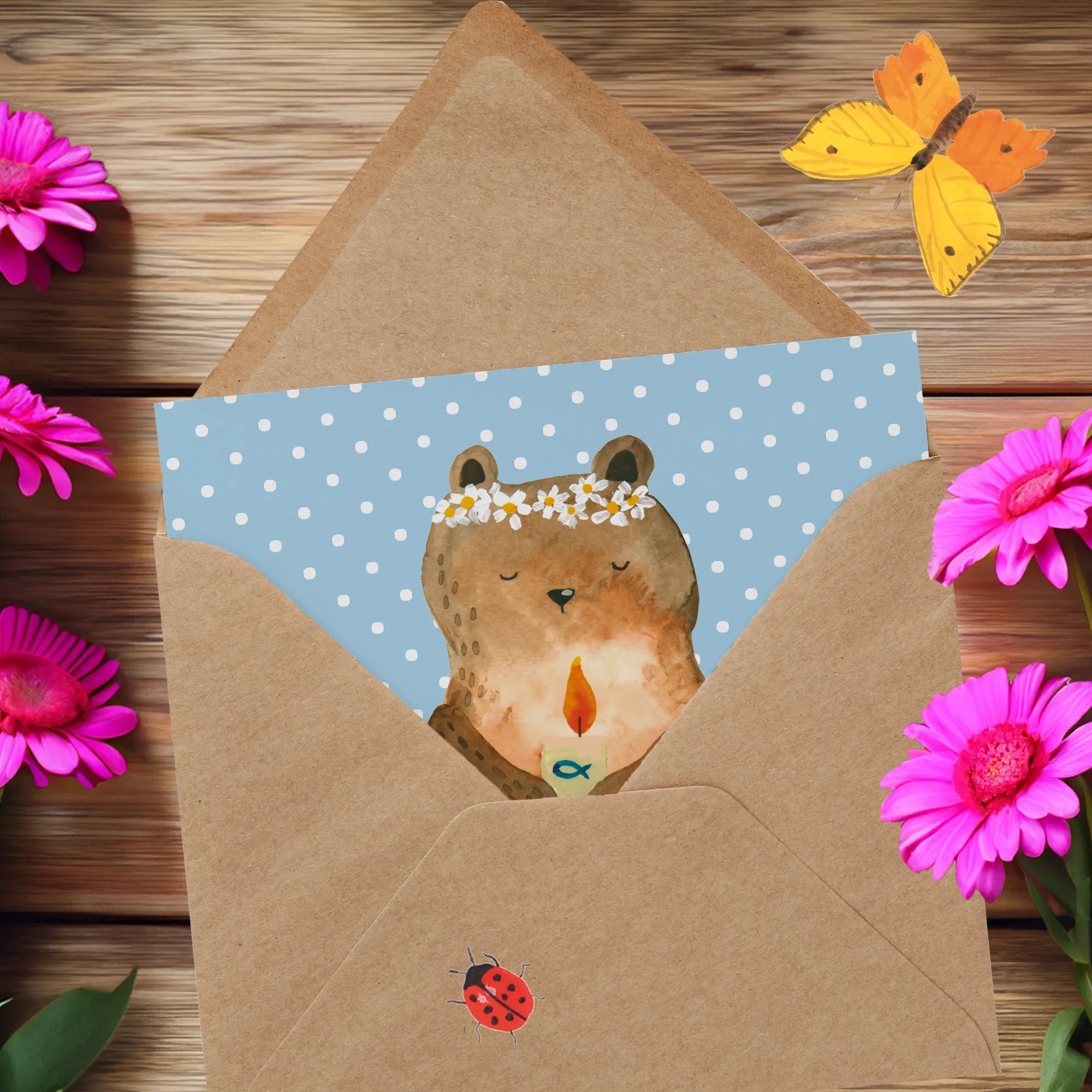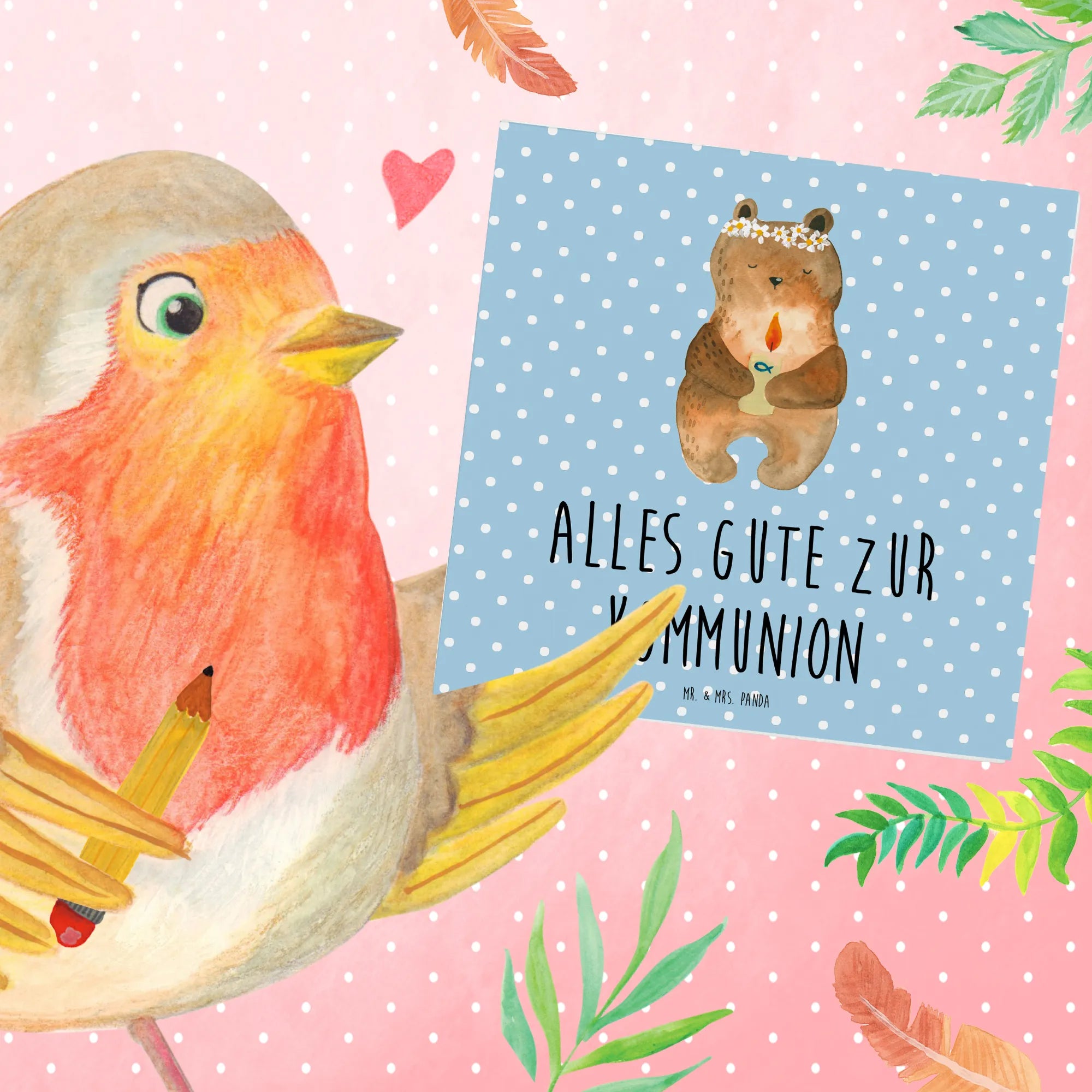Über die Bärenkollektion von Mr. & Mrs. Panda: Hier findest du die wundervollsten Bärchen, die mit viel Liebe von Mrs. Panda selbst entworfen wurden. Ob zu Geburtstagen, Hochzeiten oder Jubiläen – die Karte "Kommunion-Bär" ist ein must-have für alle Bärenliebhaber! Lass deine Grüße ganz besonders aussehen und schenke Freude mit dieser schönen Grußkarte zur Kommunion.