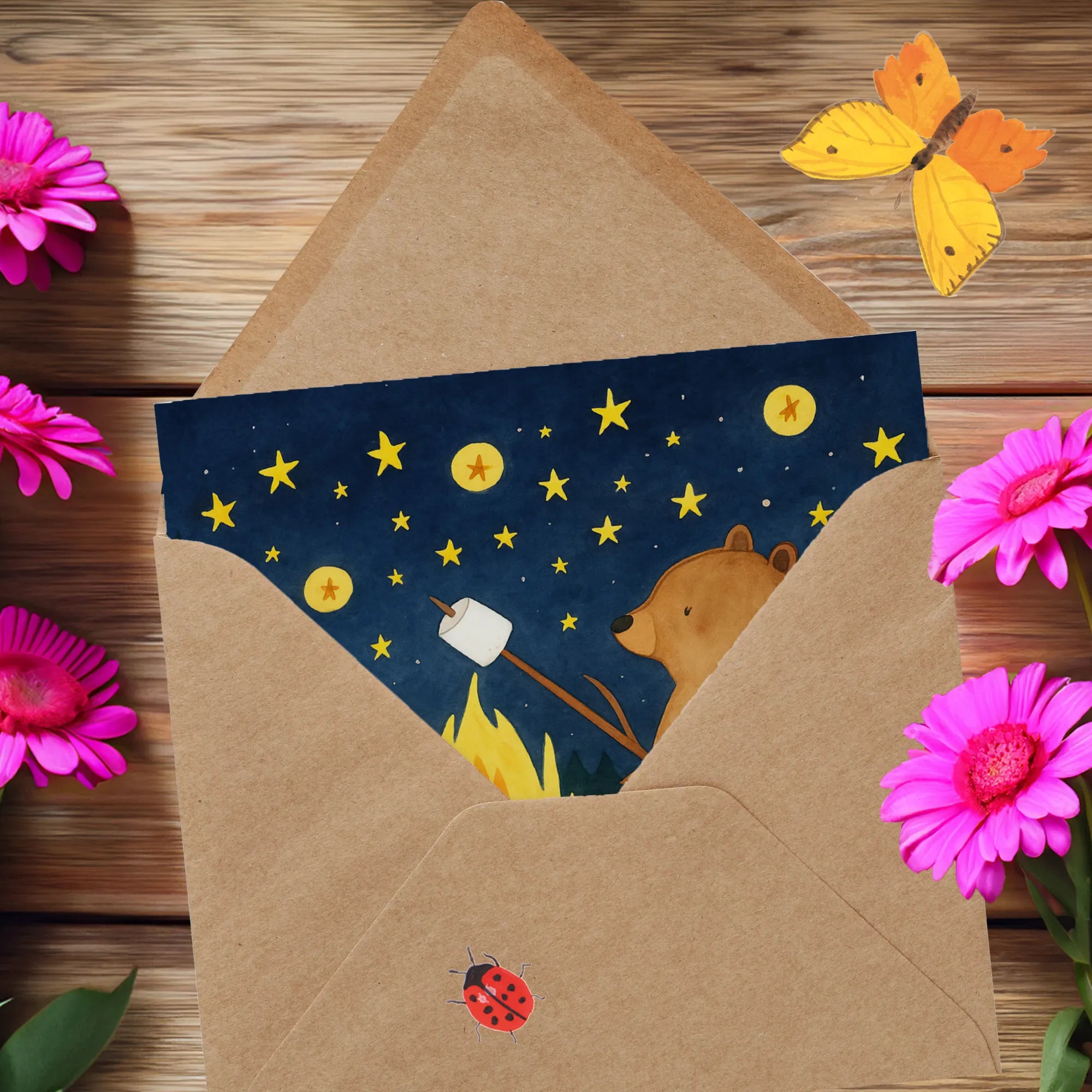 Grußkarte Bär & Marienkäfer Lagerfeuer Design - mit Spruch