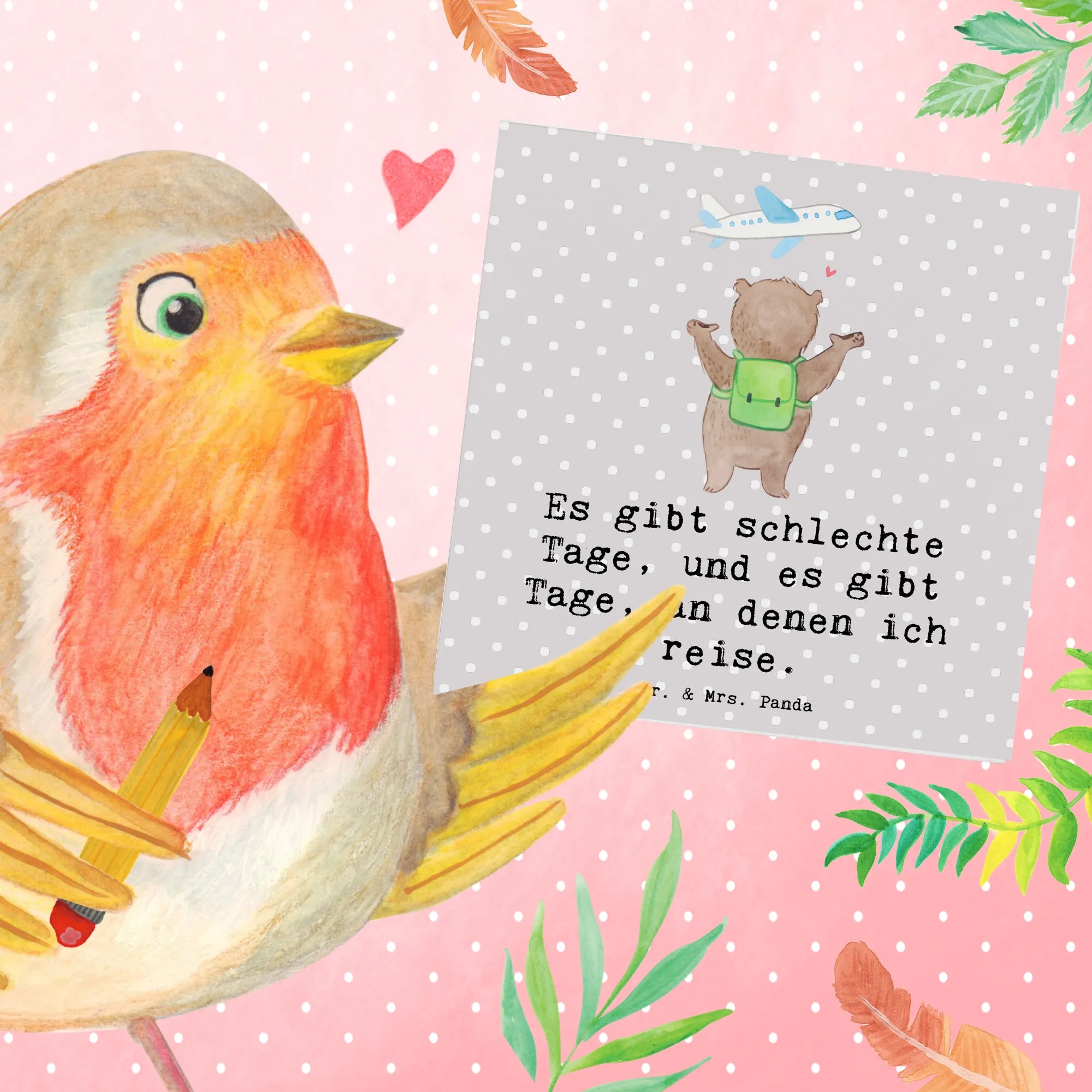 Die Deluxe Karte mit dem Motiv "Bär Reisen Tage" von Mr. & Mrs. Panda ist der perfekte Begleiter für alle, die das Reisen im Herzen tragen! Egal, ob für den nächsten Geburtstag, eine Hochzeit oder einfach nur als liebevolle Geste für einen Freund: Diese hochwertige Klappkarte bringt die Vorfreude auf Abenteuer und Entdeckungen zum Ausdruck.