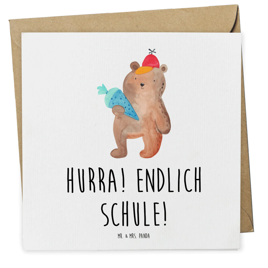 Die Deluxe Karte mit dem bezaubernden Motiv "Bär mit Schultüte" von Mr. & Mrs. Panda ist das perfekte Geschenk für jeden Schulanfänger! Mit dem liebevoll gestalteten Bärchen, das stolz seine prall gefüllte Schultüte präsentiert, wird die Vorfreude auf den ersten Schultag noch größer.