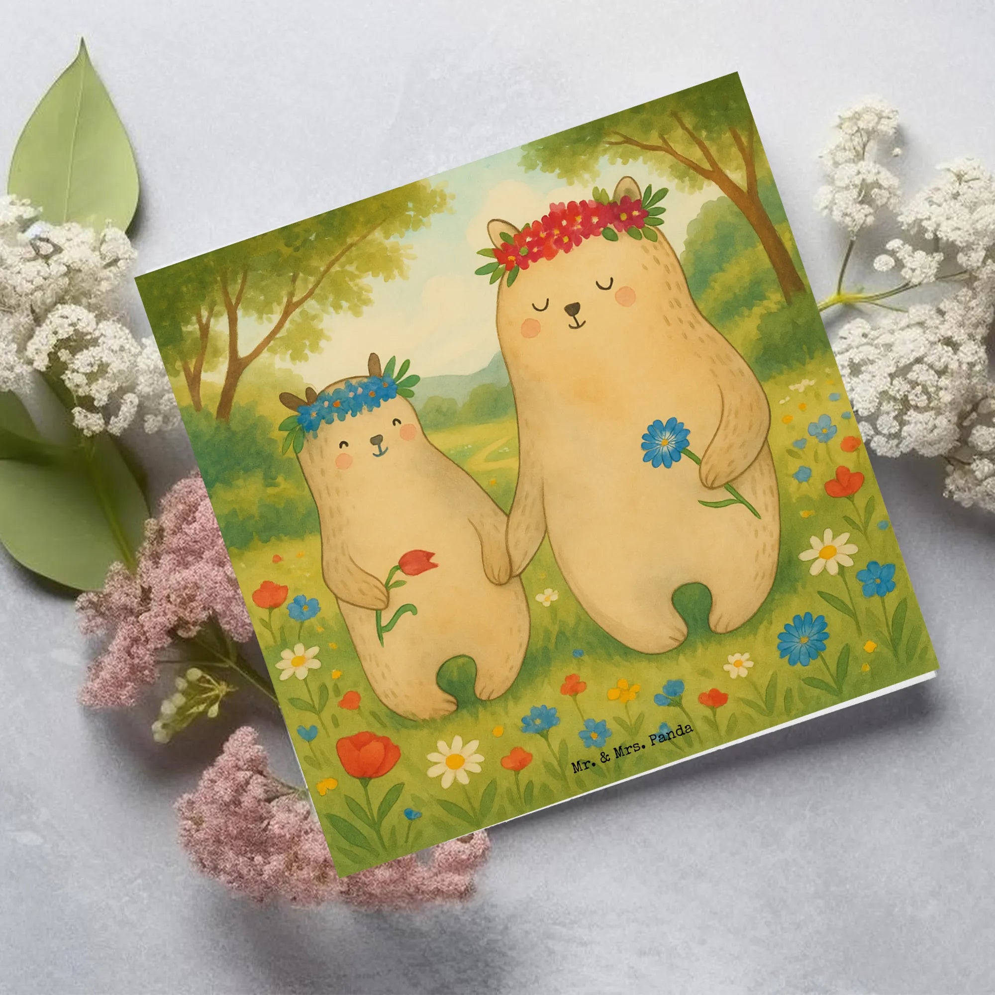 Deluxe Karte Bären mit Blumenkranz Design - mit Spruch