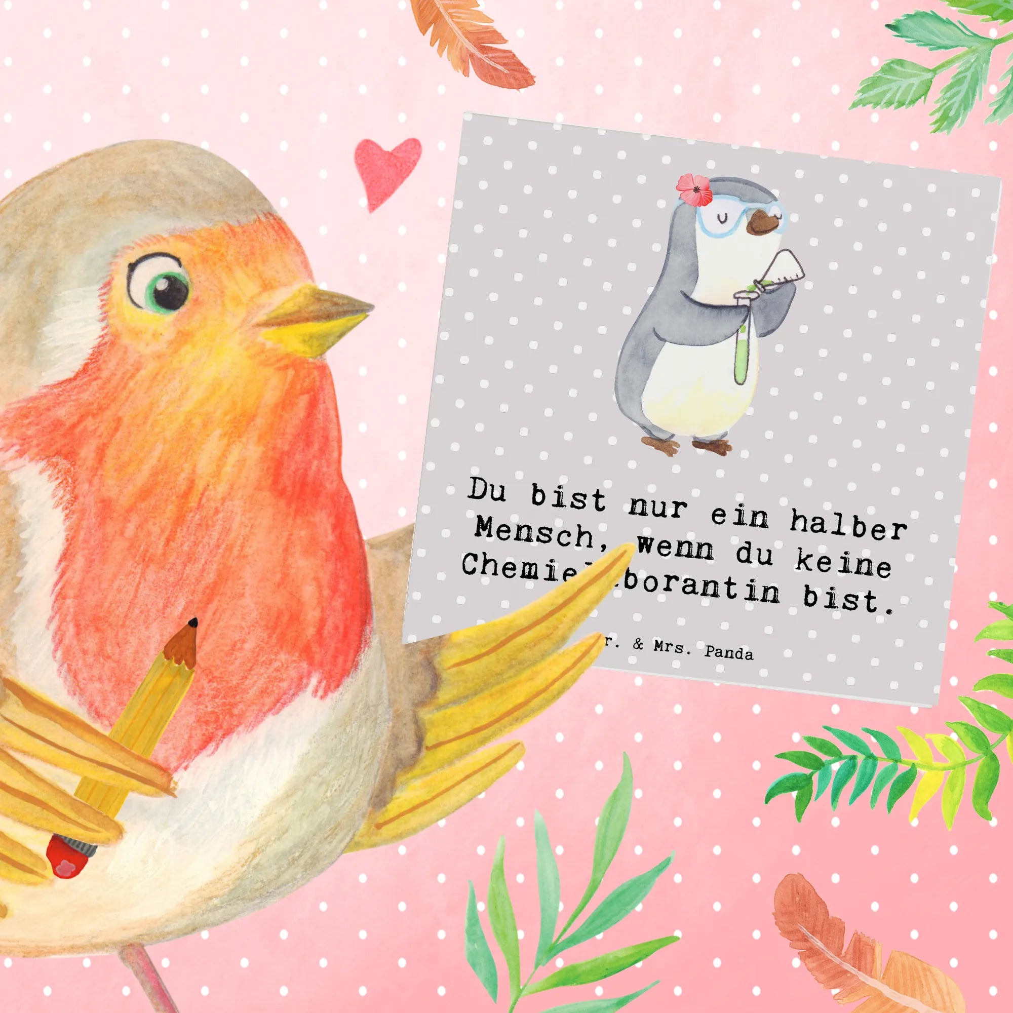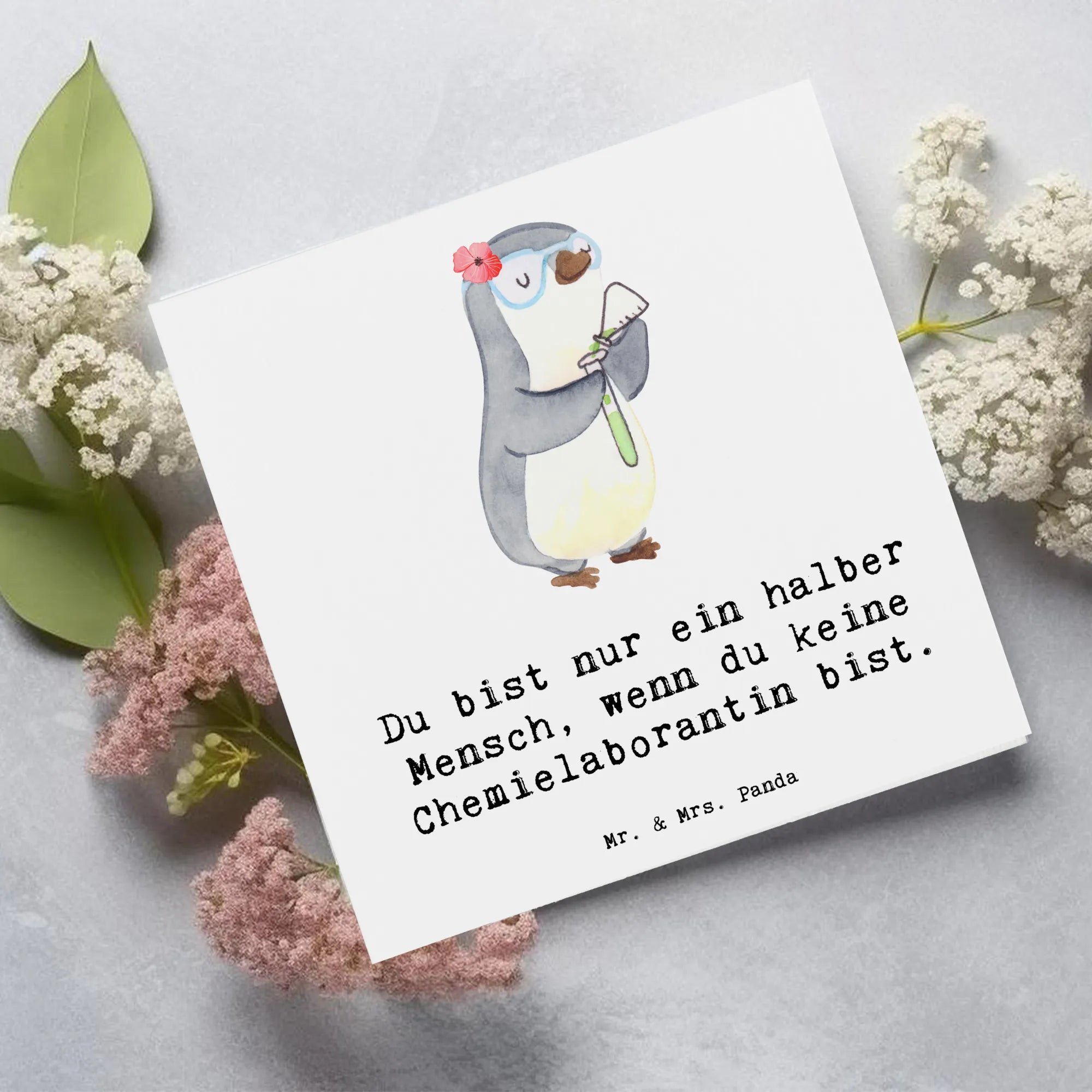 Du suchst nach einem persönlichen und liebevollen Geschenk für deinen Lieblings-Chemiker? Dann ist die 'Chemielaborantin mit Herz' Karte aus der Kollektion von Mr. & Mrs. Panda genau das Richtige!