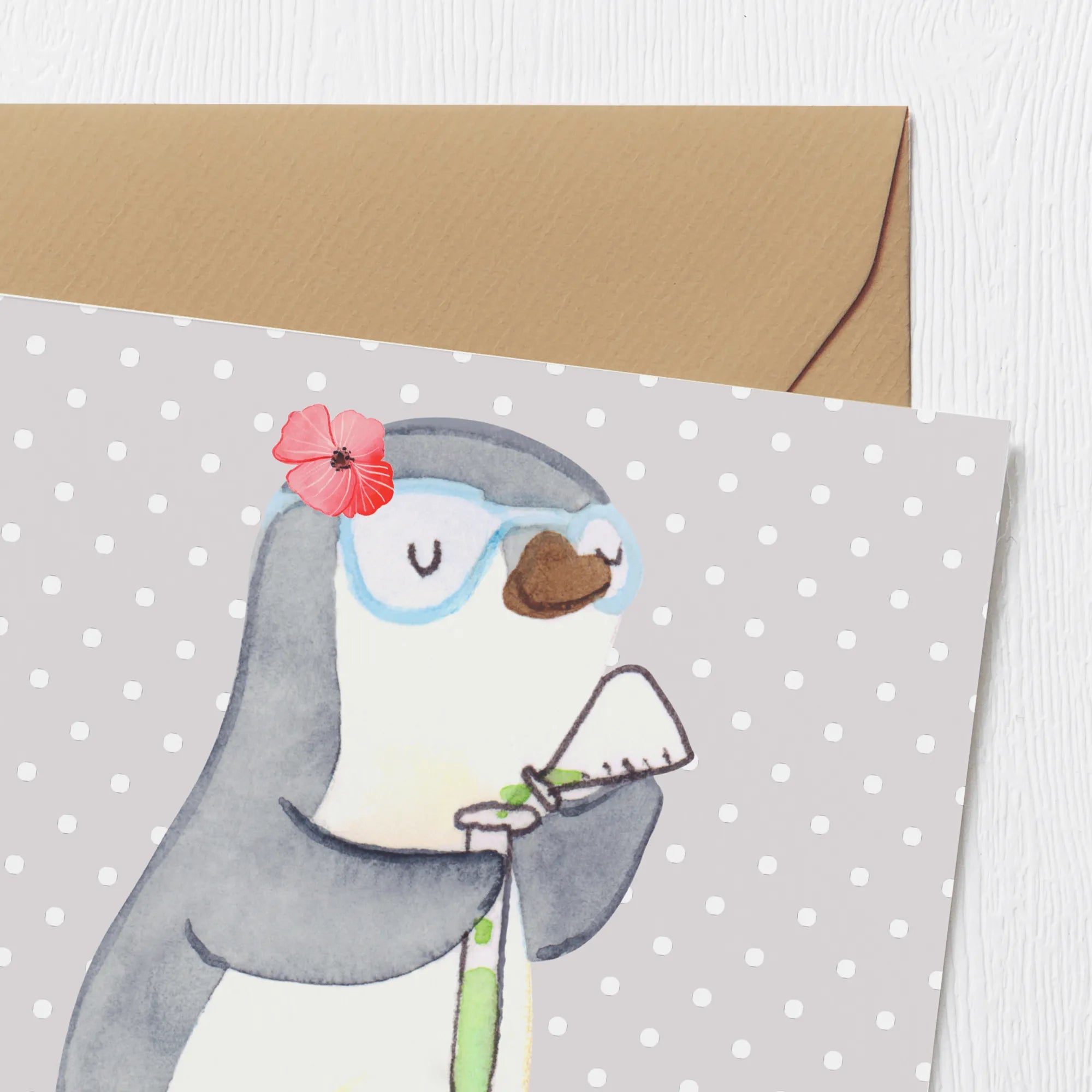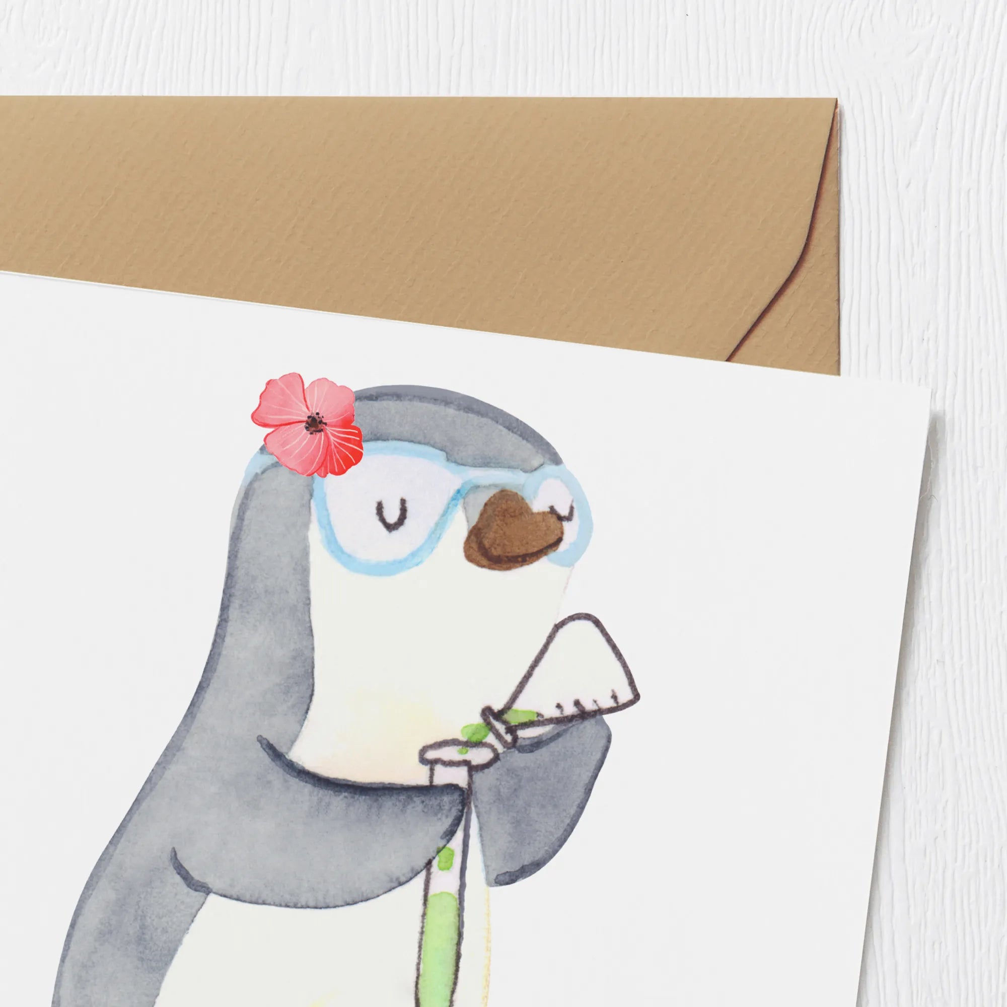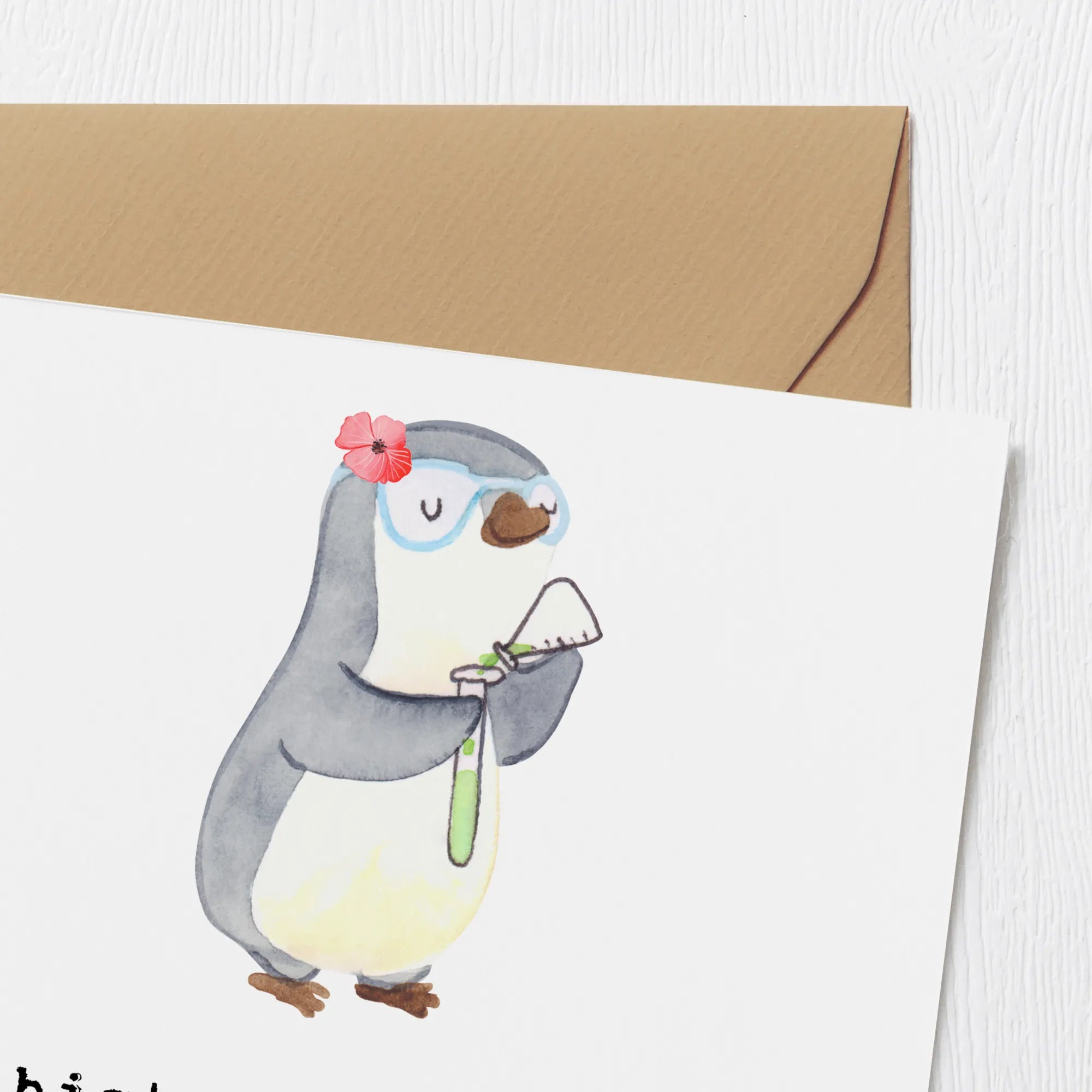Mit einem charmanten Pinguin-Motiv, der ein Reagenzglas in der Hand hält, spricht diese Karte besonders Frauen an, die in der Chemie- und Wissenschaftsbranche tätig sind. Egal, ob Du einen Geburtstagsgruss, eine Hochzeitskarte oder ein Dankeschön für eine Kollegin suchst, diese Karte passt zu jedem Anlass.