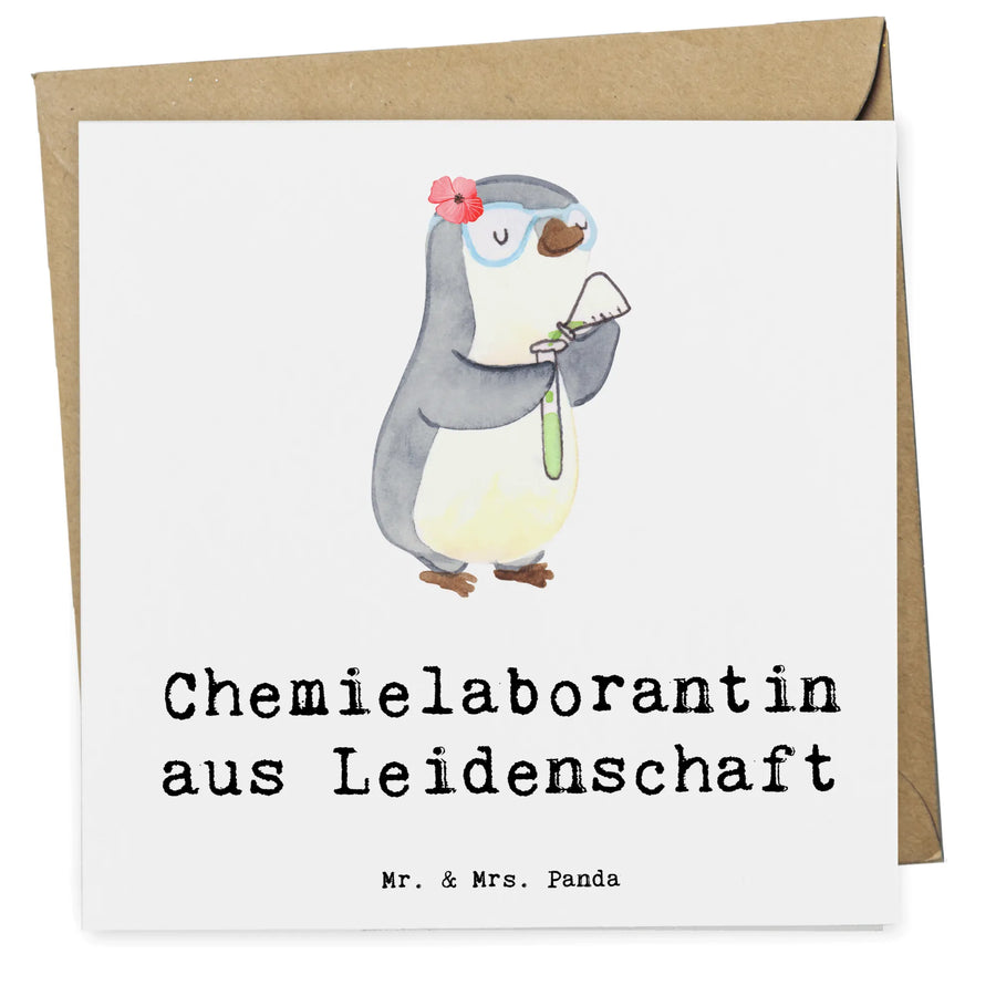Die Deluxe Karte "Chemielaborantin aus Leidenschaft" von Mr. & Mrs. Panda ist die perfekte Überraschung für alle, die in der Welt der Chemie zu Hause sind. Wenn Du einem Kollegen, einer Freundin oder einer lieben Chemikerin eine Freude machen möchtest, ist diese Karte genau das richtige Geschenk! Mit ihrem charmanten Design, das einen süßen Pinguin zeigt, der ein Reagenzglas hält, spricht sie die Herzen von Naturwissenschaftlerinnen und Wissenschaftlern gleichermaßen an.