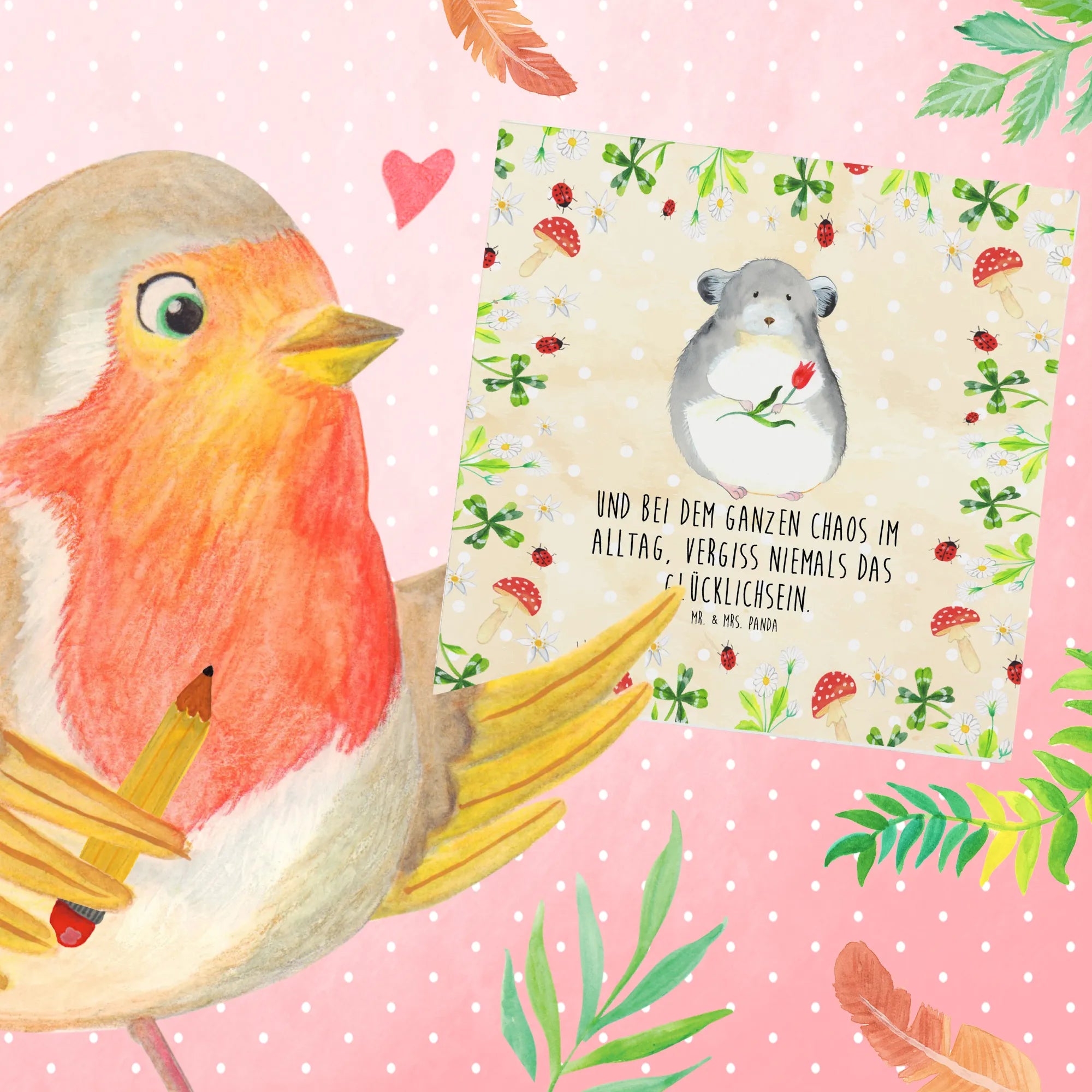 Die Deluxe Karte Chinchilla mit Blume aus der Small World Kollektion von Mr. & Mrs. Panda ist das perfekte Geschenk für jeden Anlass. Wenn Du nach einer besonderen Grußkarte suchst, die Freude und positive Gefühle ausstrahlt, dann bist Du hier genau richtig! Diese hochwertige quadratische Karte hat die Maße 140 mm x 140 mm und ist aus edlem 300 Gramm Karton gefertigt. Sie wird Dich nicht nur mit ihrem tollen Design verzaubern, sondern auch mit der hochwertigen Verarbeitung.