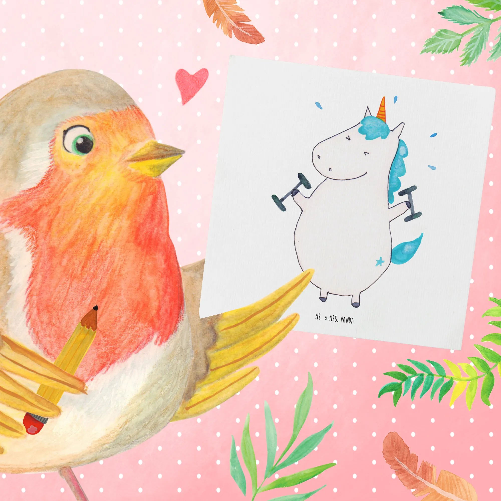 Sie ist die perfekte Grußkarte für Geburtstage, eine originelle Einladungskarte ins Fitnessstudio, eine aufmunternde Glückwunschkarte für Diät- oder Abnehm-Erfolge und sogar eine charmante Hochzeitskarte für sportliche Paare. Das Motiv bringt Fitnessstudio-Atmosphäre und Einhorn-Zauber zusammen – das Ergebnis ist ein Lächeln bei Empfängern jeden Alters.